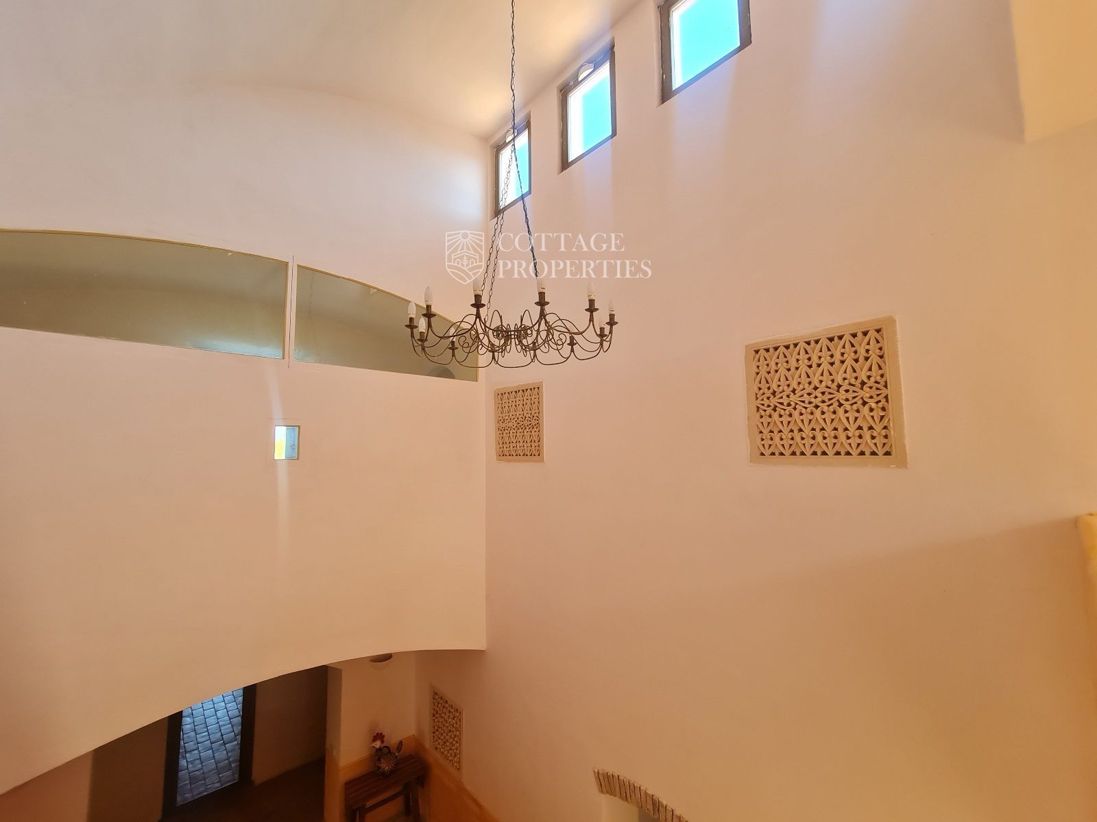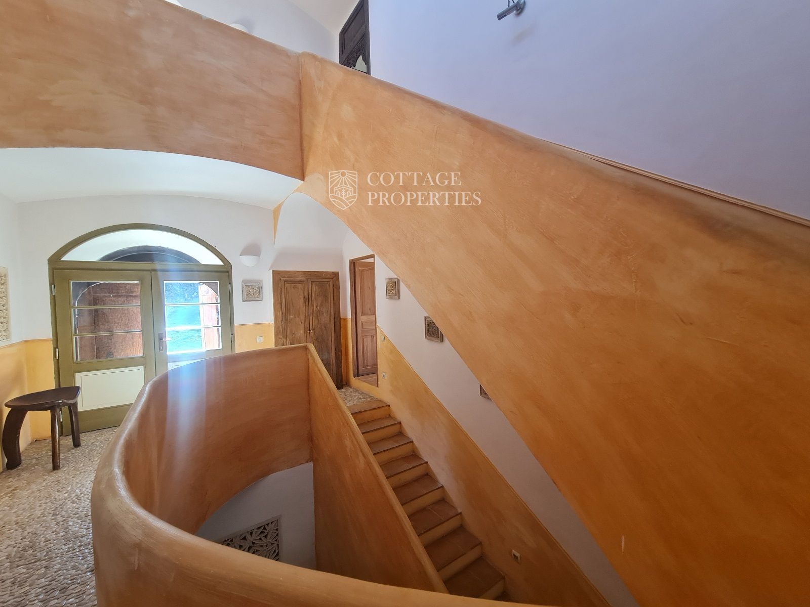 Planta Baixa: Ampla cuina amb illa central i forn de pedra, rebost, saló-menjador amb xemeneia de pedra i accés directe a la terrassa davantera, sala de recepció/biblioteca també amb accés a la terrassa, i un bany de convidats.