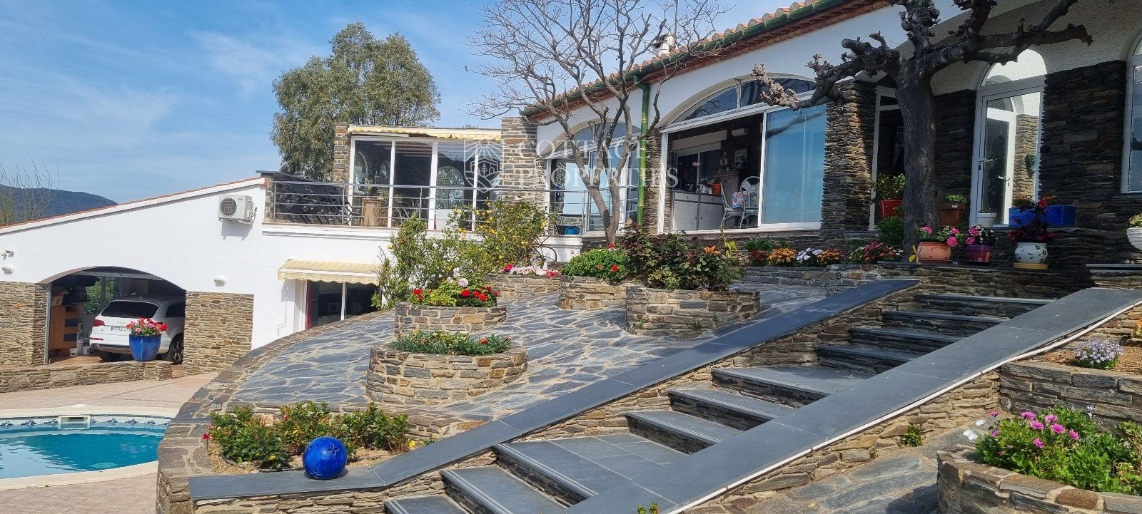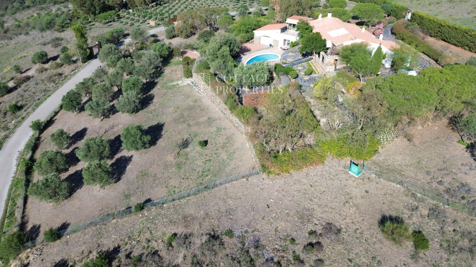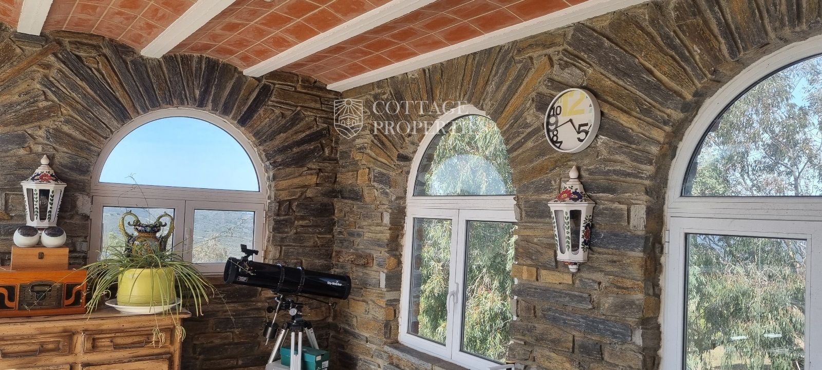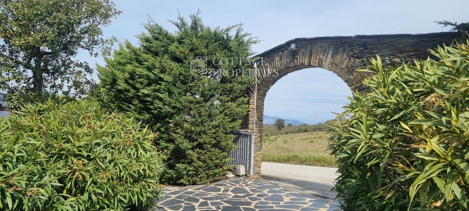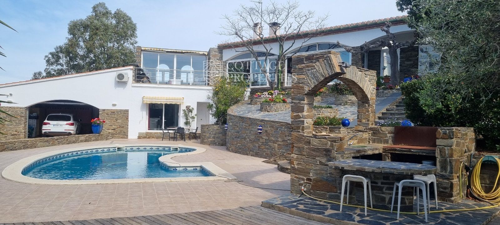 La casa es troba completament emmurallada amb murs de pedra i té dos accessos separats a través de portes automatitzades. Entre les comoditats addicionals s'inclouen una pista de petanca, un hort, un forn de pizza, una xemeneia i una piscina, tot envoltat per una parcel·la amb vegetació i vistes espectaculars.