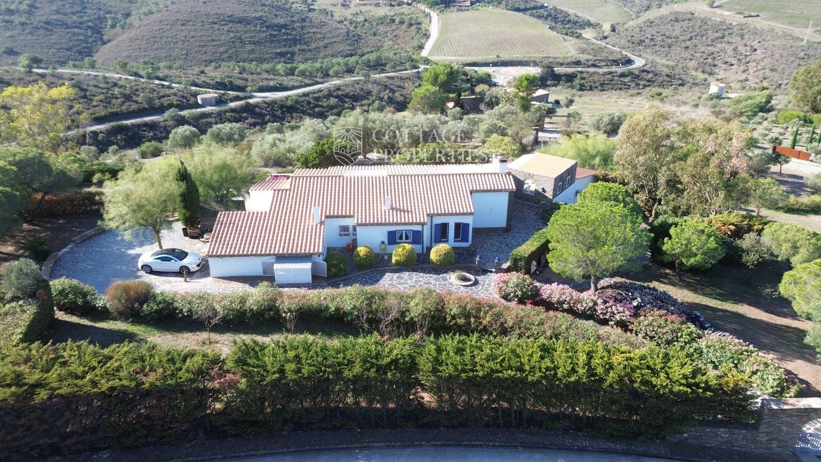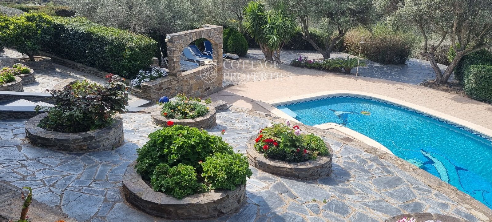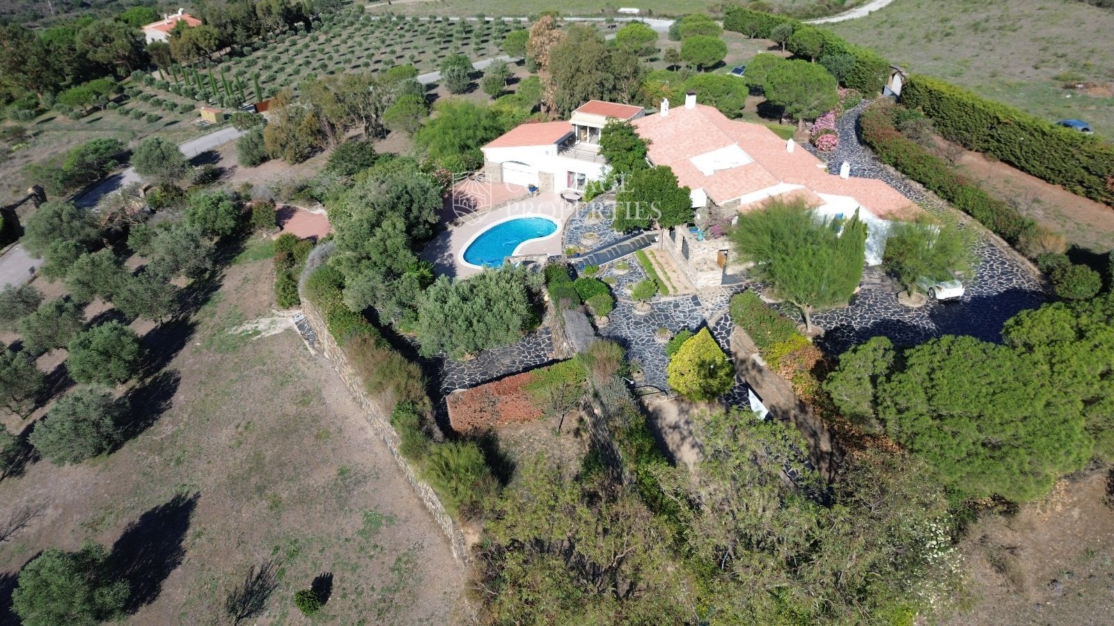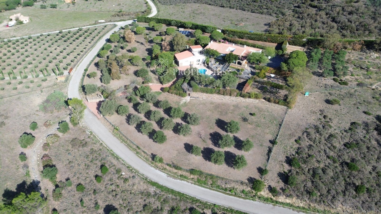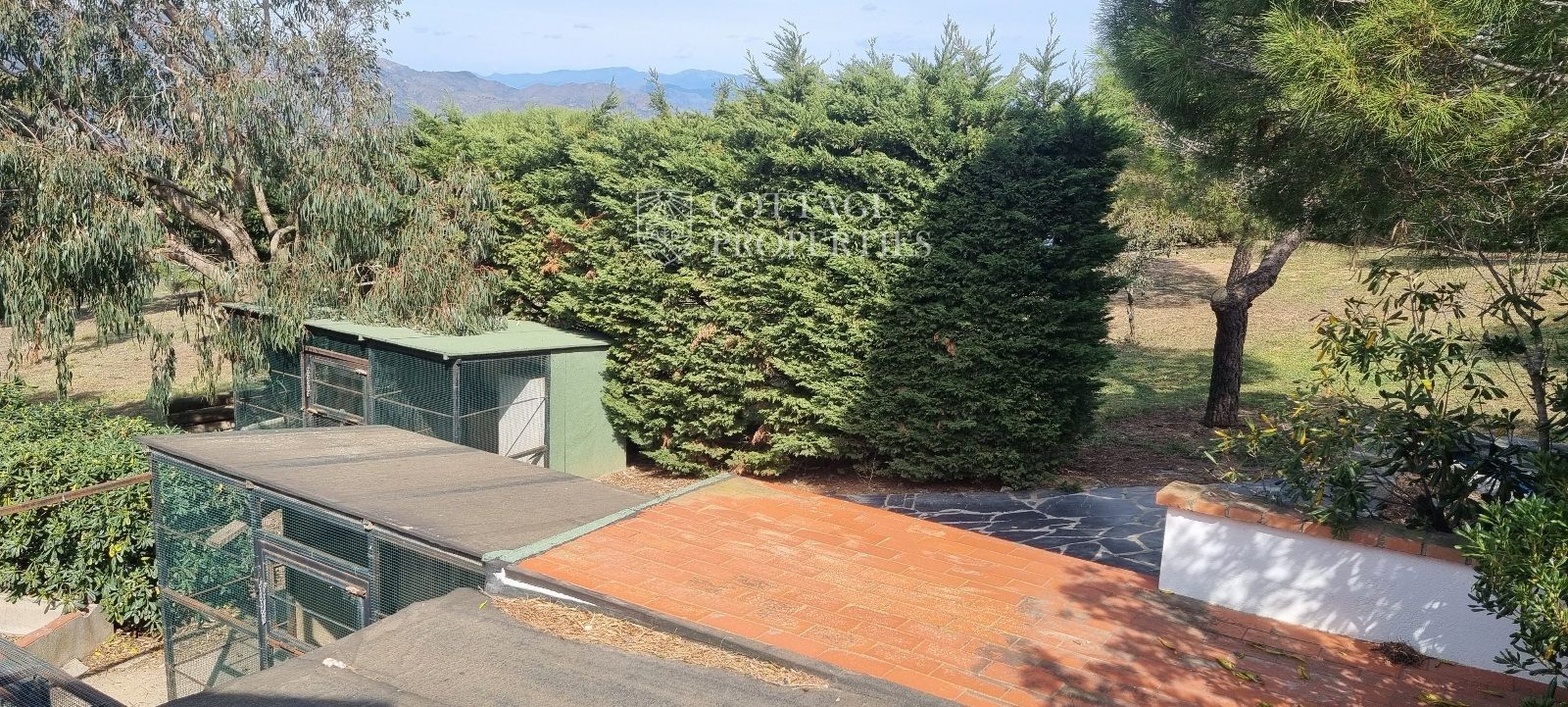 La casa es troba completament emmurallada amb murs de pedra i té dos accessos separats a través de portes automatitzades. Entre les comoditats addicionals s'inclouen una pista de petanca, un hort, un forn de pizza, una xemeneia i una piscina, tot envoltat per una parcel·la amb vegetació i vistes espectaculars.