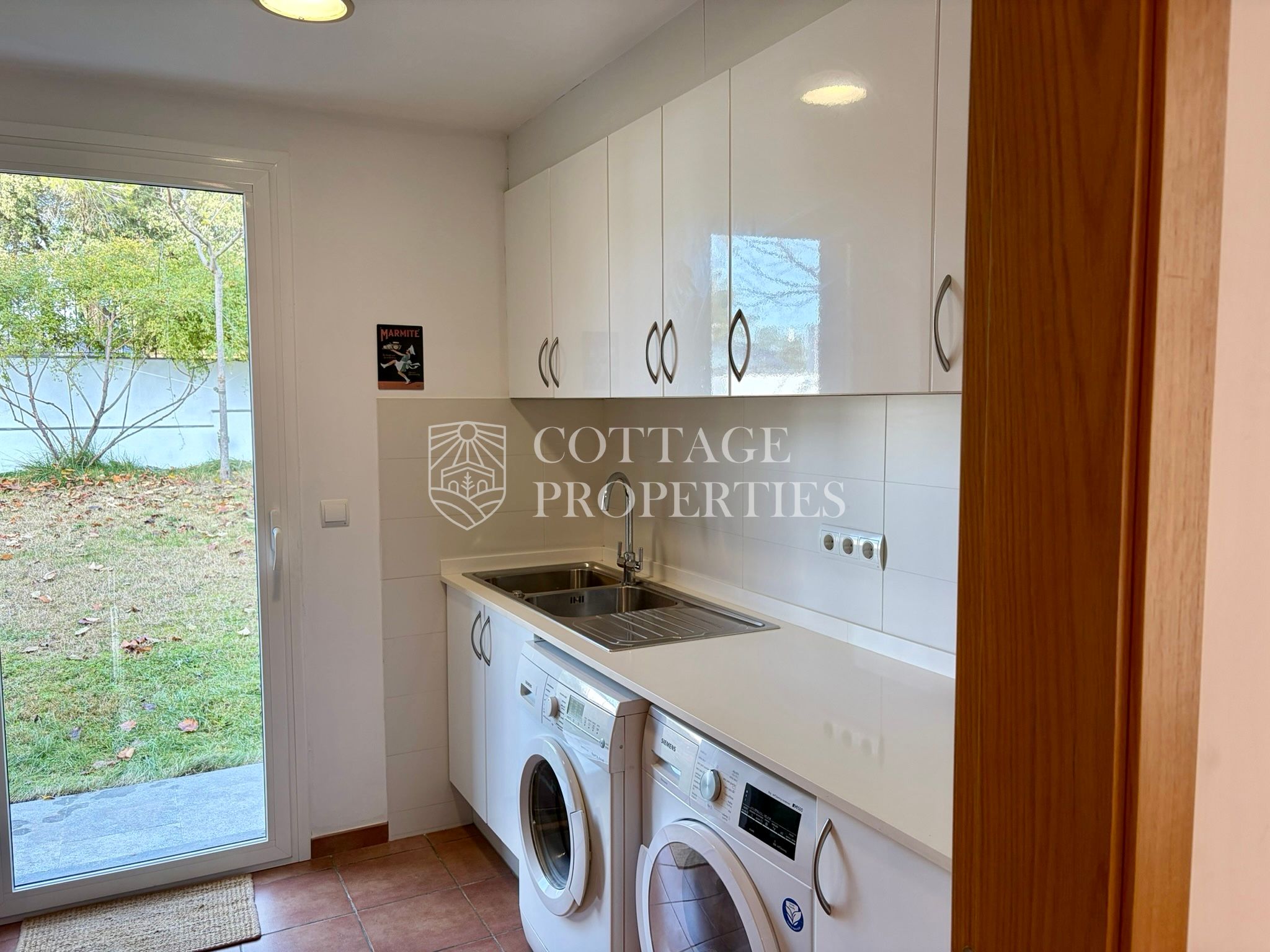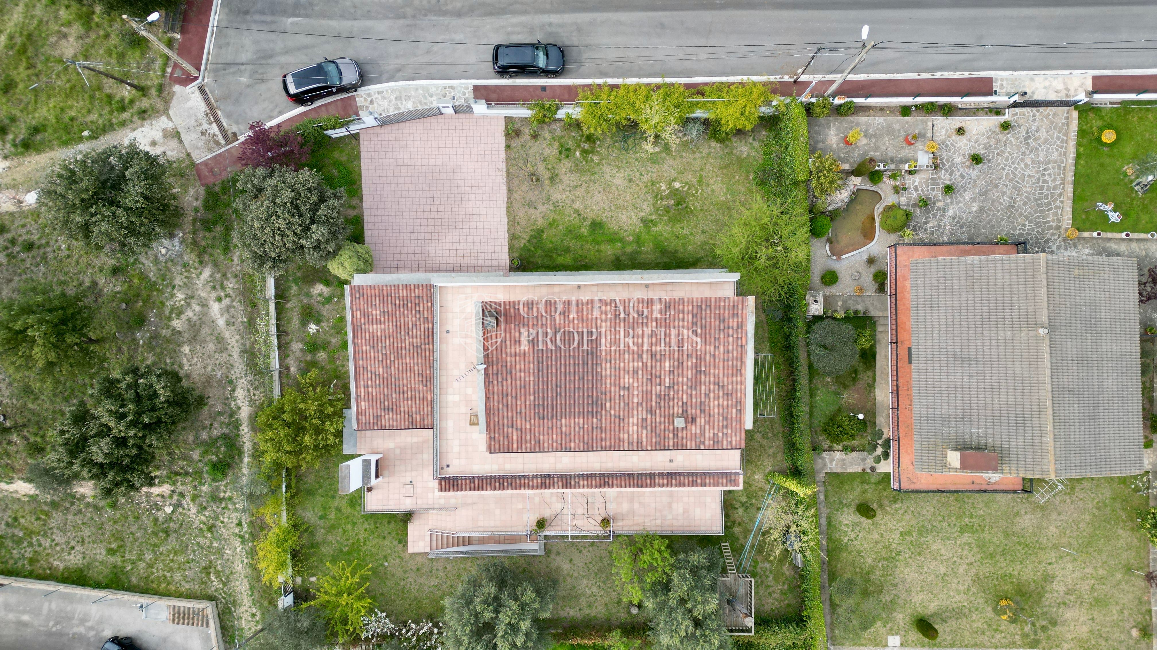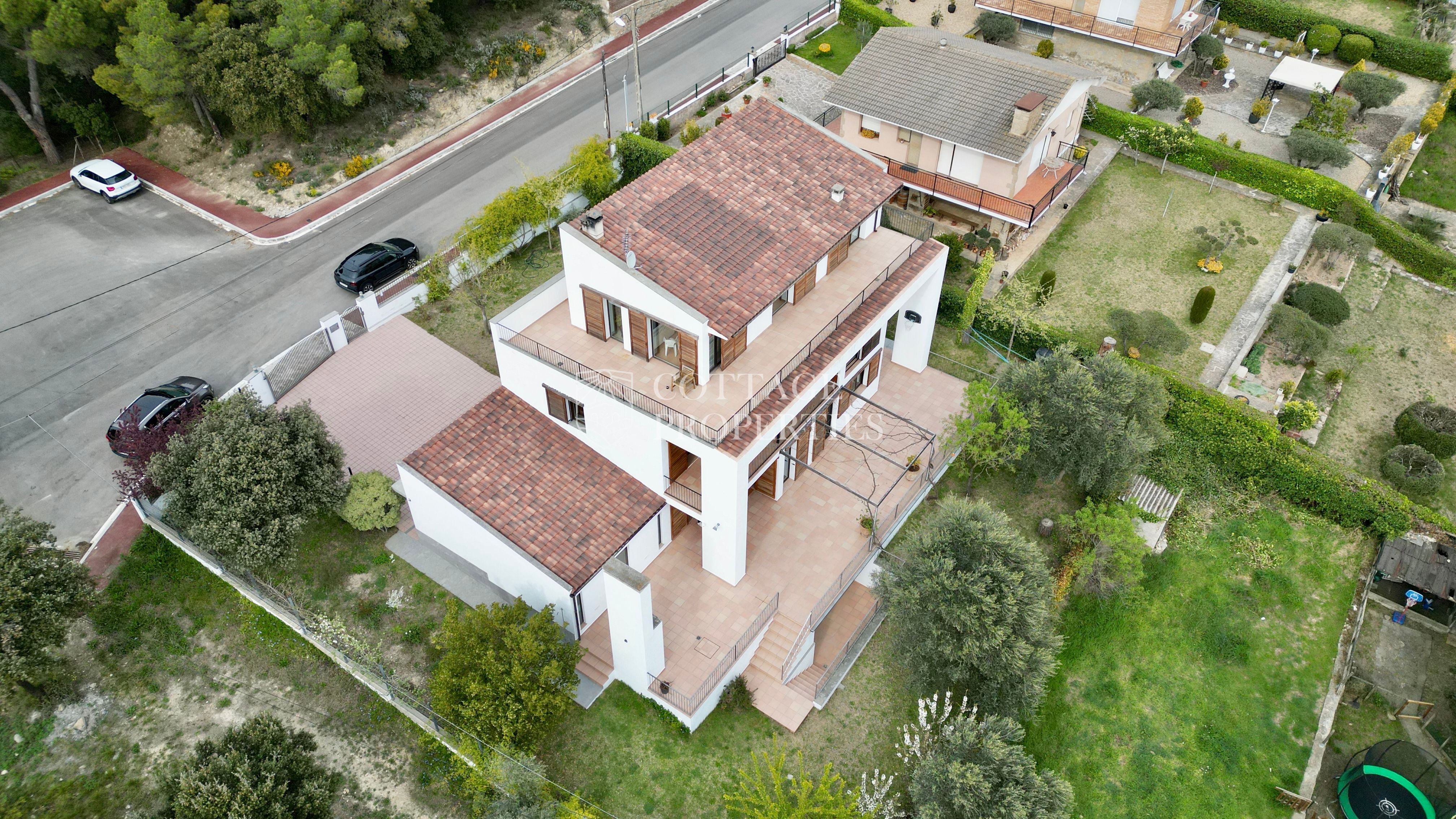 La vila inclou un elegant accés d’entrada, una escala central que articula l’habitatge, un ampli garatge amb capacitat per a 2 cotxes i zones tècniques. A la planta principal es troben diverses estances de dia, incloent un ampli saló-menjador ple de llum natural, connectat amb una cuina espaiosa que s’obre cap al jardí.