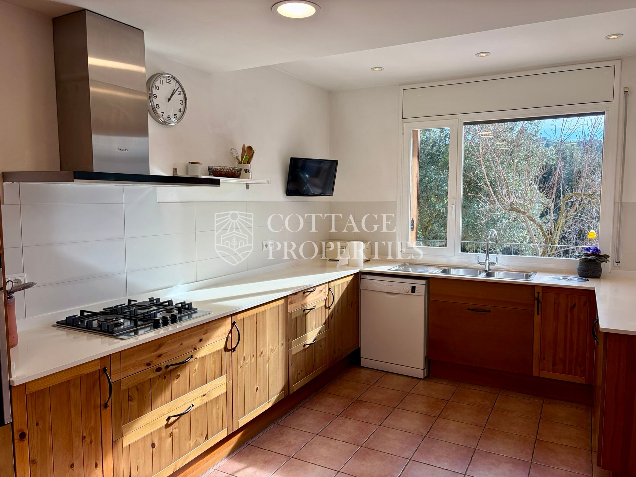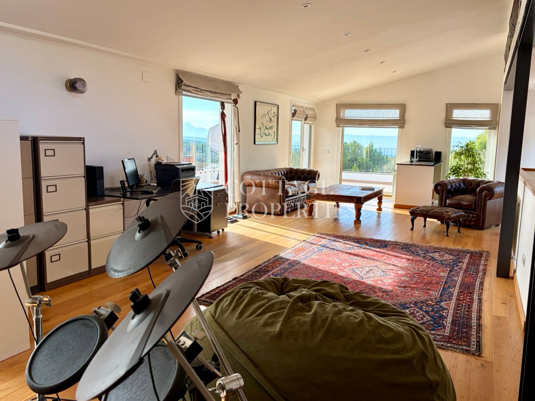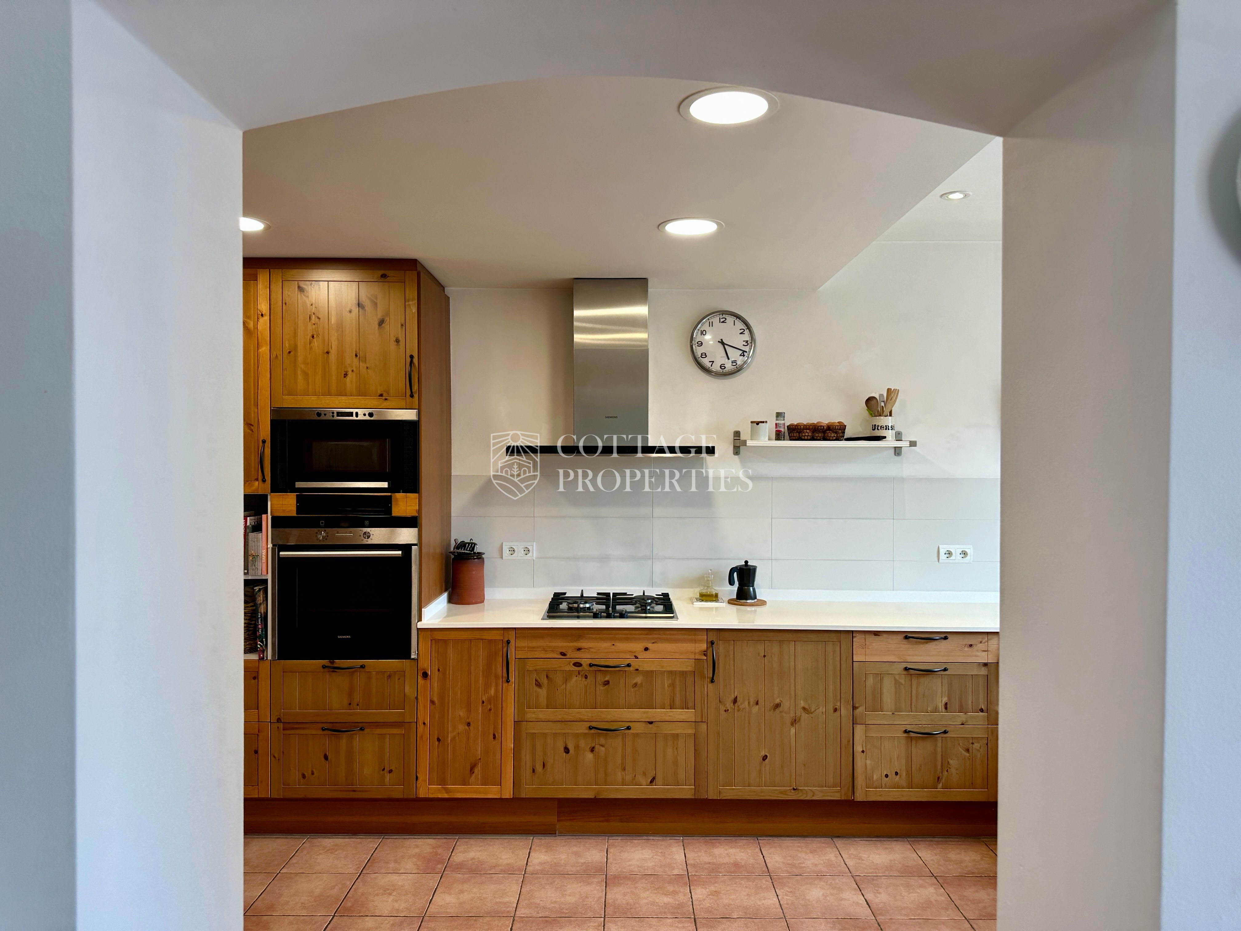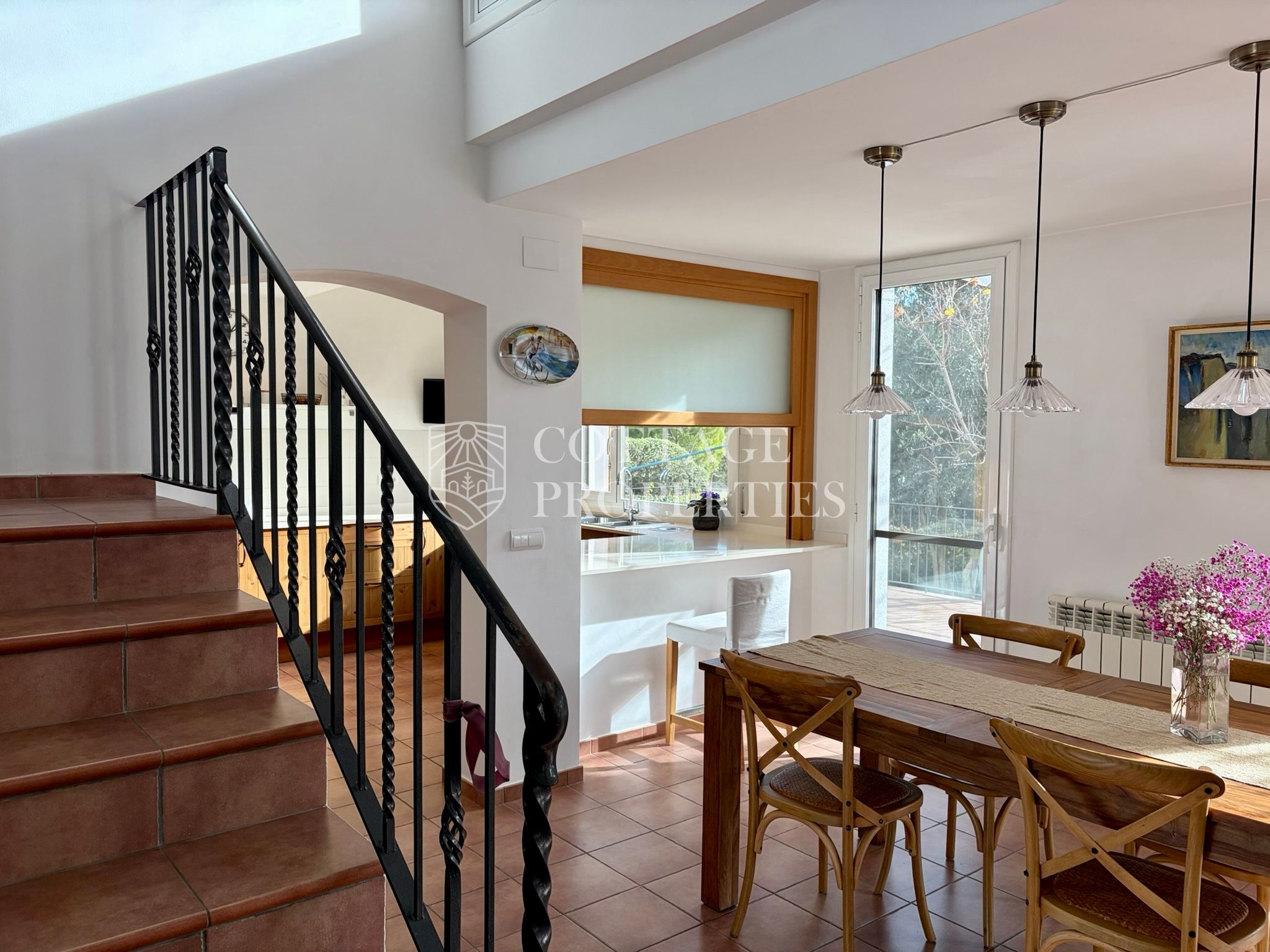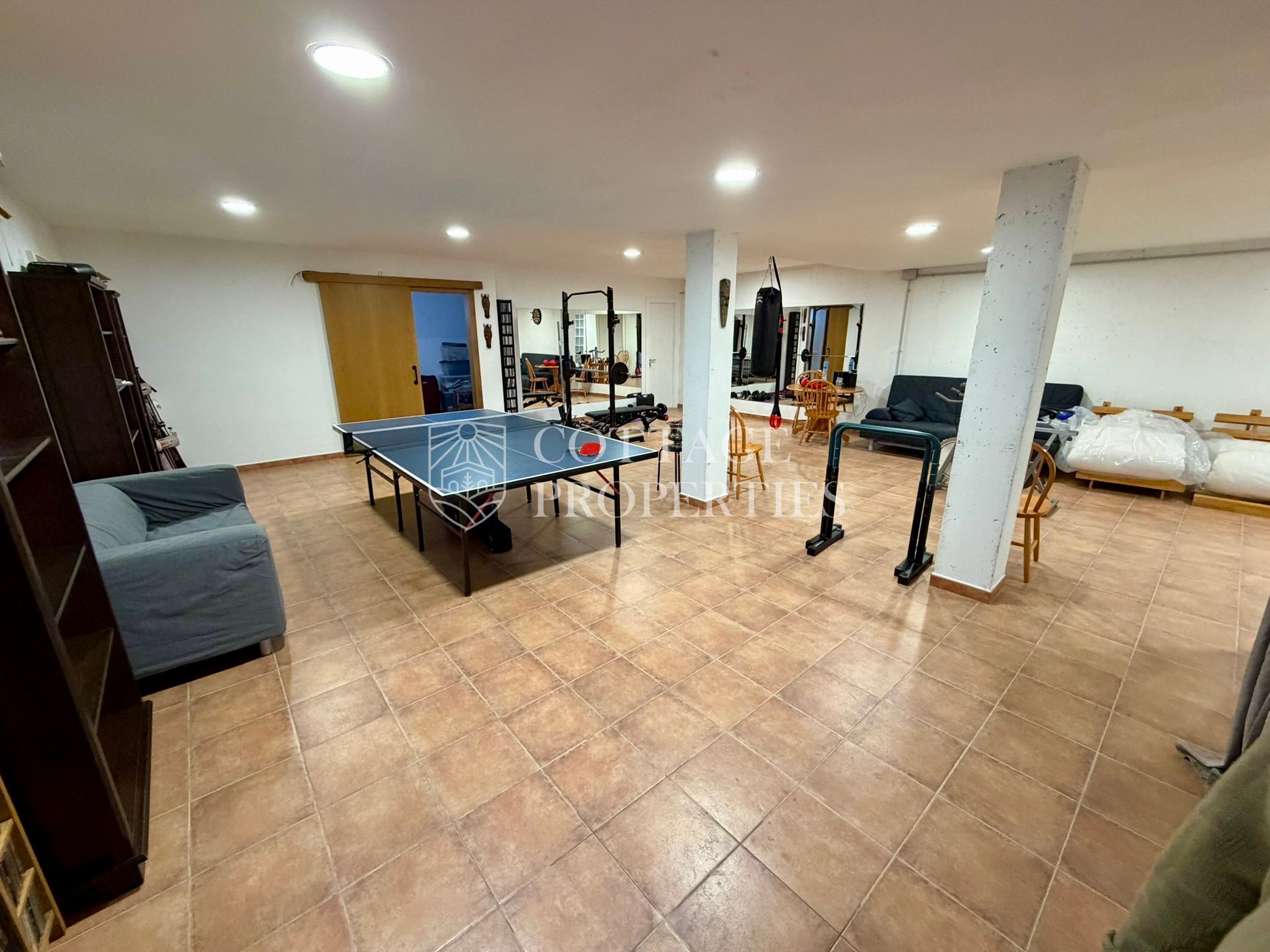 La propietat disposa de 5 dormitoris, incloent una suite principal, i un total de 4 banys complets i 3 lavabos, garantint comoditat per a tota la família i visitants. Des de les principals estances s’accedeix a diferents terrasses que ofereixen agradables vistes i espais exteriors per al descans. La planta superior afegeix versatilitat amb espais addicionals i accés a zones elevades amb vistes obertes.