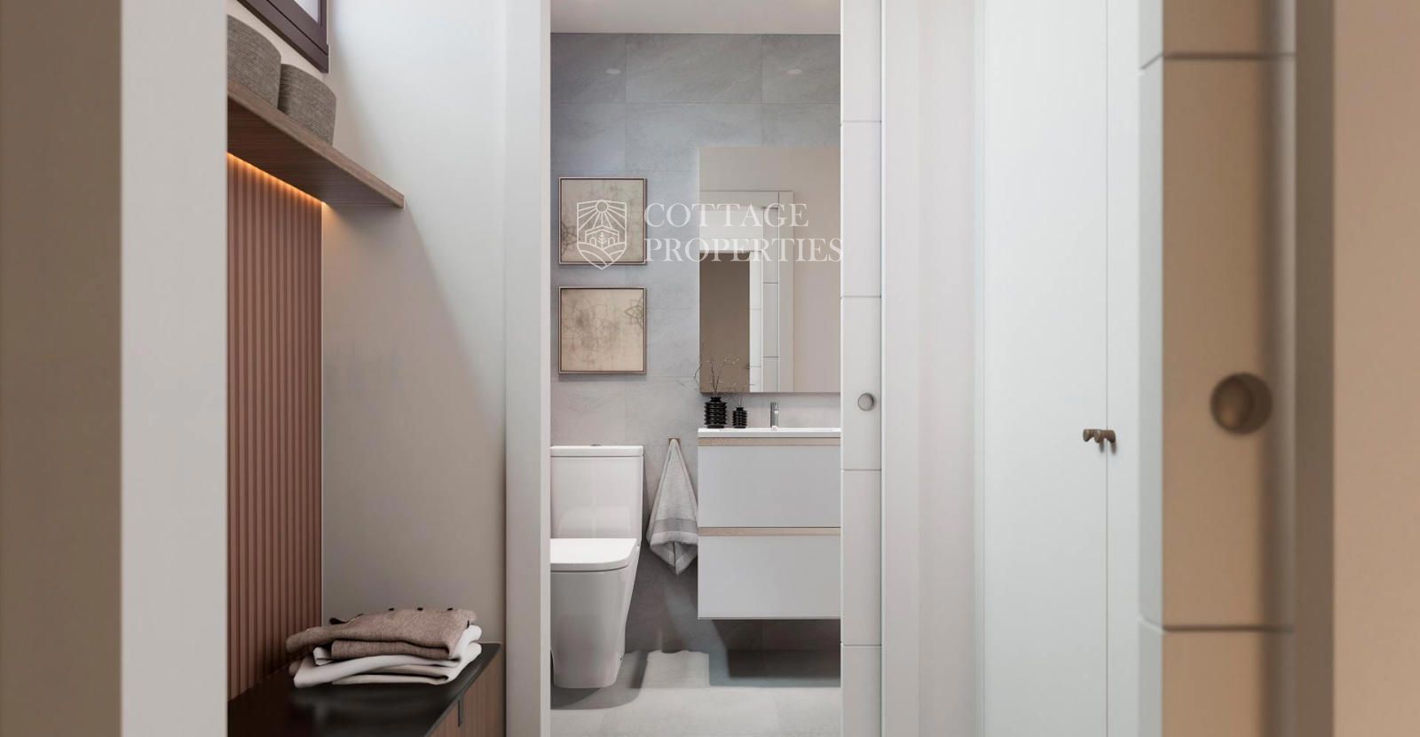 La planta superior allotja tres dormitoris, destacant el dormitori principal per la seva amplitud i comoditat, acompanyat de dos banys addicionals que aporten funcionalitat i privacitat per a família i convidats. La distribució ha estat dissenyada per optimitzar l'entrada de llum natural i garantir una circulació còmoda entre les estances.