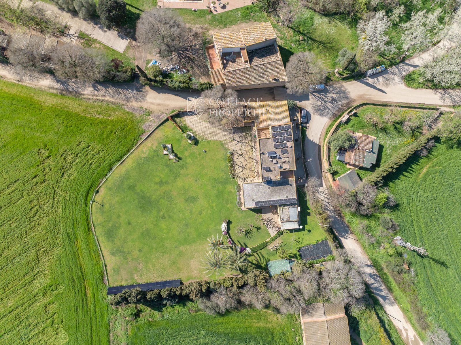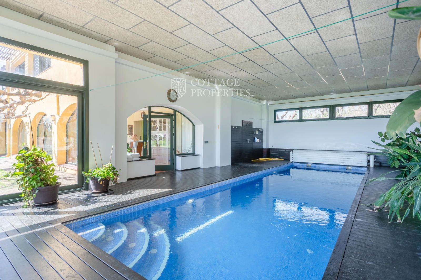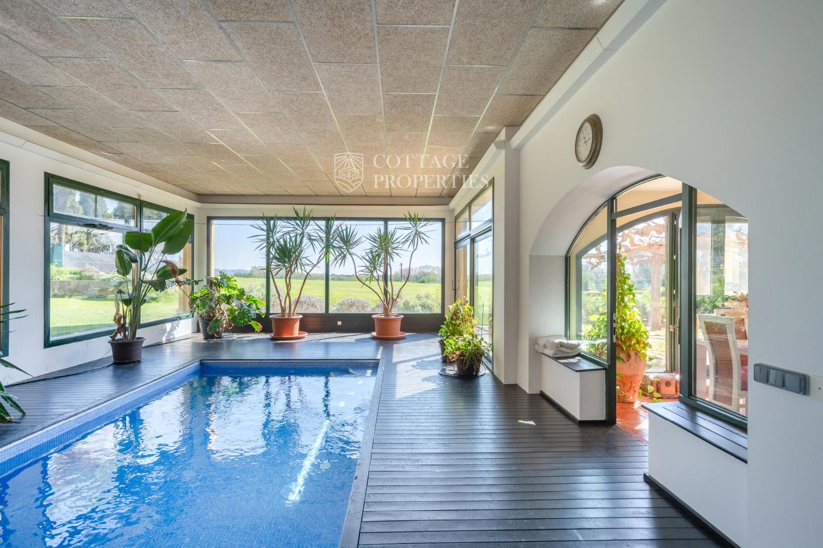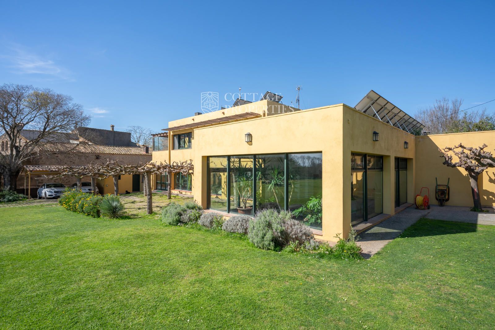 El jardí ha estat dissenyat per oferir privacitat, confort i bellesa. Disposa d'una piscina coberta, una zona d'estar exterior i un entorn arbrat amb vistes obertes impressionants. En termes de sostenibilitat, la propietat està equipada amb plaques solars, calefacció per aerotèrmia, pou d'aigua privat, bateries solars i connexió a la xarxa elèctrica. L'internet de fibra òptica d'alta velocitat garanteix una excel·lent connectivitat a tota la casa.