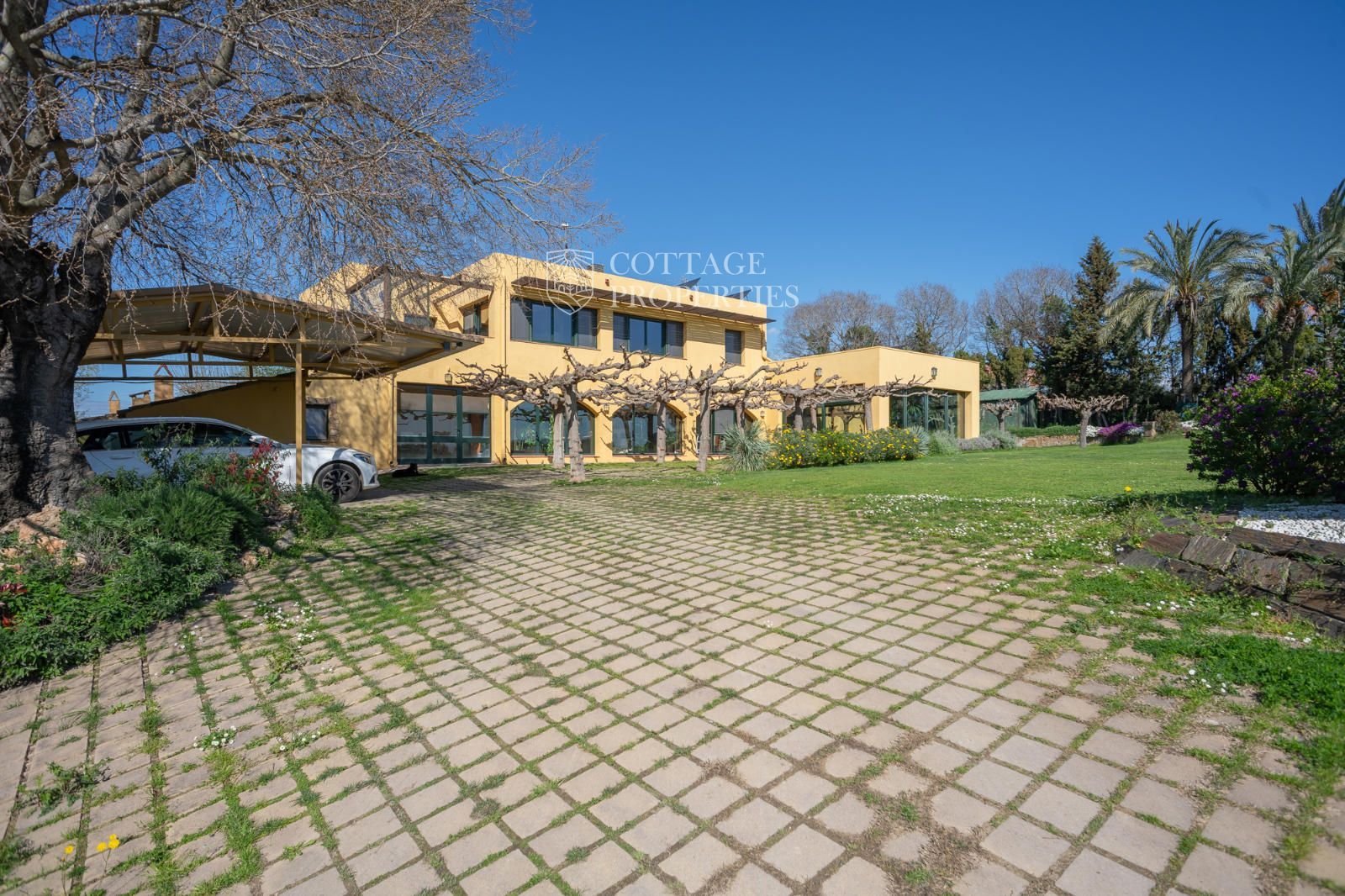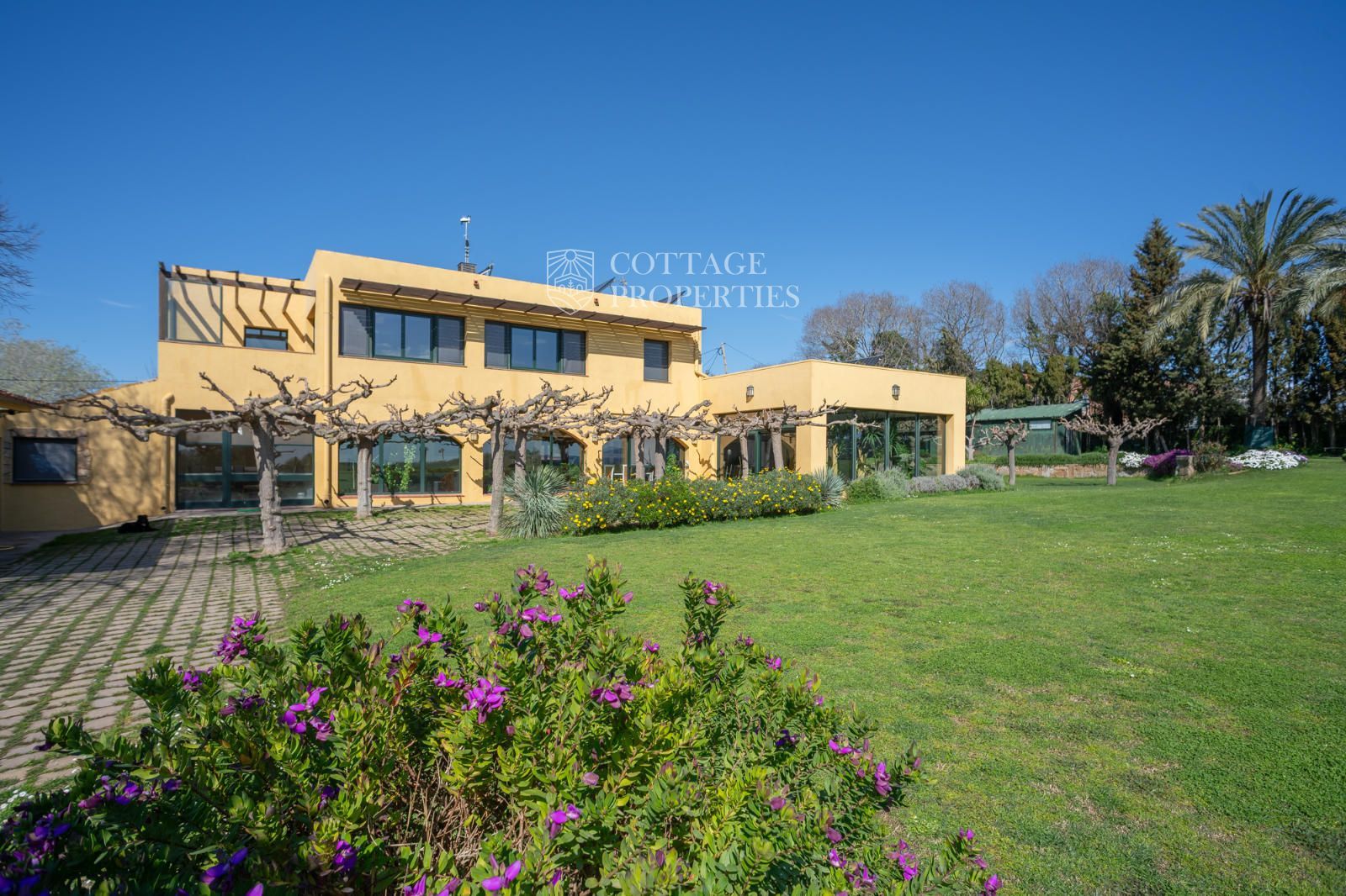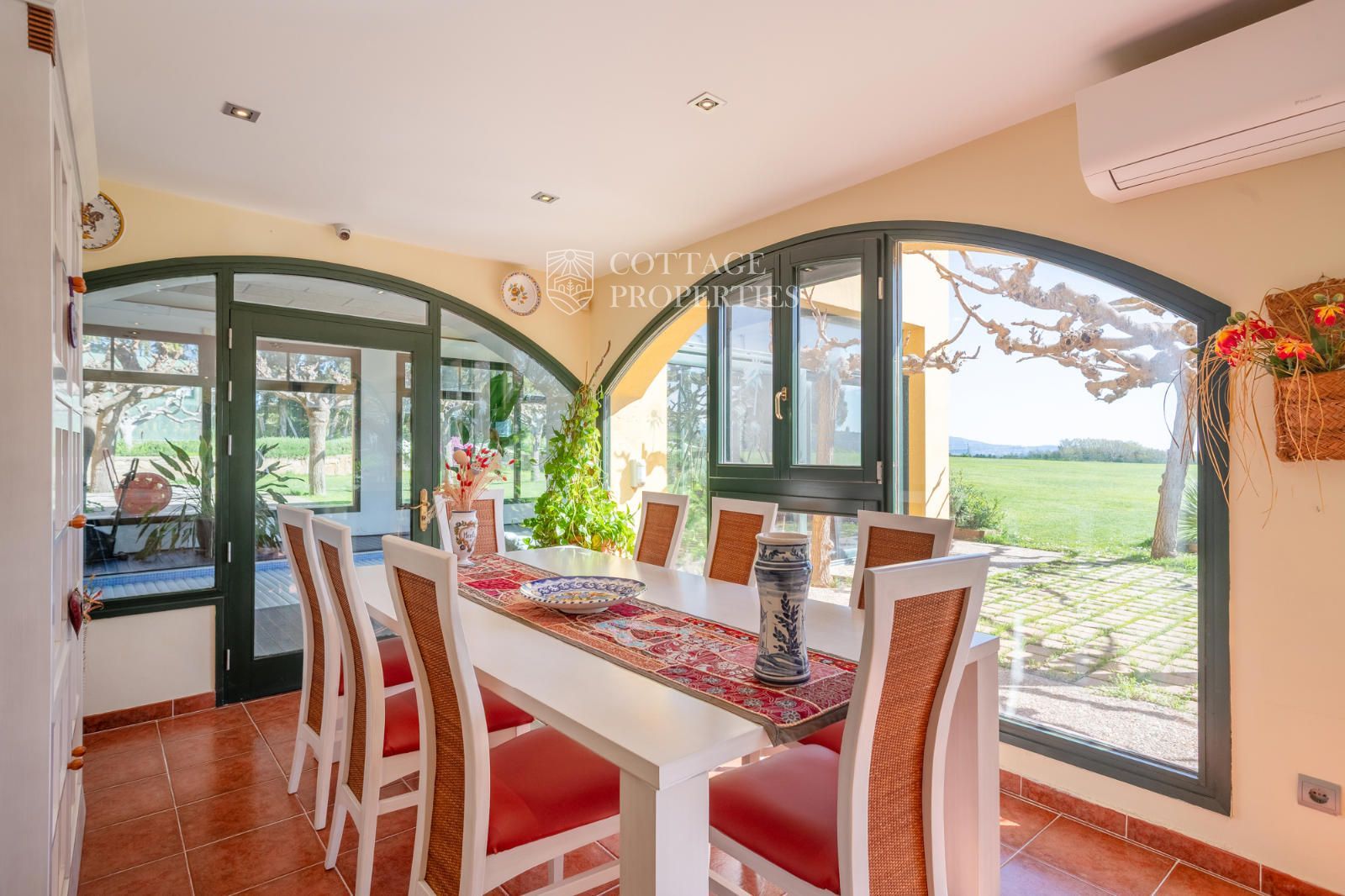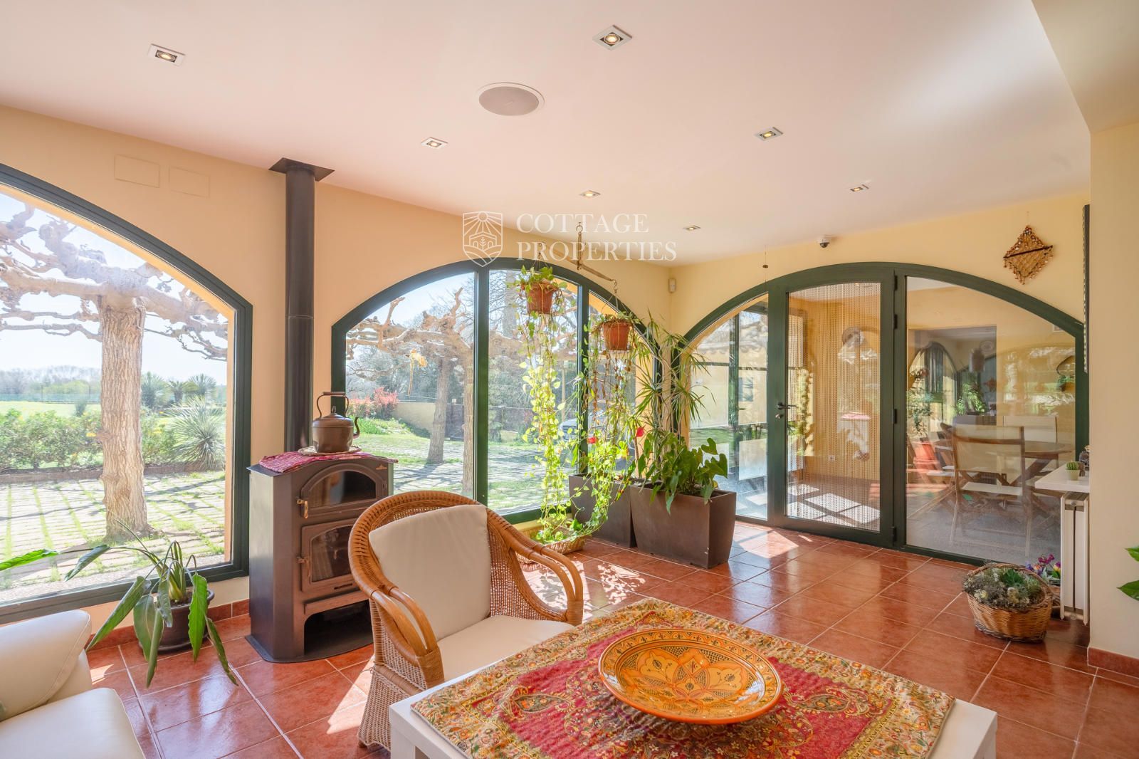 El jardí ha estat dissenyat per oferir privacitat, confort i bellesa. Disposa d'una piscina coberta, una zona d'estar exterior i un entorn arbrat amb vistes obertes impressionants. En termes de sostenibilitat, la propietat està equipada amb plaques solars, calefacció per aerotèrmia, pou d'aigua privat, bateries solars i connexió a la xarxa elèctrica. L'internet de fibra òptica d'alta velocitat garanteix una excel·lent connectivitat a tota la casa.