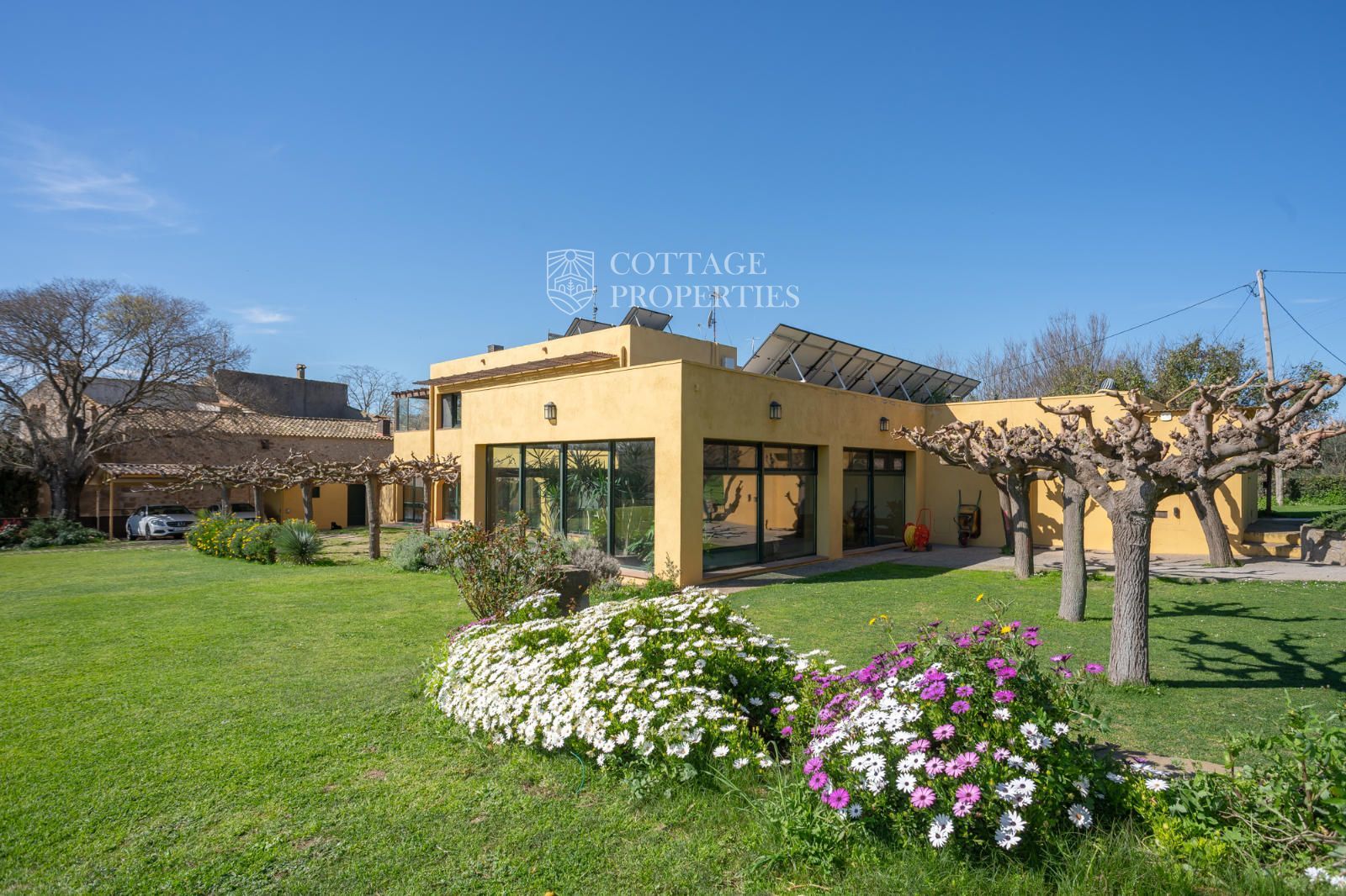Situada a només 15 minuts de Figueres i del litoral de la Costa Brava, aquesta casa va ser construïda recentment sobre una parcel·la enjardinada de 3.231 m² i compta amb una superfície construïda de 500 m² distribuïts en diverses plantes connectades amb ascensor. Tota la casa gaudeix d'una excel·lent orientació, amb certificació energètica A i un disseny arquitectònic pensat per al confort i l'eficiència.