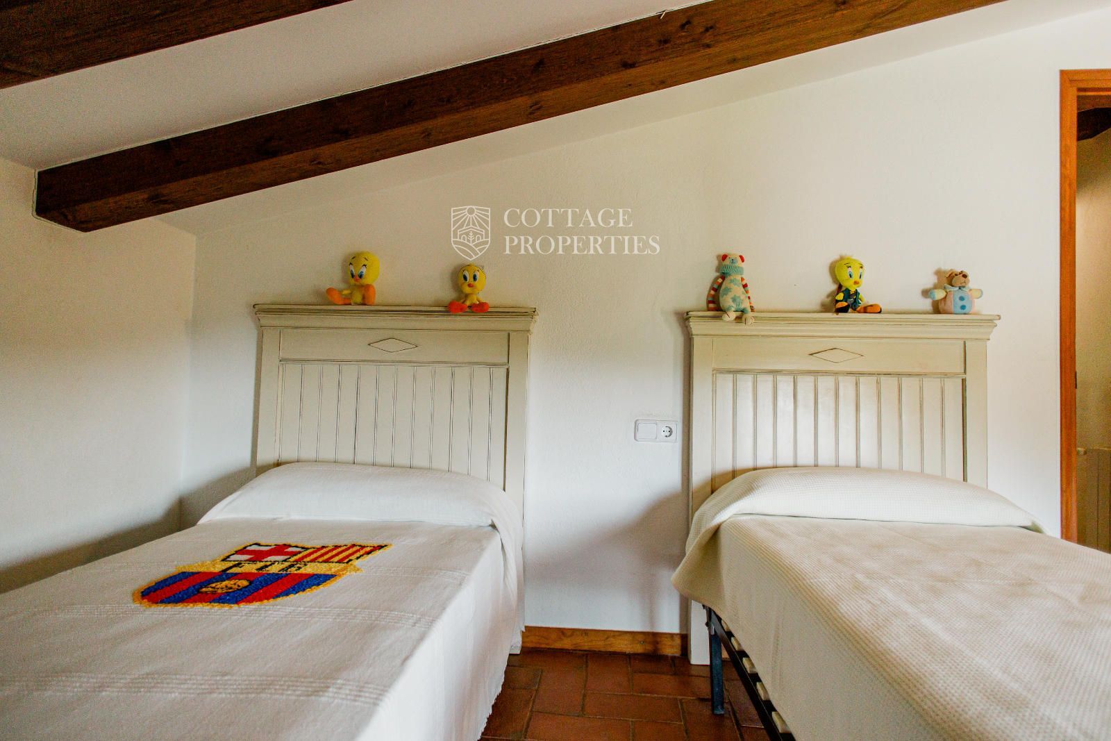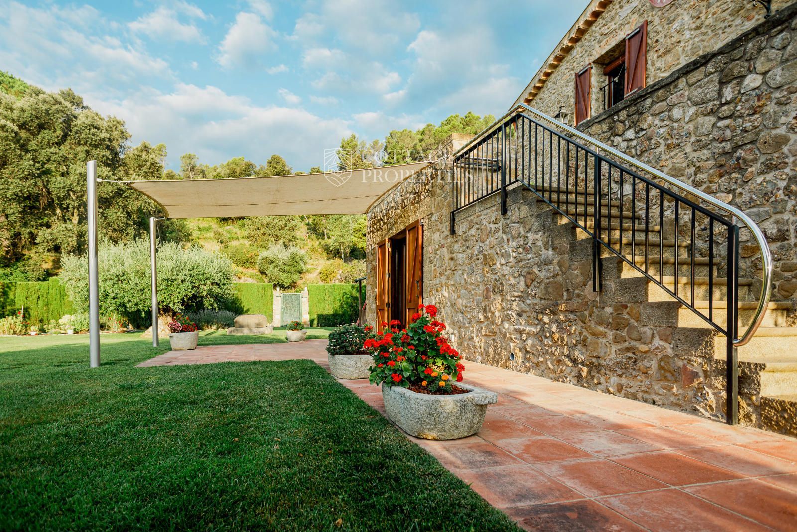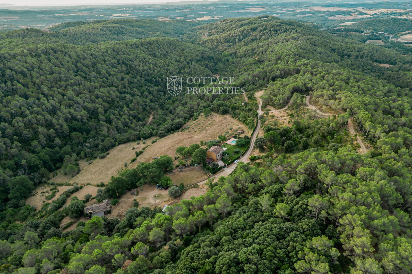 Ubicada a només 15 minuts de Figueres, aquesta masia construïda al segle XVIII es troba sobre una àmplia parcel·la de 91.551 m², amb una superfície construïda de 360 m², excloent els m² de la caseta auxiliar de dues plantes. La propietat està en excel·lent estat de conservació, amb una reforma integral executada amb materials i instal·lacions de qualitat superior.