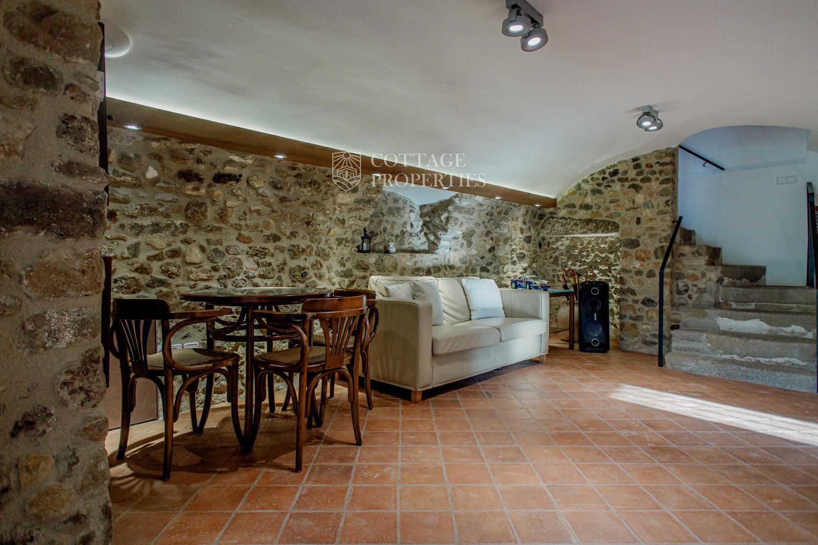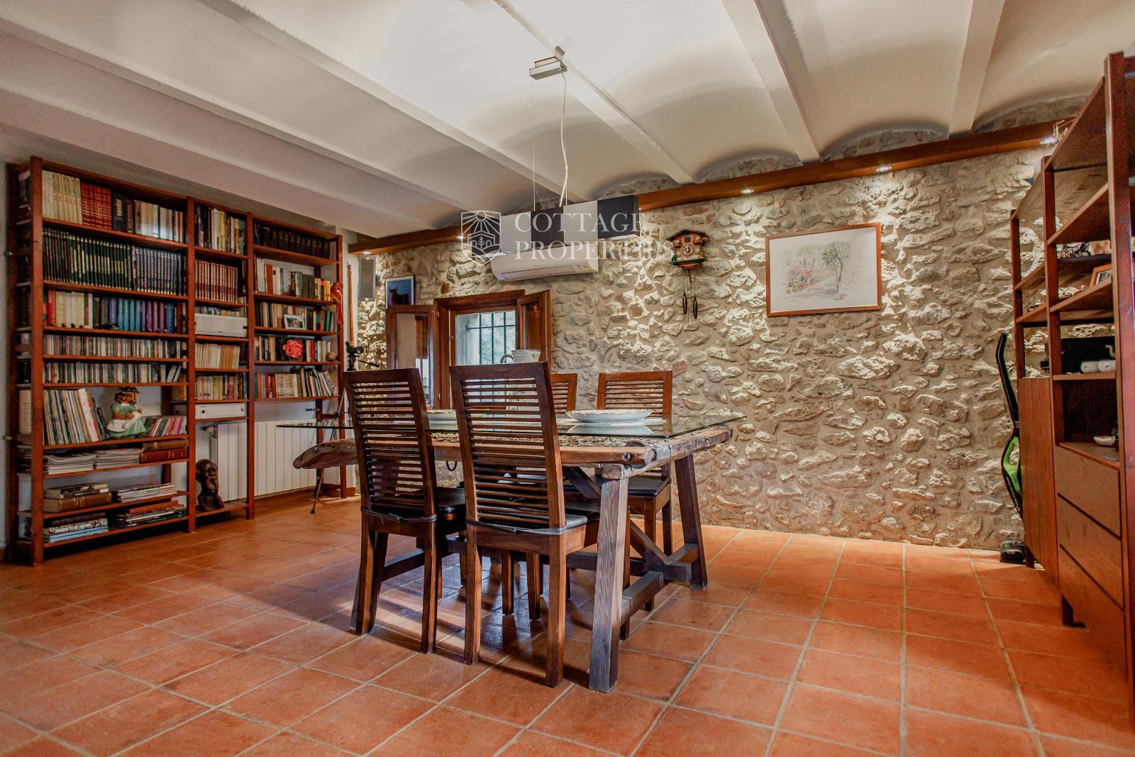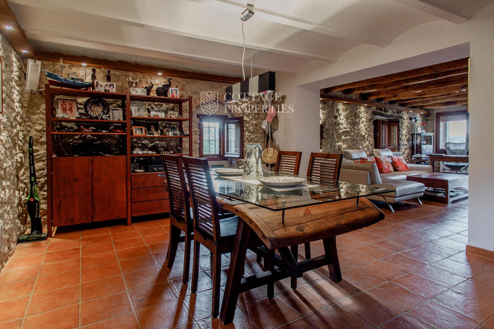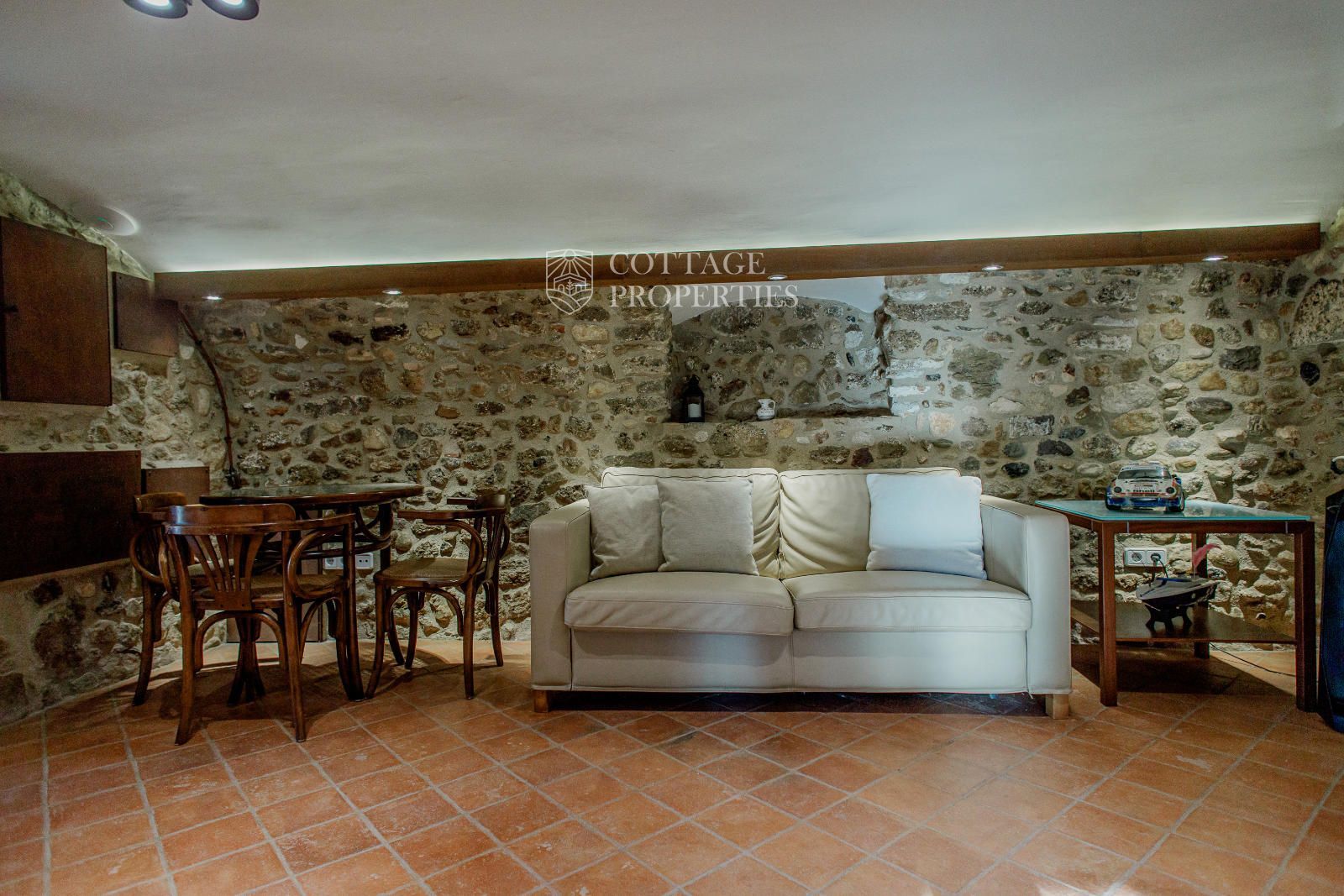 La masia compta amb: un acollidor rebedor, ampli saló-menjador amb accés a la terrassa principal, cuina moderna que s'estén cap al jardí posterior, quatre dormitoris, incloent una suite principal amb bany privat, a la planta baixa, una sala d'estiu amb cuina addicional i un ampli espai que actualment serveix com a garatge per a motos i maquinària.