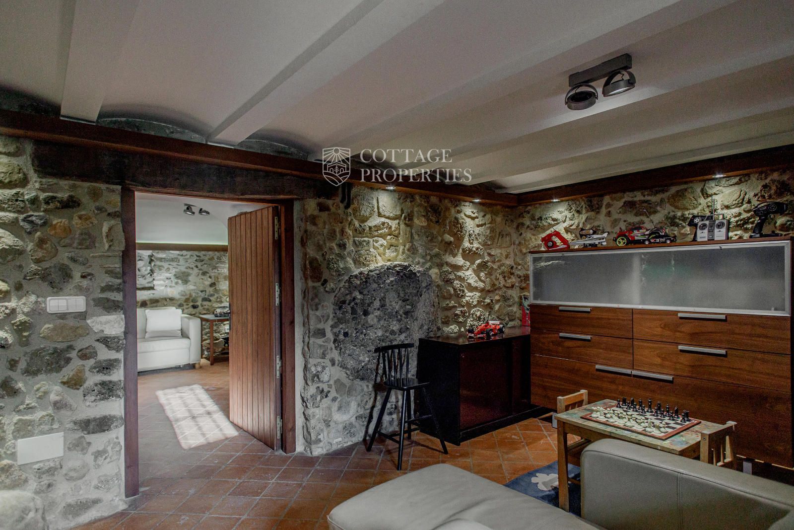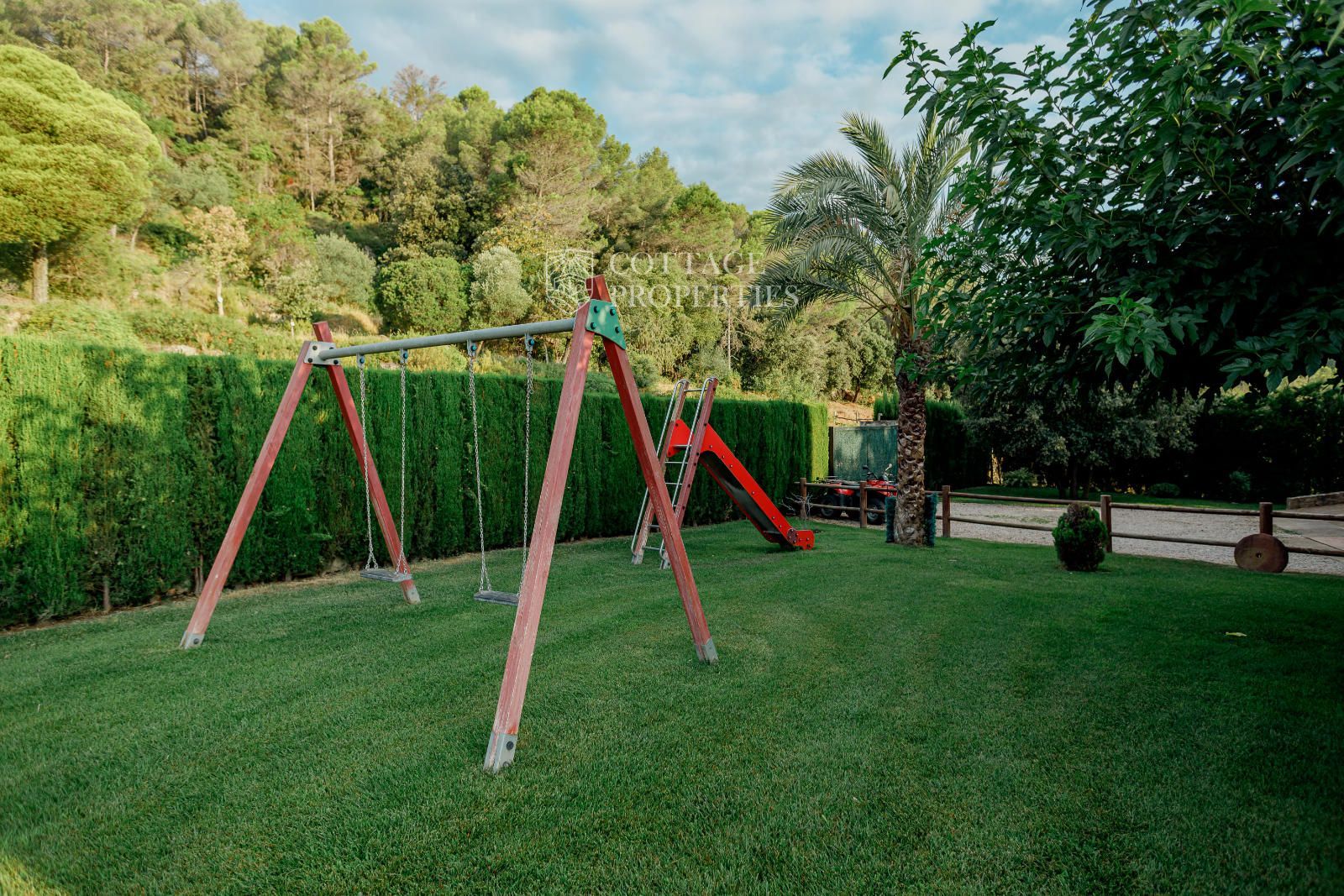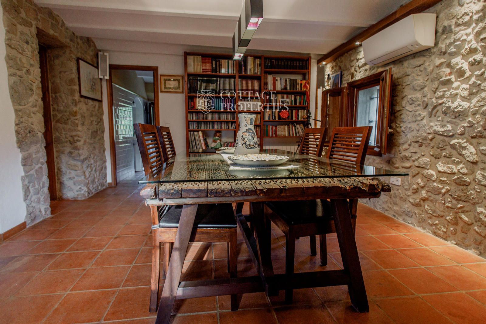 La masia compta amb: un acollidor rebedor, ampli saló-menjador amb accés a la terrassa principal, cuina moderna que s'estén cap al jardí posterior, quatre dormitoris, incloent una suite principal amb bany privat, a la planta baixa, una sala d'estiu amb cuina addicional i un ampli espai que actualment serveix com a garatge per a motos i maquinària.