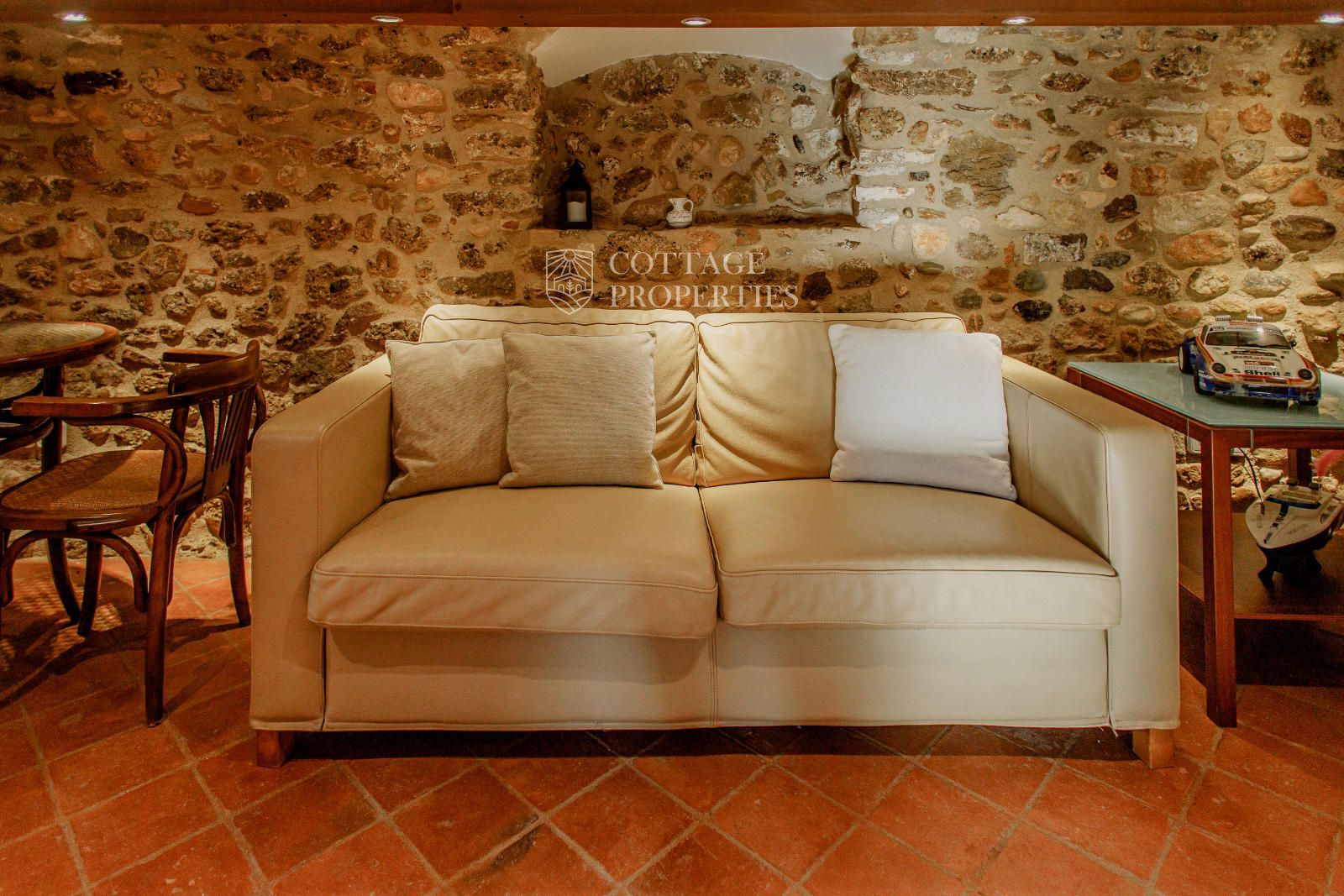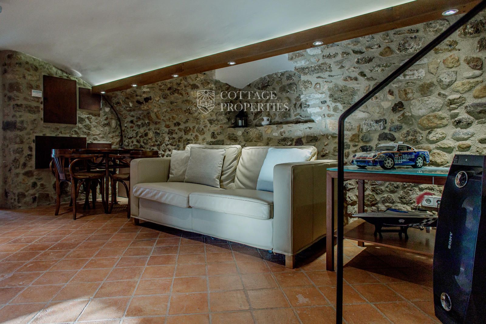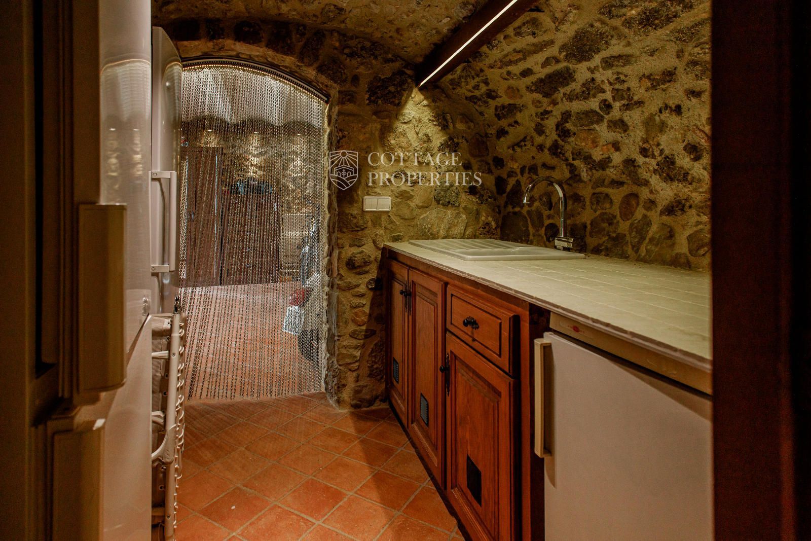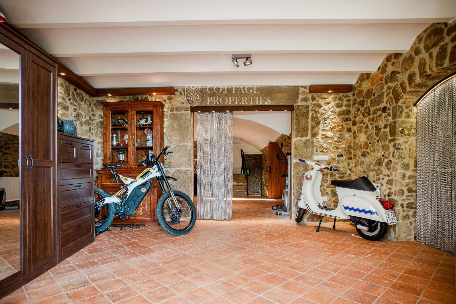 La masia compta amb: un acollidor rebedor, ampli saló-menjador amb accés a la terrassa principal, cuina moderna que s'estén cap al jardí posterior, quatre dormitoris, incloent una suite principal amb bany privat, a la planta baixa, una sala d'estiu amb cuina addicional i un ampli espai que actualment serveix com a garatge per a motos i maquinària.