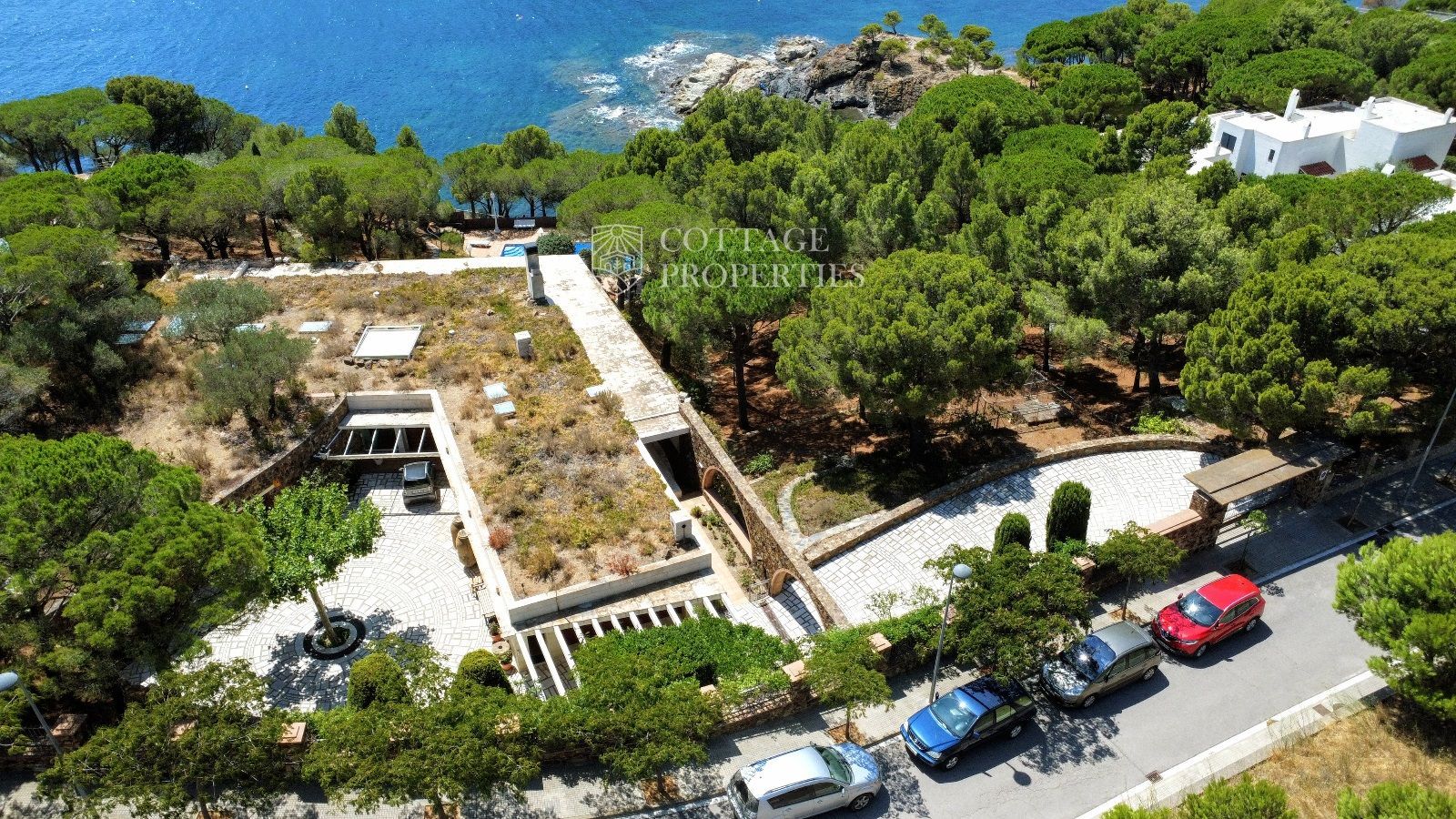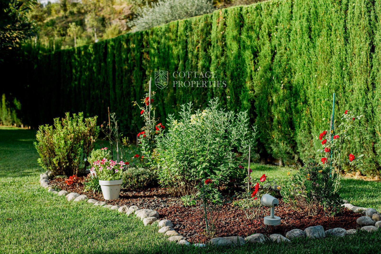 L'exterior de la propietat inclou: un bonic jardí completament tancat amb murs de pedra i tanca metàl·lica per protegir la privadesa i evitar l'entrada de fauna salvatge, una piscina d'aigua salada revestida en gresite verd, situada al costat del mur de contenció del jardí, més de 100 oliveres que permeten la producció d'uns 100 litres d'oli verge a l'any per al consum familiar, sistema d'il·luminació LED al jardí i reg automàtic en 14 zones diferents.