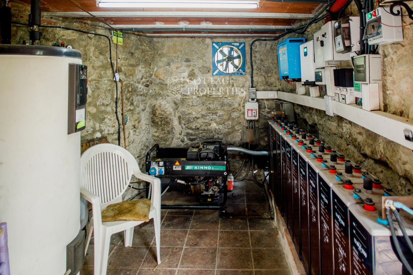 A la caseta auxiliar de dues plantes es troben els sistemes tècnics, incloent: un sistema d'energia solar amb 22 plaques fotovoltaiques, un generador de gasoil i un acumulador d'aigua sanitària de 300L, un sistema de calefacció i aigua sanitària amb dos circuits i una caldera de gasoil.