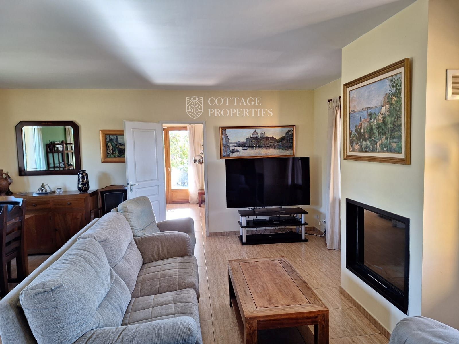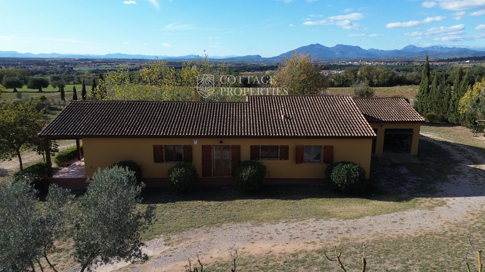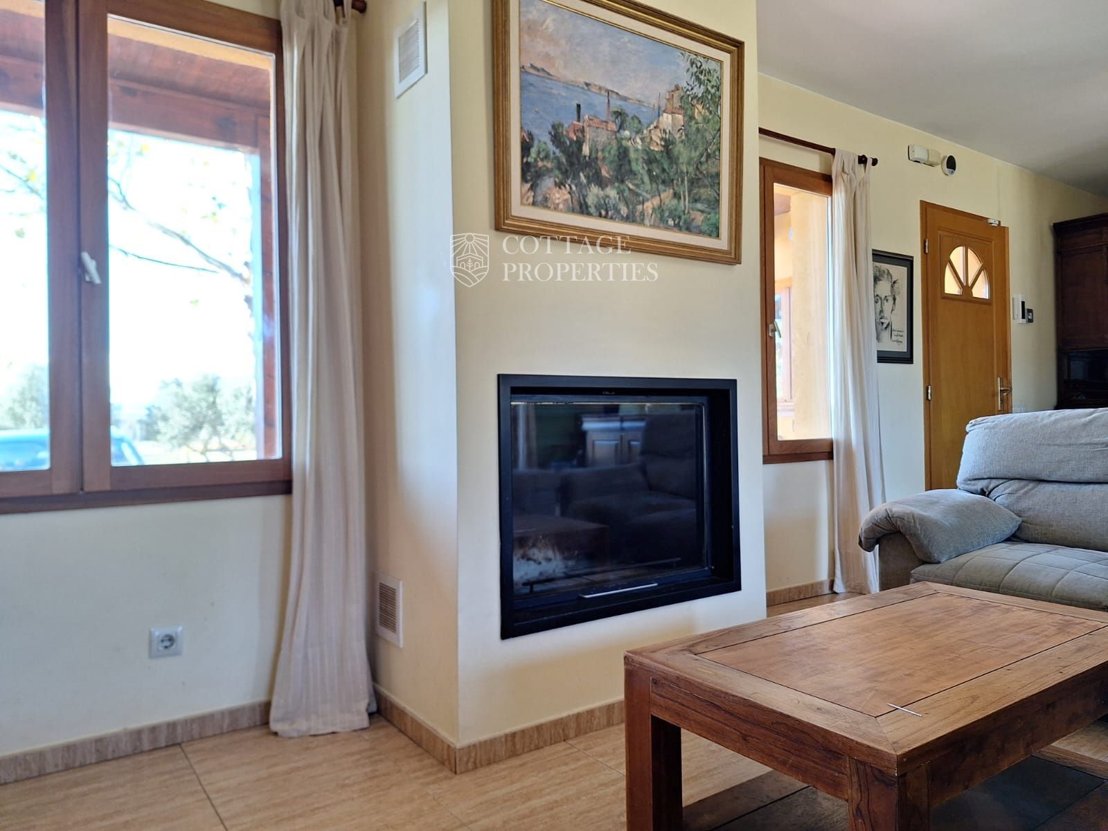 La casa disposa d'un gran saló-menjador que s'obre a un porxo amb vistes al emblemàtic Canigó, ideal per relaxar-se o entretenir als convidats. La moderna cuina-office està completament equipada per facilitar la vida diària. La propietat compta amb quatre dormitoris espaiosos i dos banys complets. A més, està equipada amb aire condicionat, calefacció i una acollidora xemeneia, garantint confort en qualsevol estació de l'any.