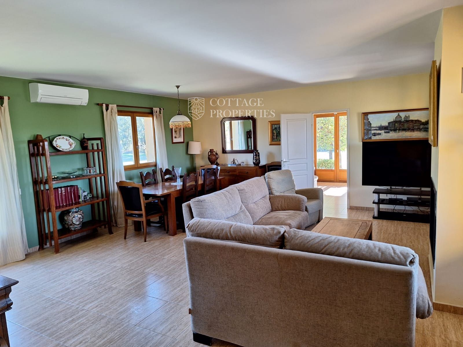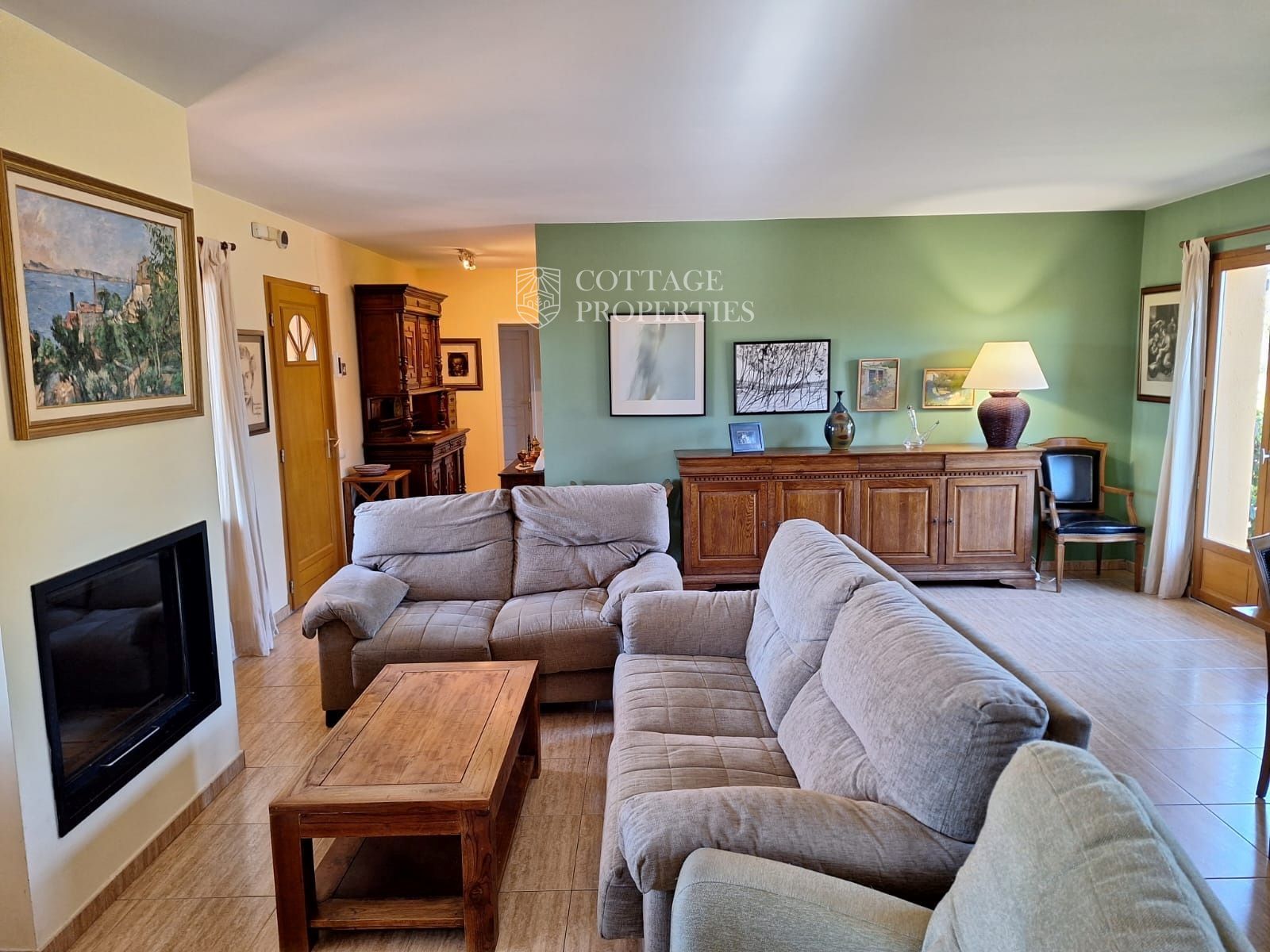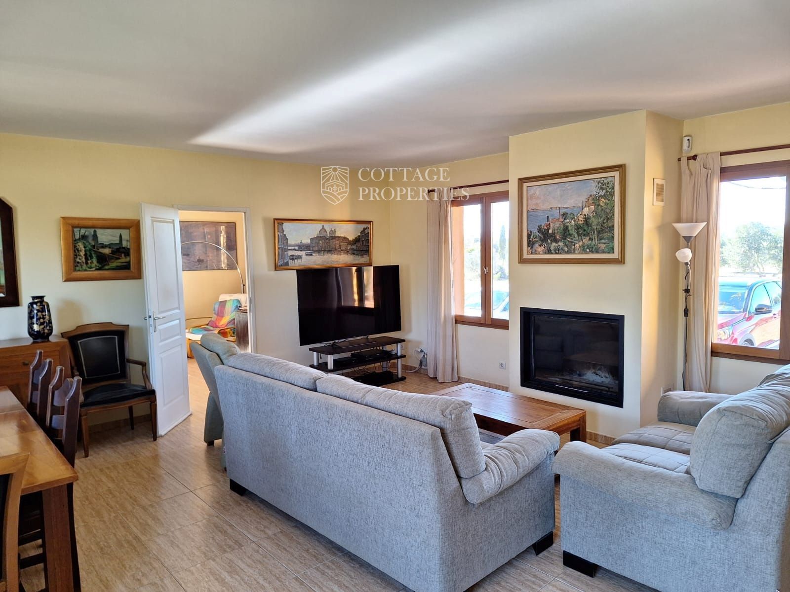 La casa disposa d'un gran saló-menjador que s'obre a un porxo amb vistes al emblemàtic Canigó, ideal per relaxar-se o entretenir als convidats. La moderna cuina-office està completament equipada per facilitar la vida diària. La propietat compta amb quatre dormitoris espaiosos i dos banys complets. A més, està equipada amb aire condicionat, calefacció i una acollidora xemeneia, garantint confort en qualsevol estació de l'any.