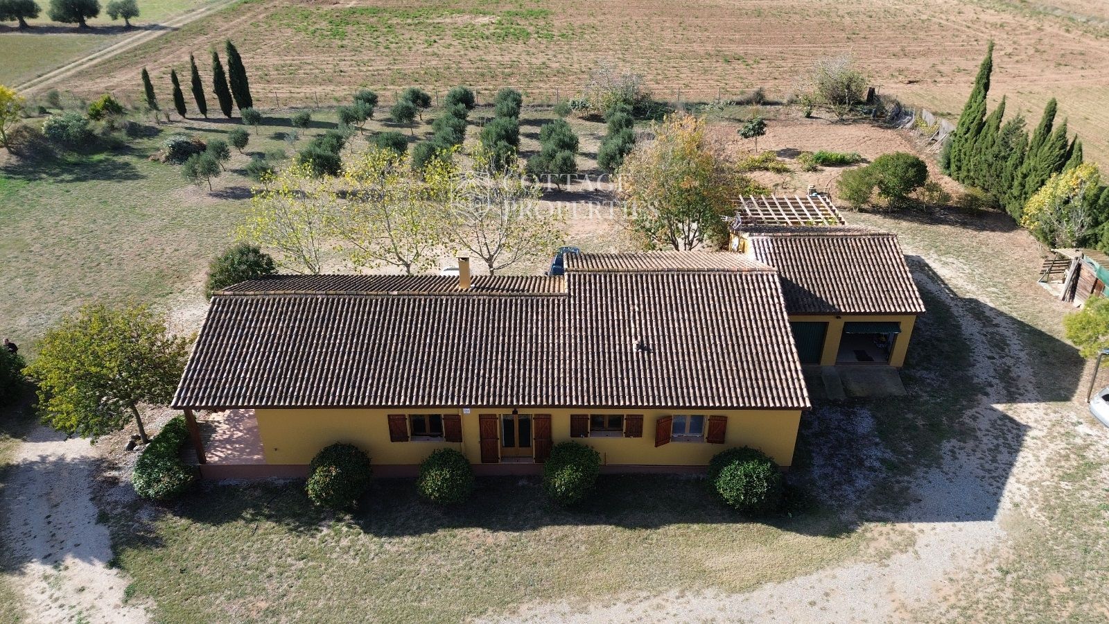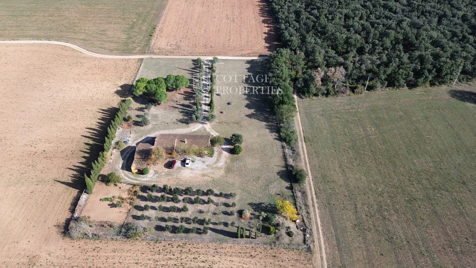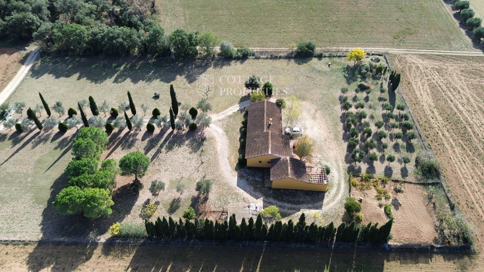 La propietat es troba en un terreny de 28.000 m², amb 9.000 m² tancats. El jardí ampli inclou un camí d'entrada adornat amb oliveres, pins i una varietat d'arbres. A més, la finca compta amb el seu propi hort i un petit vinya, proporcionant una experiència única de connexió amb la terra. La venda inclou tres finques rústiques addicionals al mateix municipi, sumant un total de 46.000 m² de terreny.