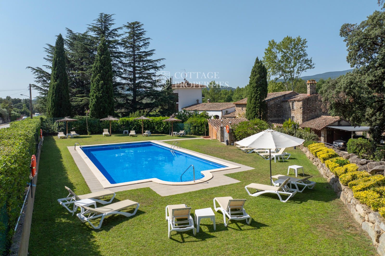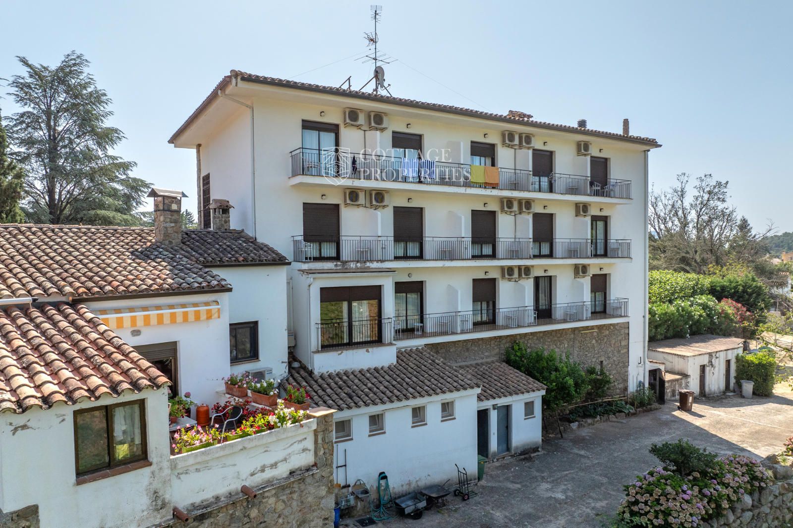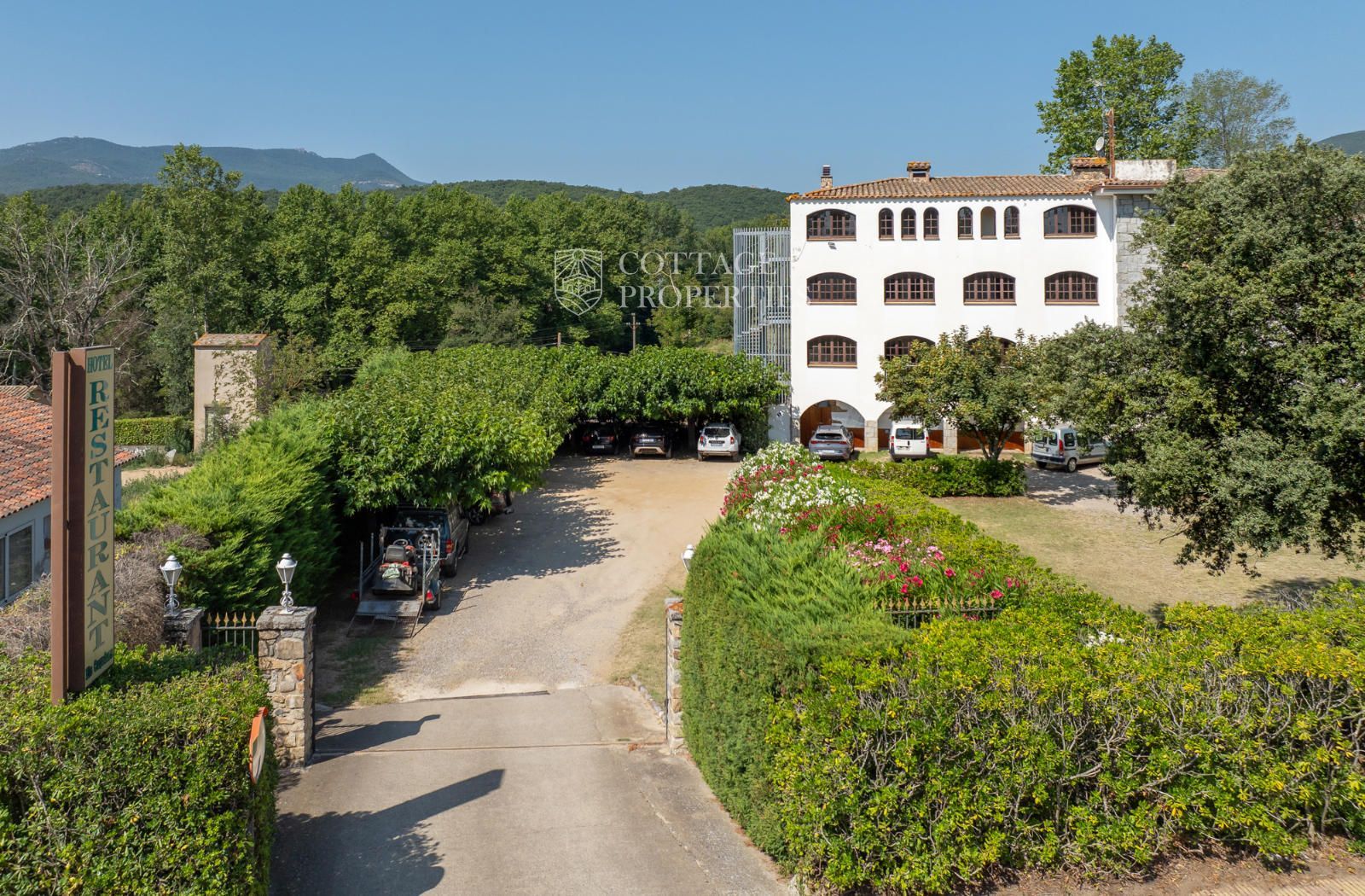 Estratègicament ubicat a només 30 km de Figueres, aquest hotel va ser originalment construït l'any 1960 i ocupa una extensa parcel·la de 2 hectàrees, que inclou jardins i una piscina exterior. La propietat compta amb una superfície construïda de 1.200 metres quadrats, distribuïts en 3 plantes.
