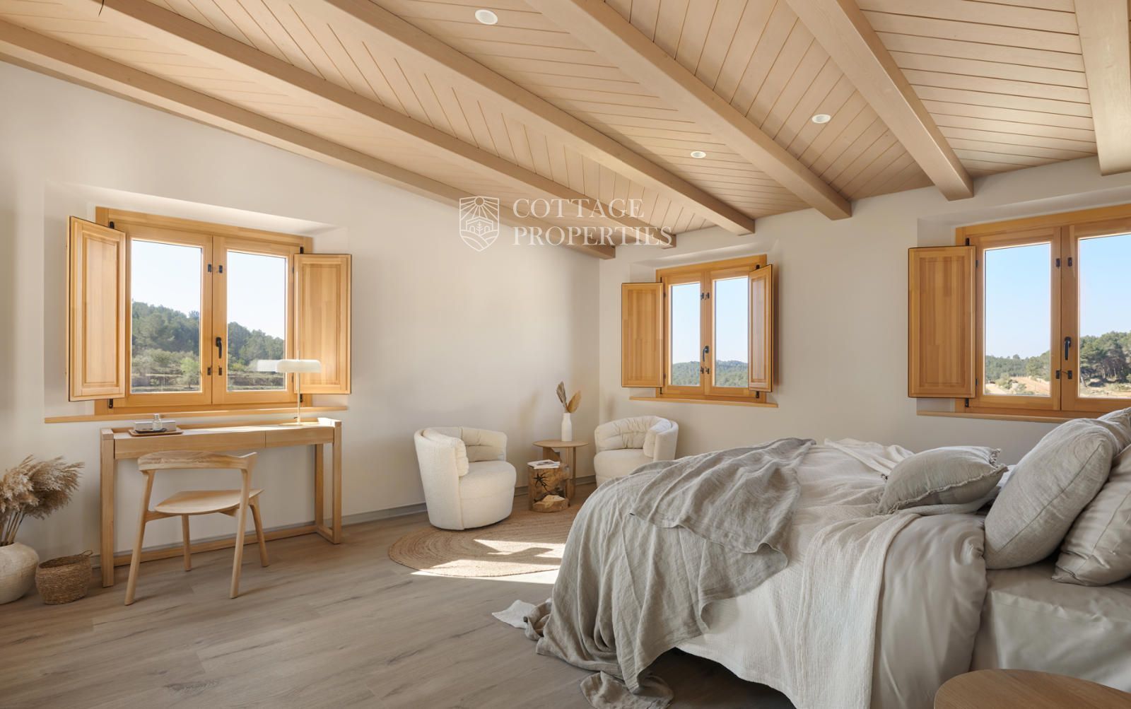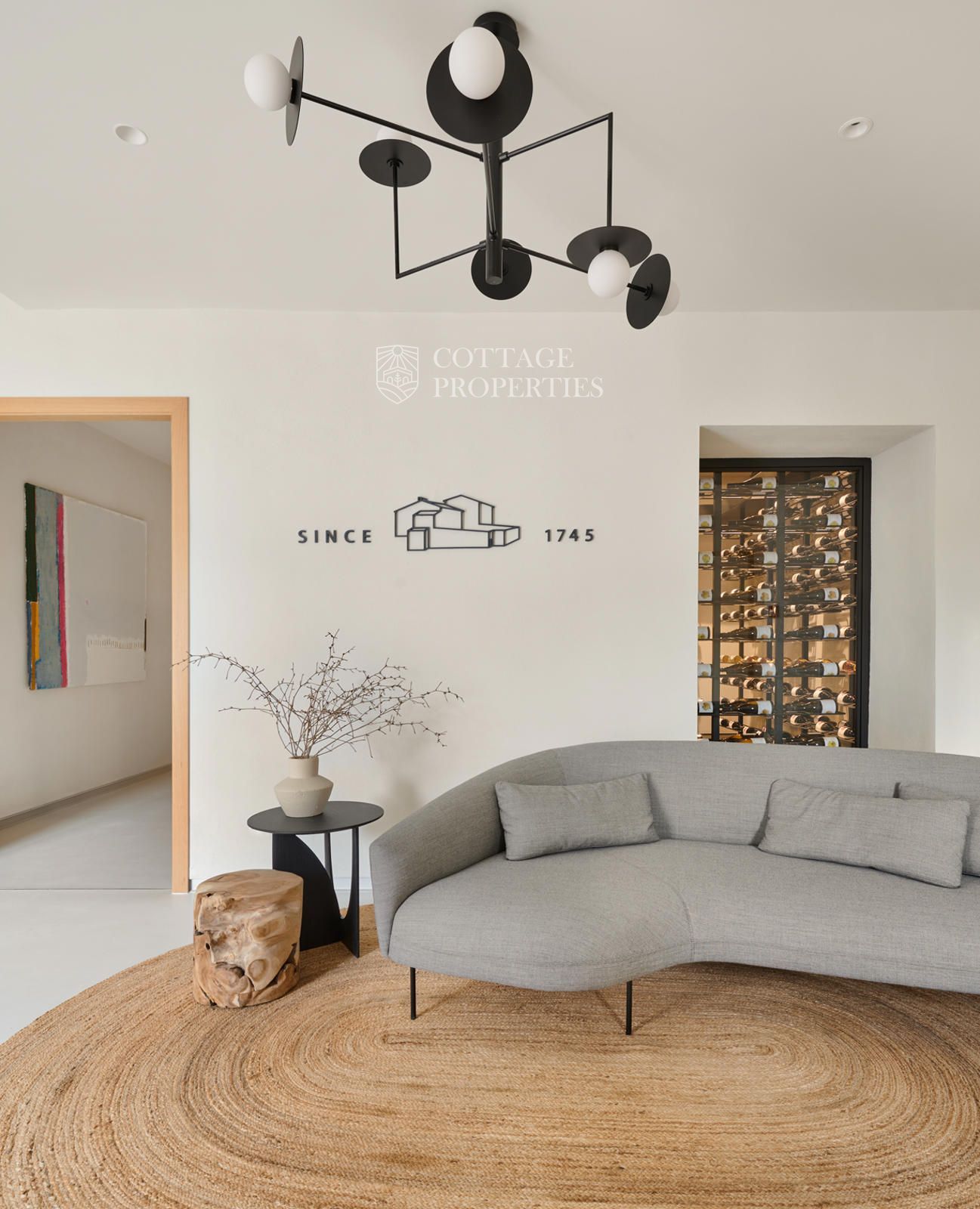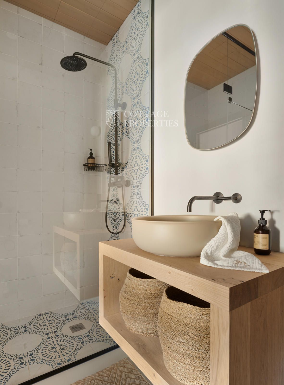 La propietat compta amb 7 suites dobles, 18 banys, ascensor, cuina industrial totalment equipada, un amfiteatre de 300 m² per a esdeveniments i garatge cobert. A la planta principal hi ha les zones comunes, incloent-hi un ampli saló-menjador amb accés directe a la terrassa principal i la zona de piscina, dissenyada amb cura per acollir celebracions a l'aire lliure. Cada espai ha estat pensat per oferir confort, elegància i funcionalitat.