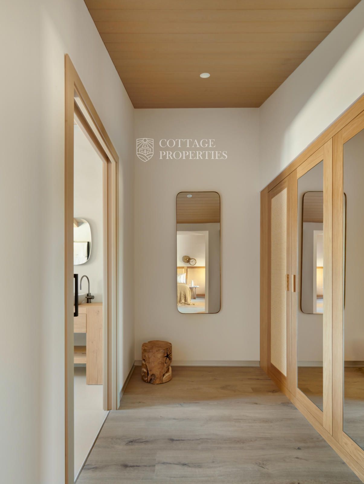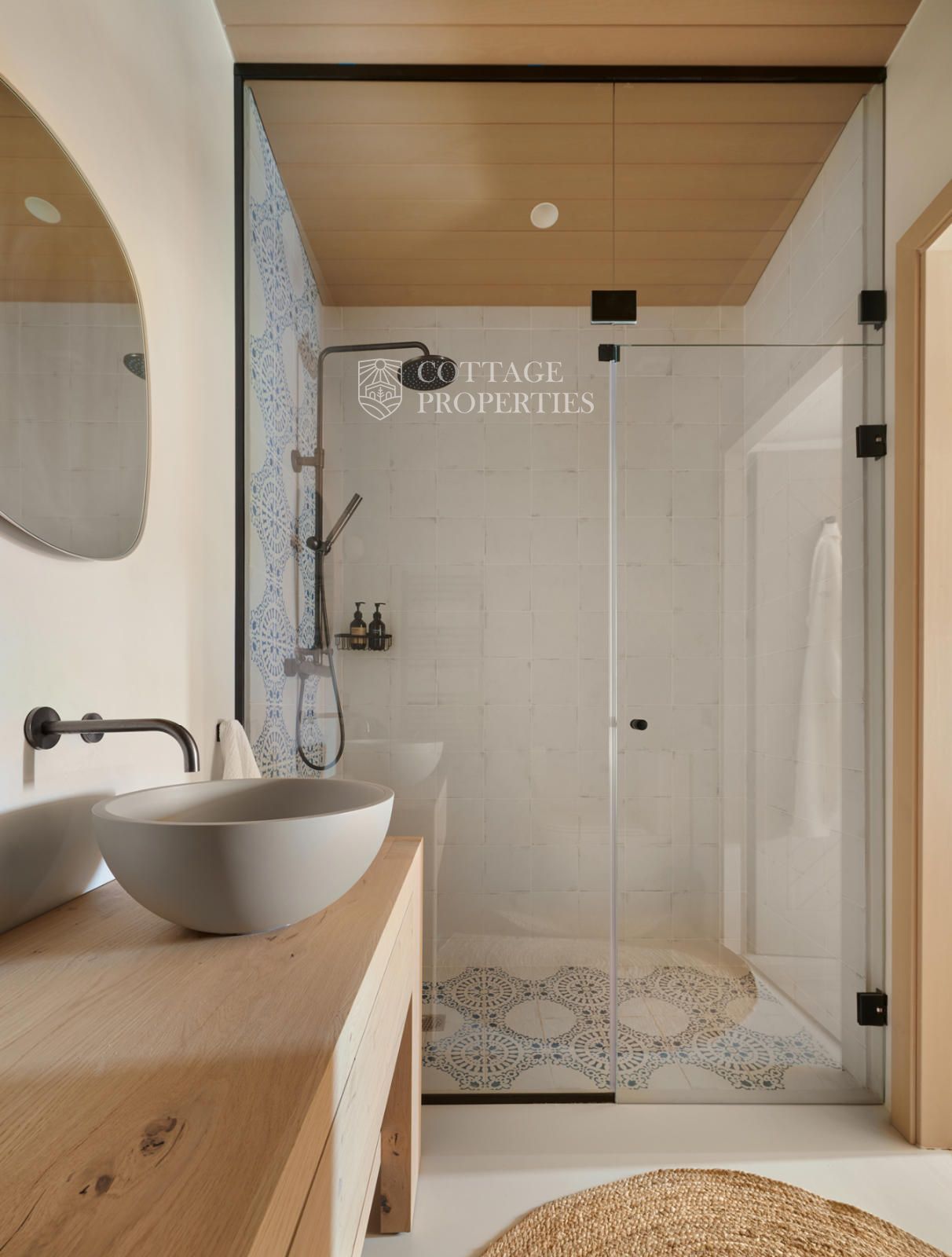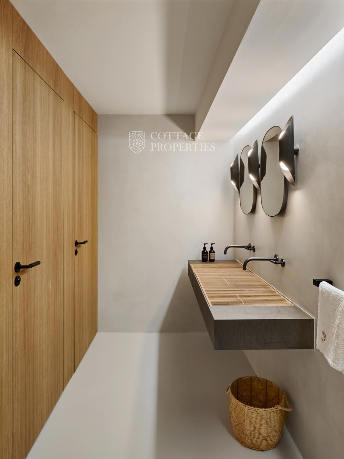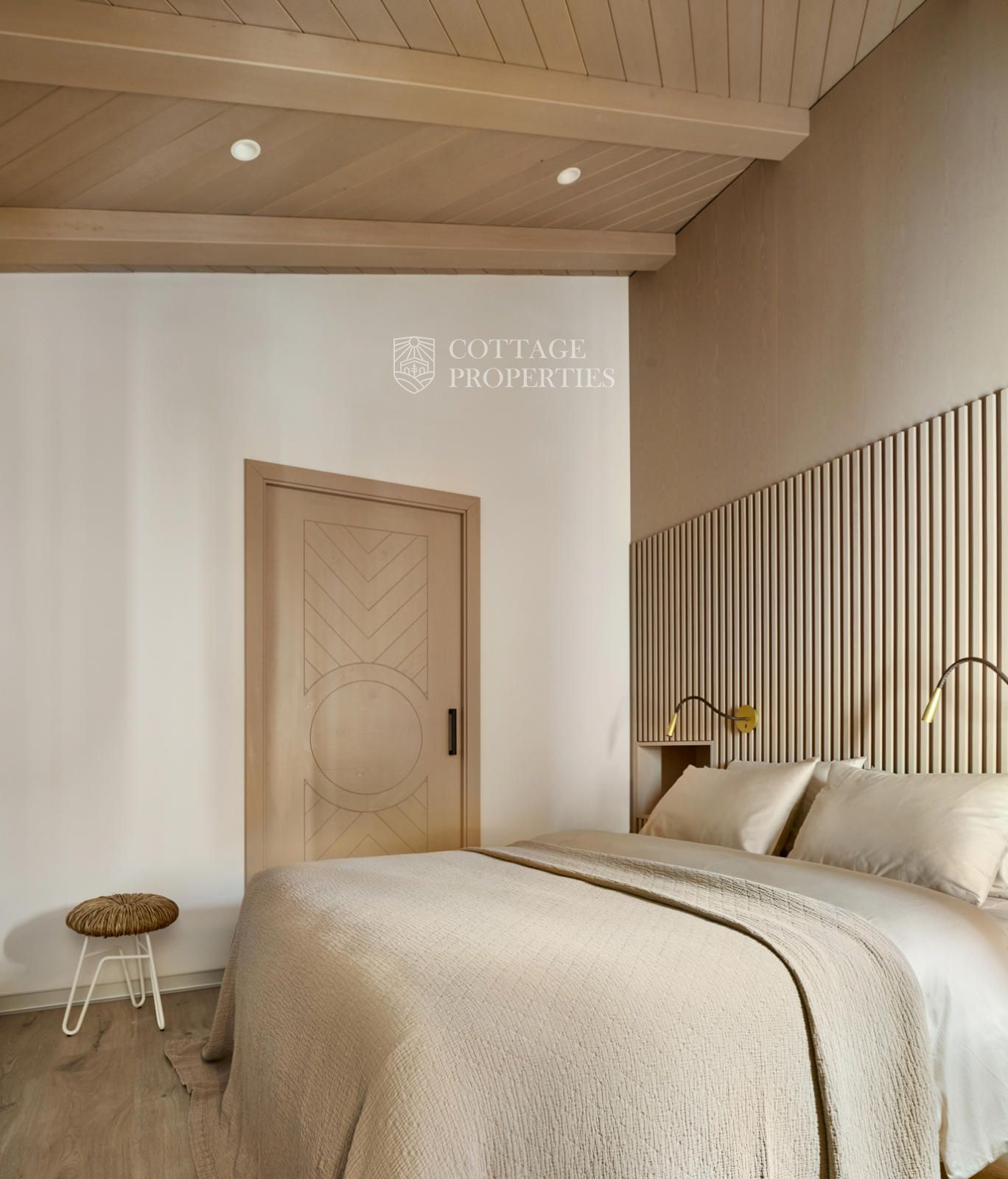 La propietat compta amb 7 suites dobles, 18 banys, ascensor, cuina industrial totalment equipada, un amfiteatre de 300 m² per a esdeveniments i garatge cobert. A la planta principal hi ha les zones comunes, incloent-hi un ampli saló-menjador amb accés directe a la terrassa principal i la zona de piscina, dissenyada amb cura per acollir celebracions a l'aire lliure. Cada espai ha estat pensat per oferir confort, elegància i funcionalitat.