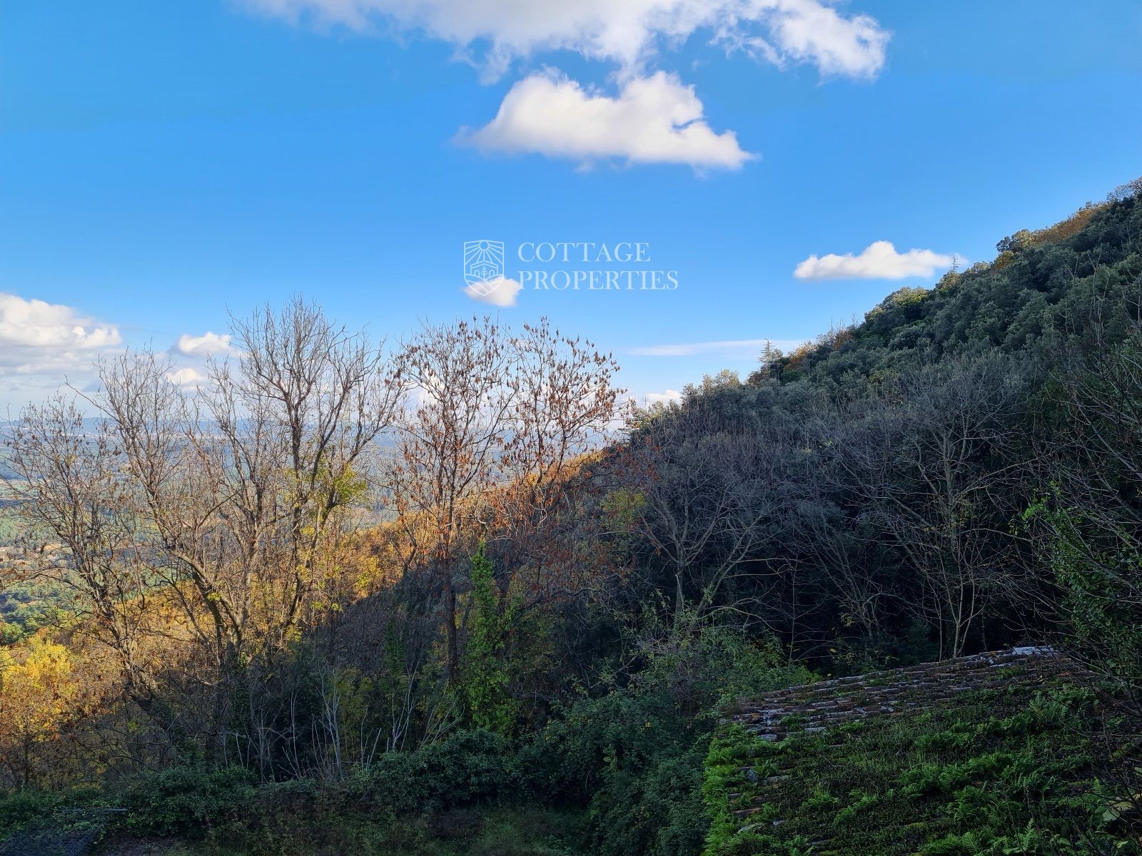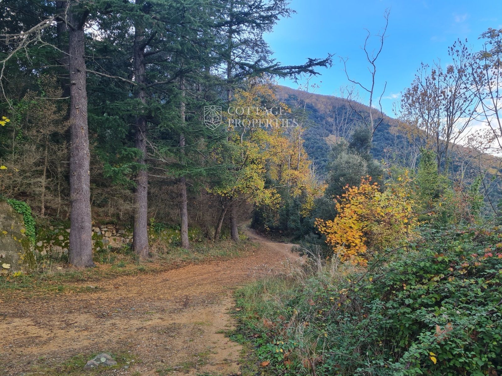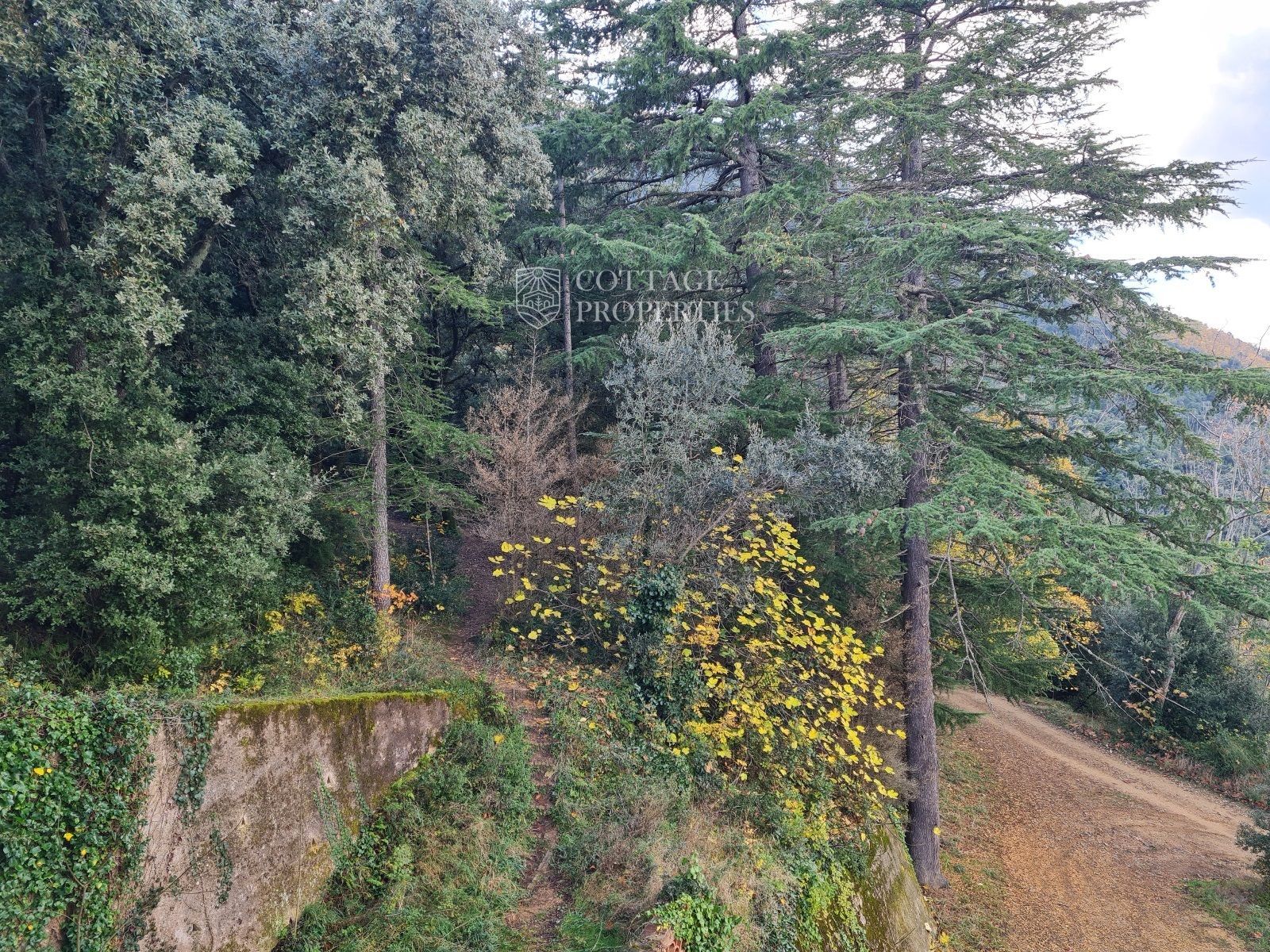 La masia es troba en un terreny de 50 hectàrees, predominantment boscós i amb àrees de cultiu, oferint 1050 metres quadrats de construcció per a renovar segons el projecte desitjat.