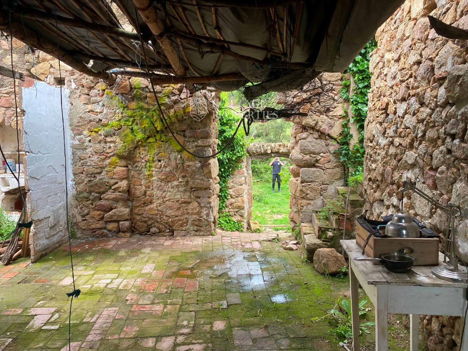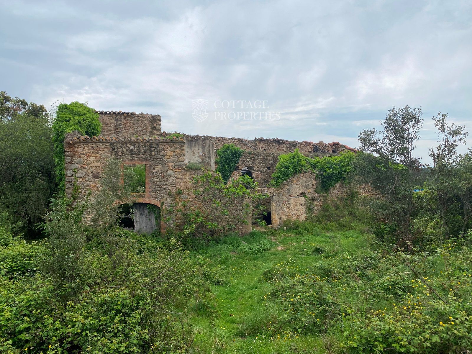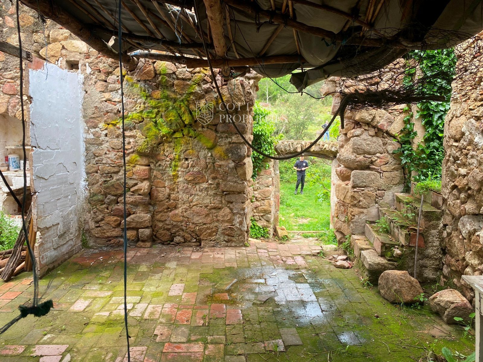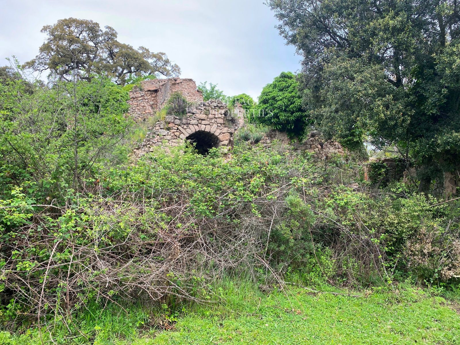 La ruïna es troba en un terreny d'aproximadament 160 hectàrees, predominantment amb boscos d'alzines sureres, camps cultivables i un ambient natural idíl·lic. La masia compta amb una planta baixa de 130 m² i una planta addicional de 300 m² a rehabilitar, oferint àmplies possibilitats per renovar segons el projecte desitjat.