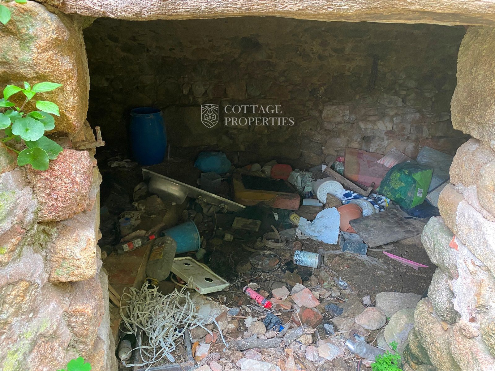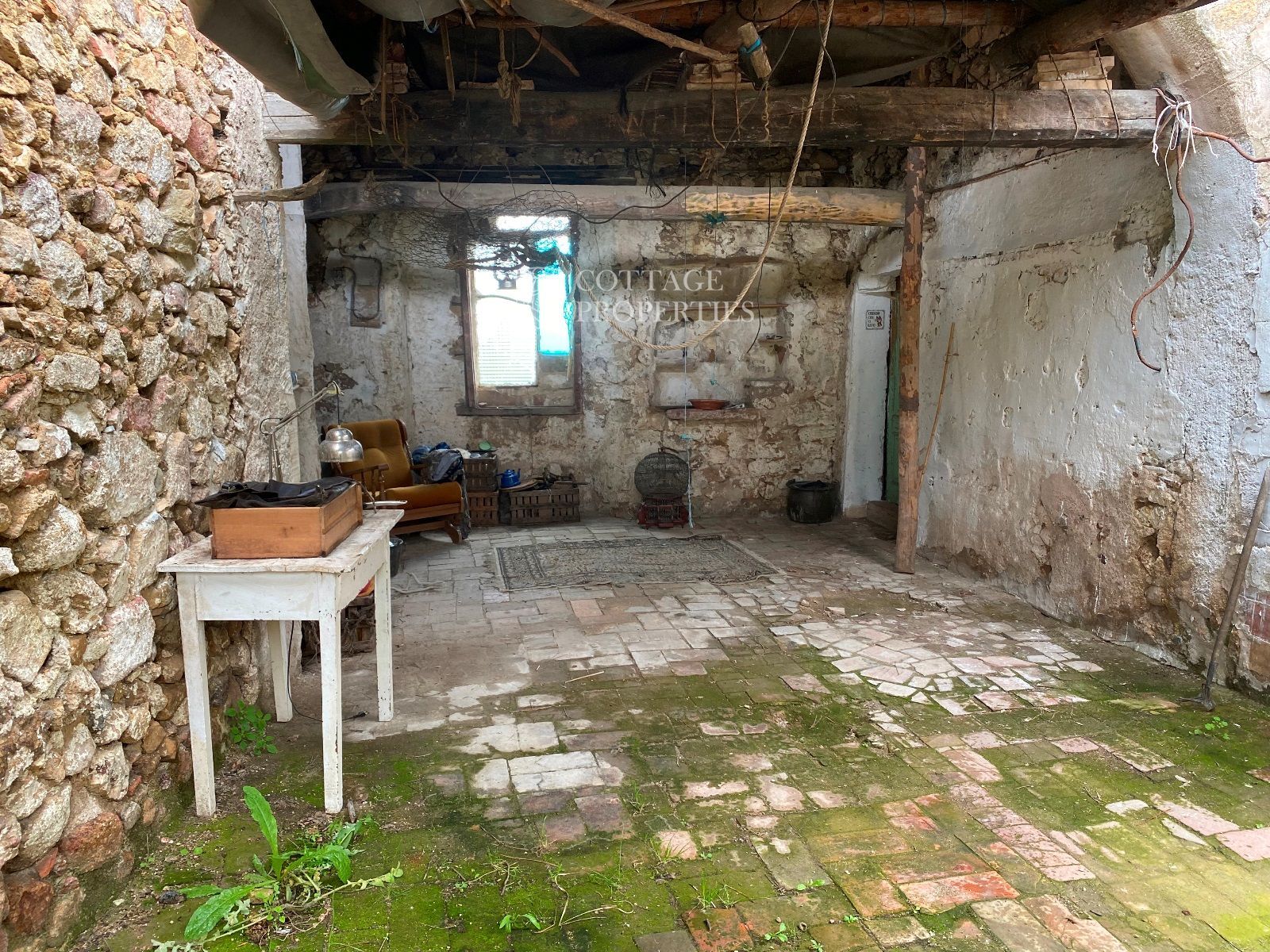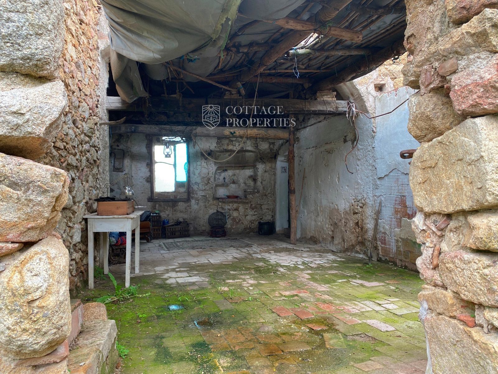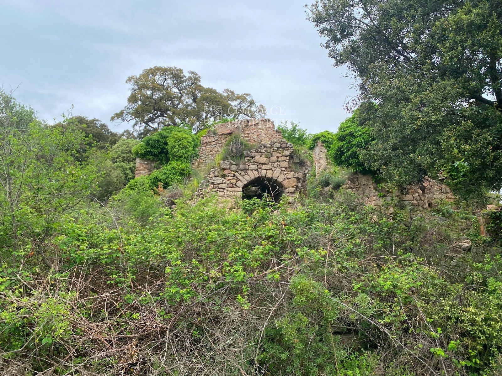 La ruïna es troba en un terreny d'aproximadament 160 hectàrees, predominantment amb boscos d'alzines sureres, camps cultivables i un ambient natural idíl·lic. La masia compta amb una planta baixa de 130 m² i una planta addicional de 300 m² a rehabilitar, oferint àmplies possibilitats per renovar segons el projecte desitjat.