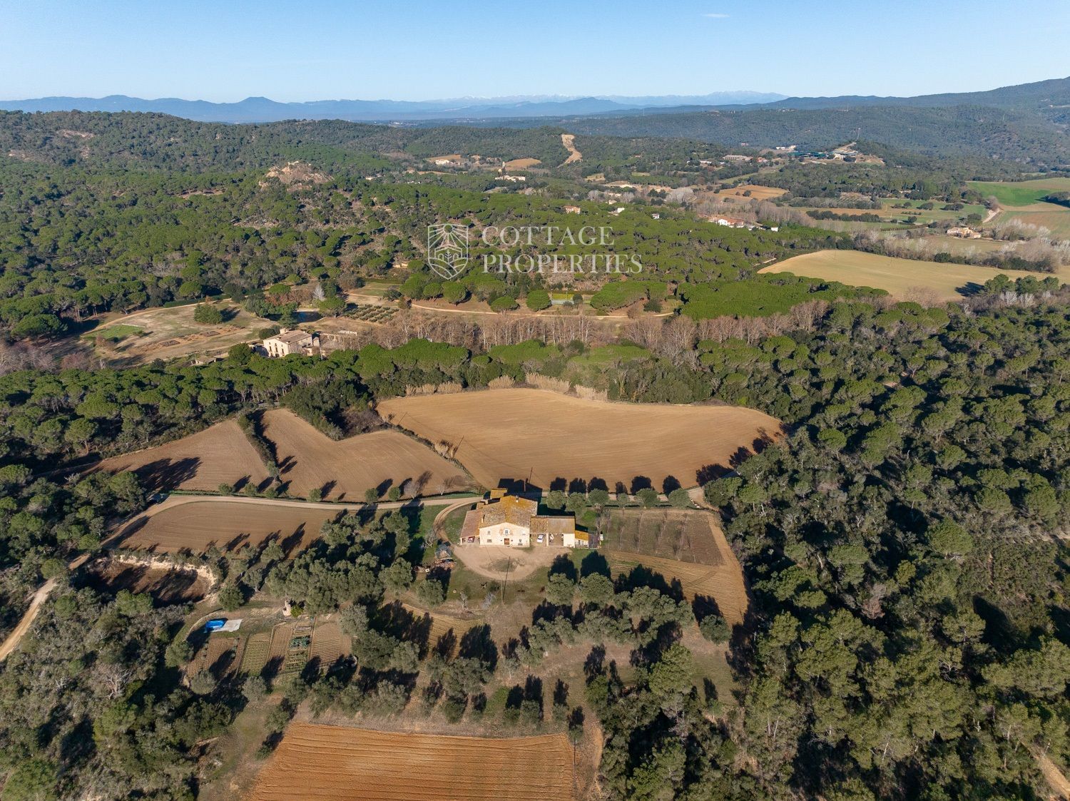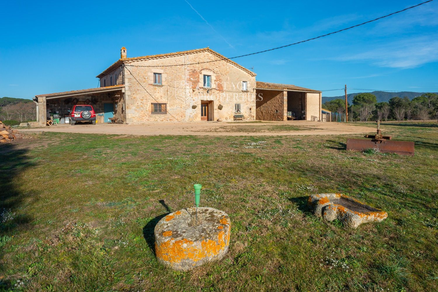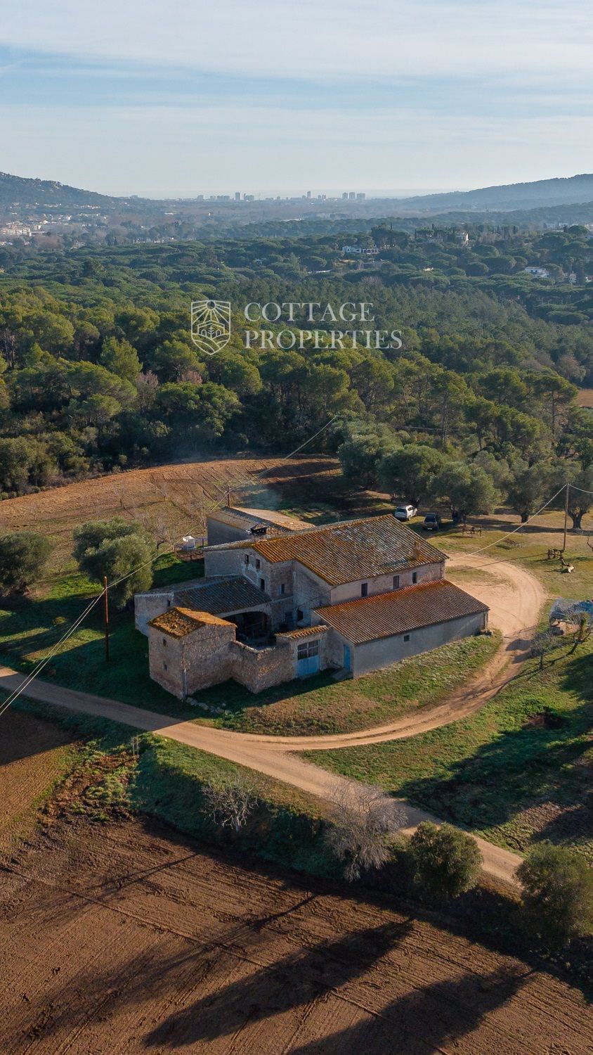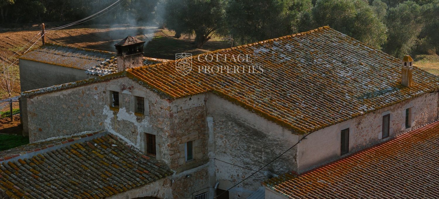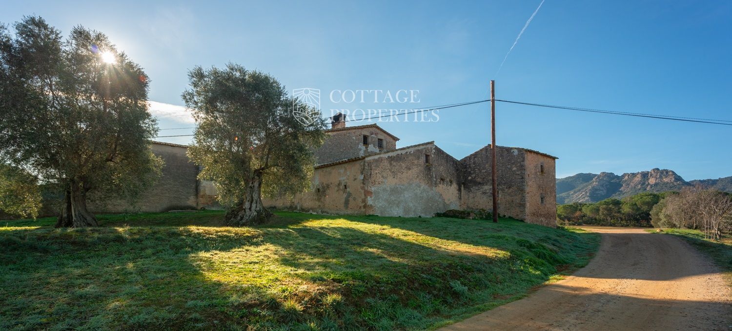 Situada a només uns minuts del Club de Golf Costa Brava, aquesta finca va ser rehabilitada recentment i abasta una parcel·la de més de 60 hectàrees, predominantment natural i amb diverses característiques. La casa principal té una superfície construïda de 800 m², dels quals 400 m² són espais habitables, distribuïts en dues plantes.
