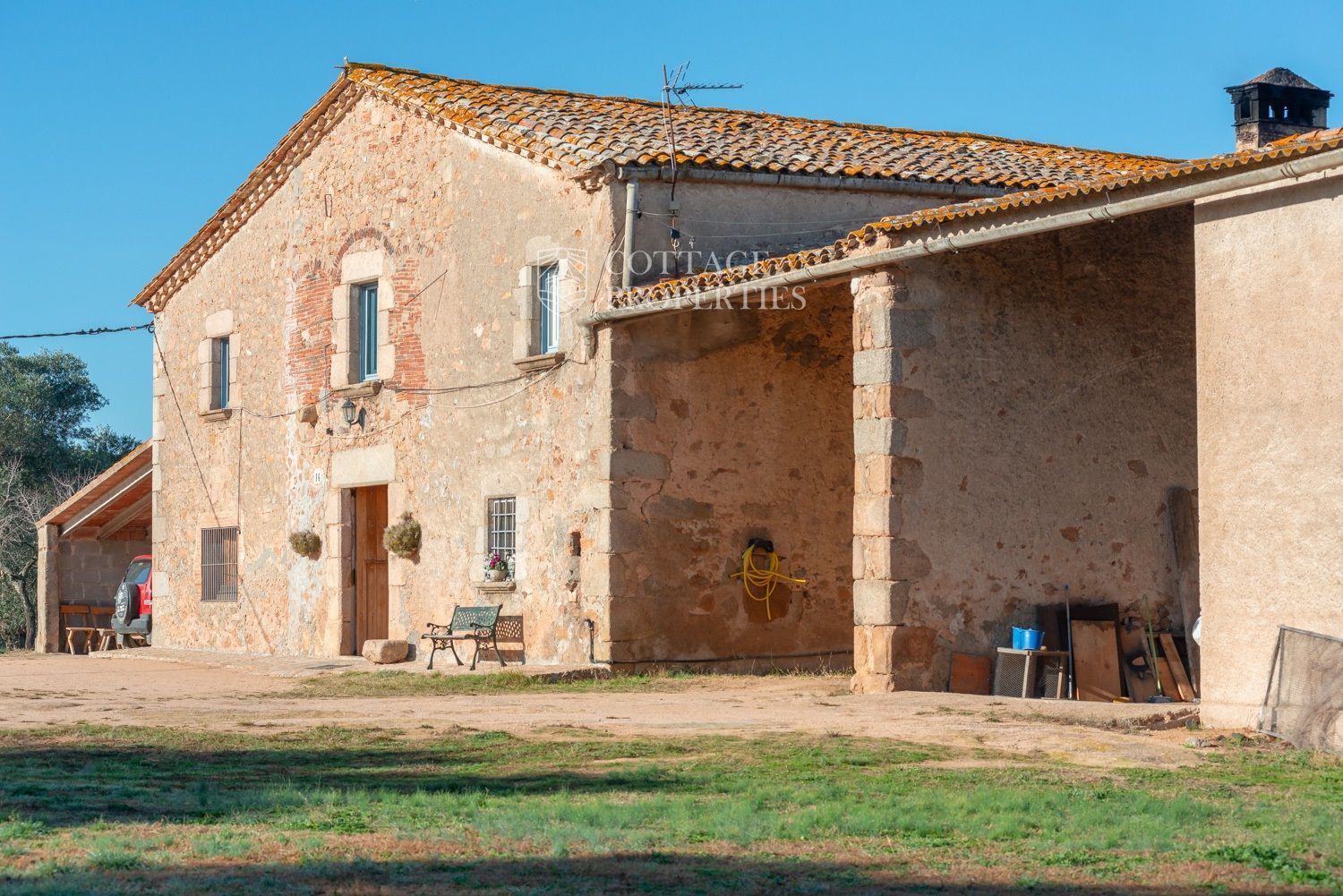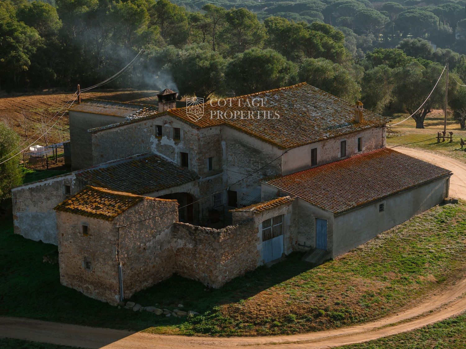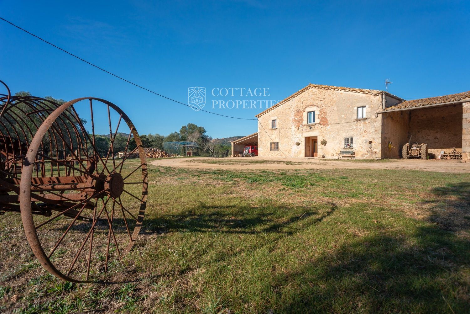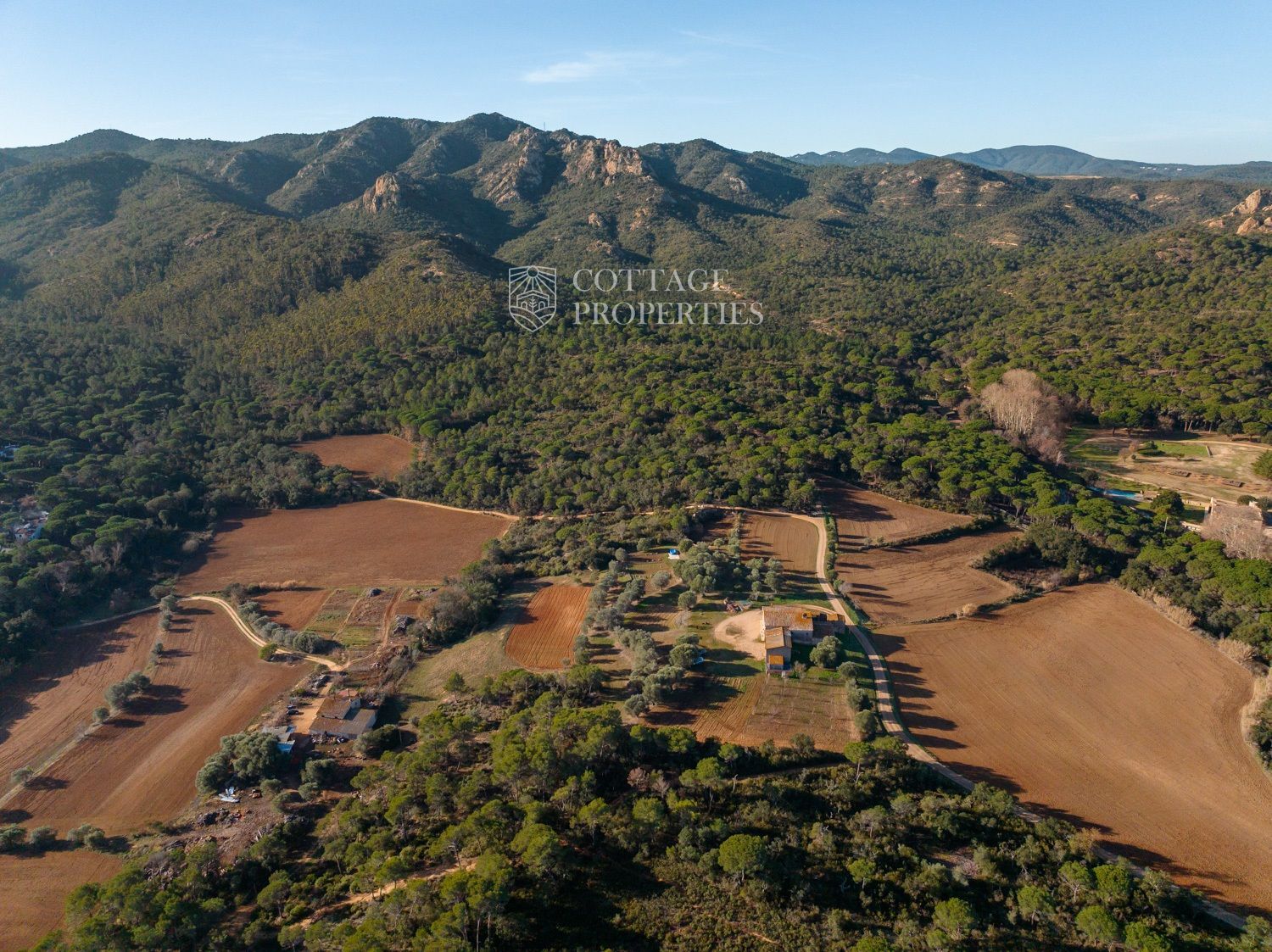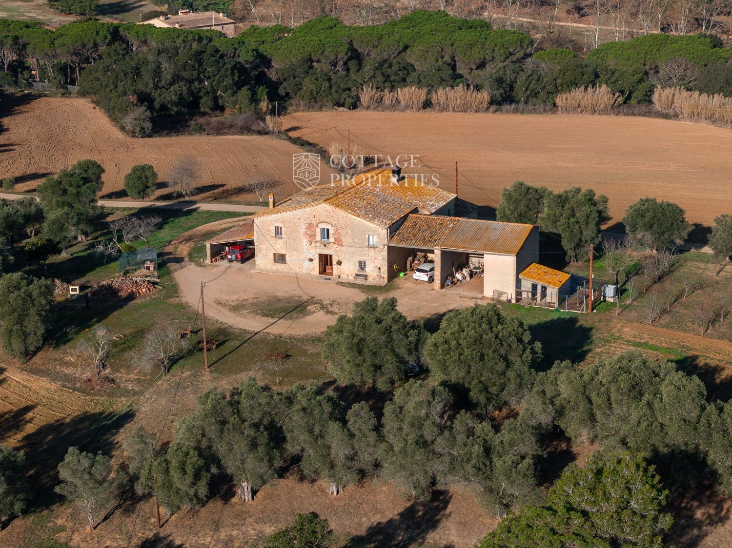 Situada a només uns minuts del Club de Golf Costa Brava, aquesta finca va ser rehabilitada recentment i abasta una parcel·la de més de 60 hectàrees, predominantment natural i amb diverses característiques. La casa principal té una superfície construïda de 800 m², dels quals 400 m² són espais habitables, distribuïts en dues plantes.