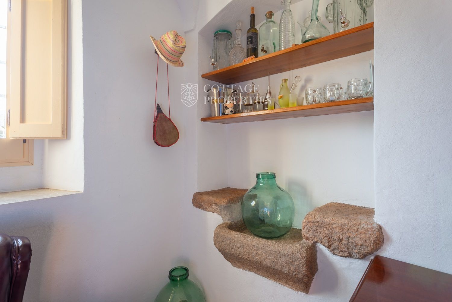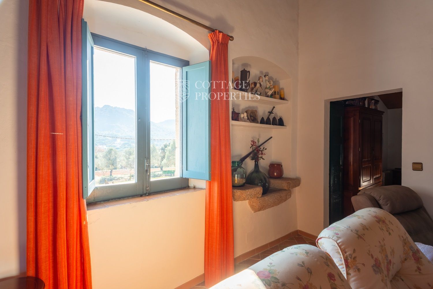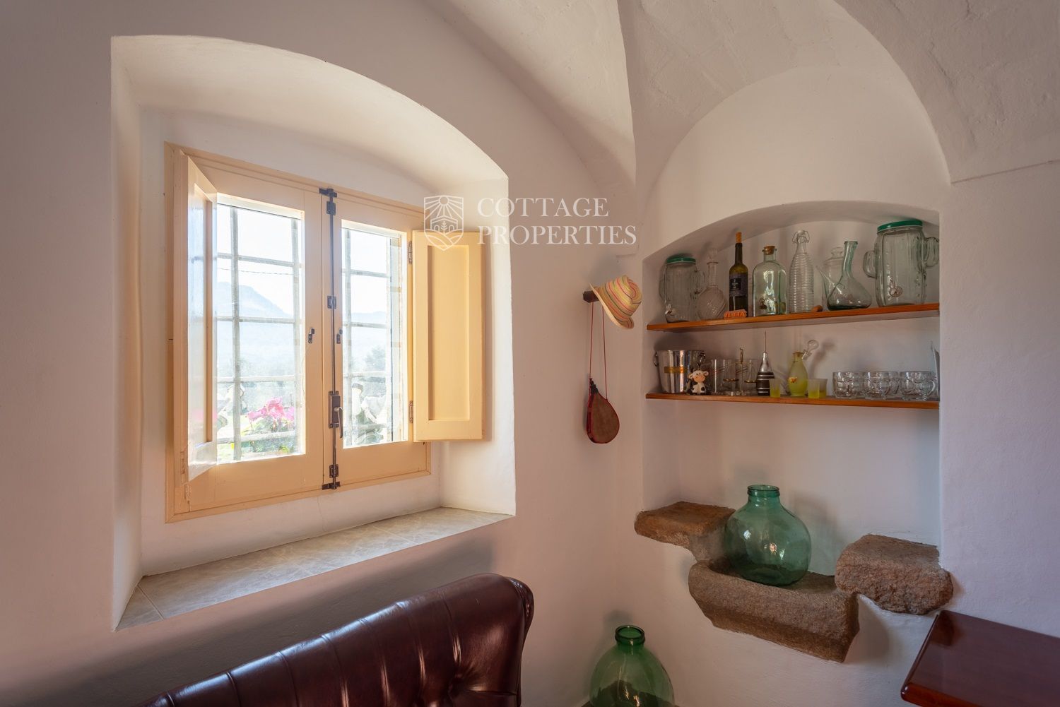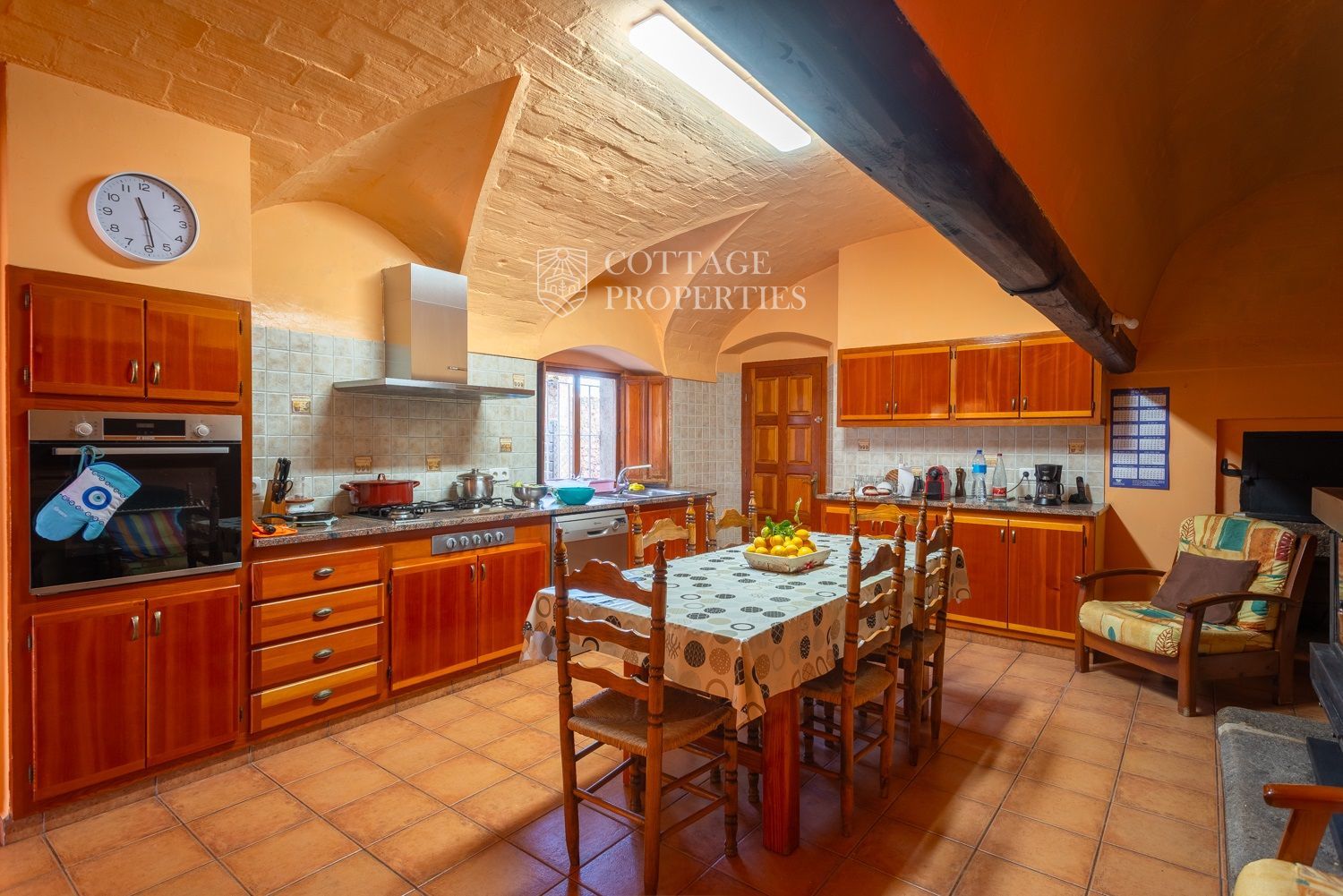 La casa compta amb una gran entrada a la planta baixa, un acollidor saló amb xemeneia, un menjador espaiós, un bany complet amb dutxa i una àmplia cuina amb xemeneia. Des de la cuina, s'accedeix a un pati posterior amb barbacoa i cuina de llenya, que ofereix opcions culinàries a l'aire lliure. A més, aquesta planta compta amb altres estances versàtils que podrien adaptar-se com a habitacions addicionals. A la planta superior es troba un gran saló amb sostres de bigues originals, set habitacions dobles, un bany complet i un lavabo, així com un altell amb potencial addicional. La propietat també disposa de diversos porxos oberts que podrien utilitzar-se com a garatge, dos pous d'aigua, xemeneies i elements originals que afegeixen caràcter.