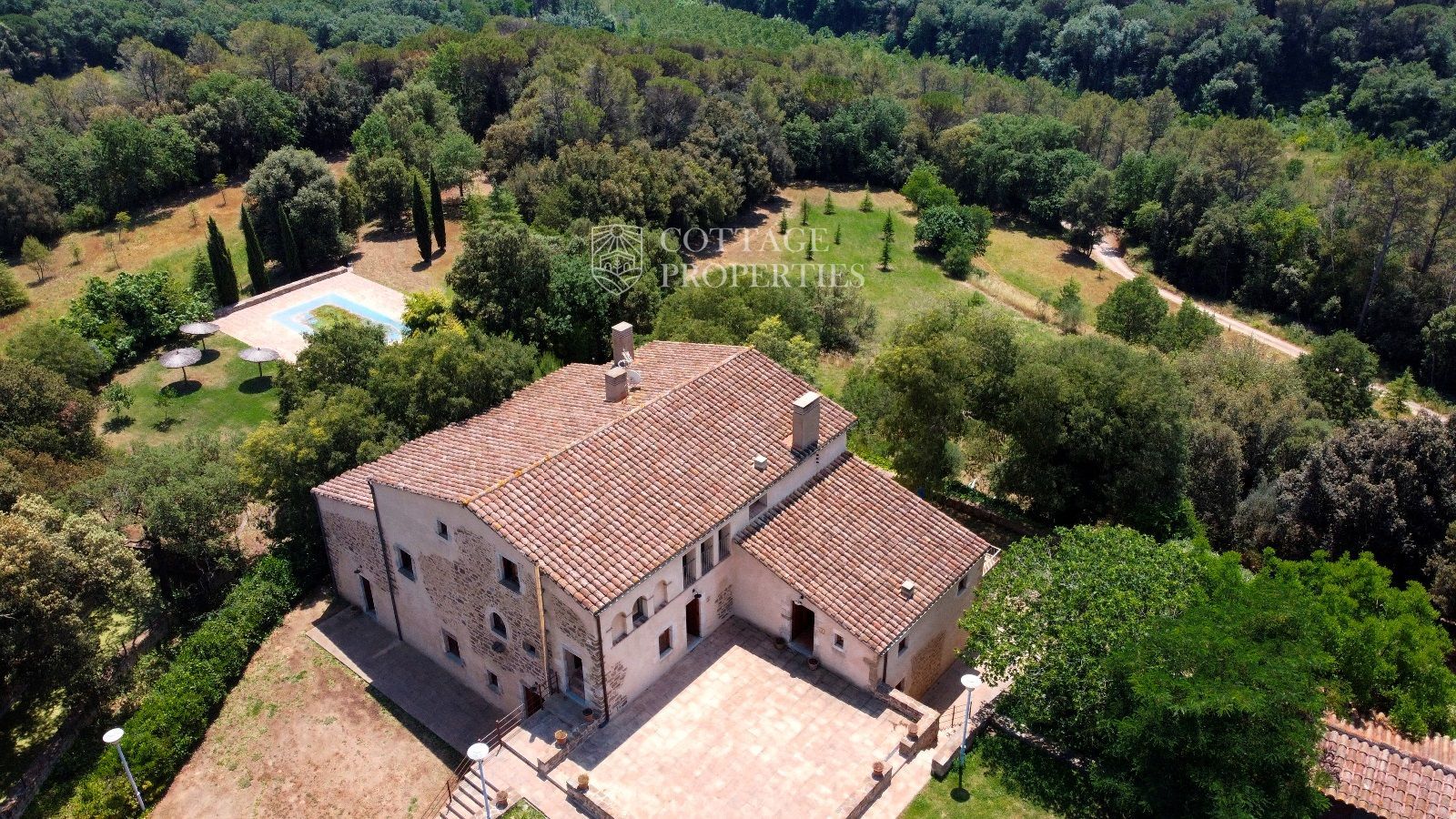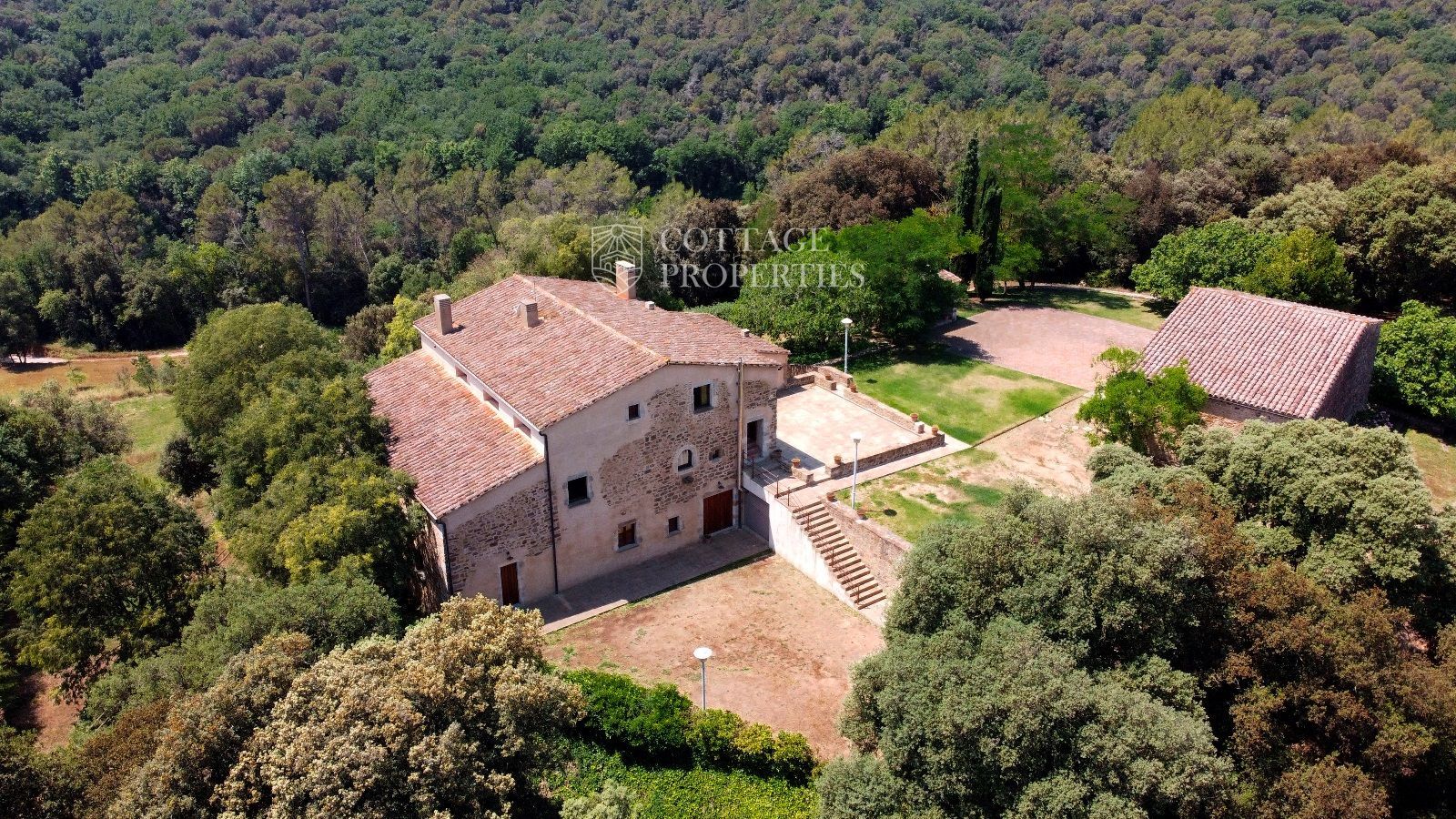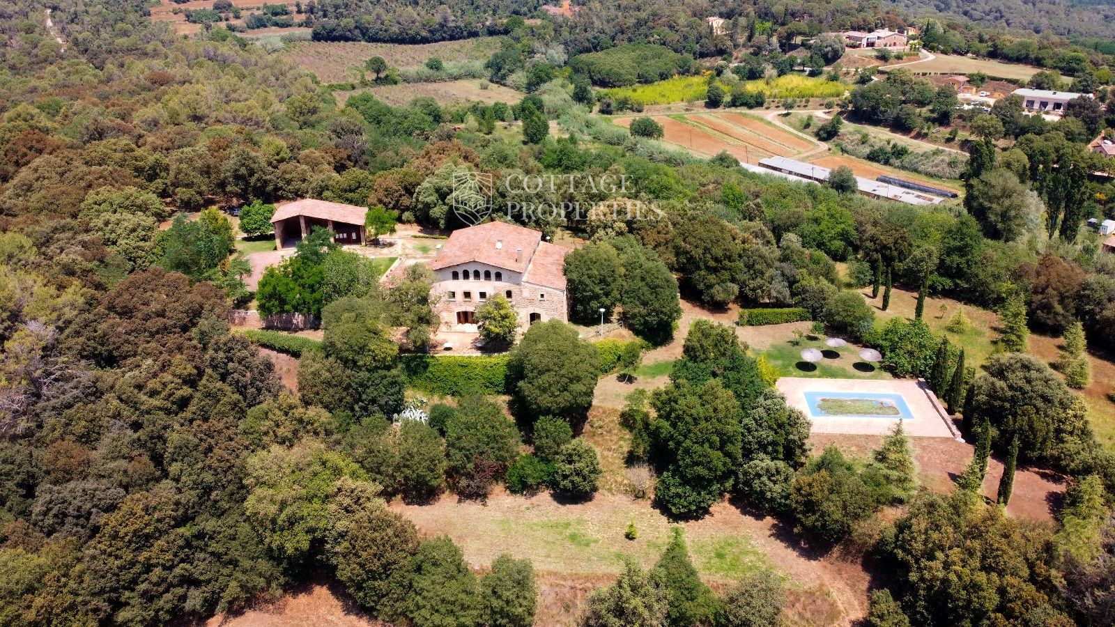 Ubicada estratègicament al municipi de Sant Gregori, aquesta finca s'estén sobre 153.000 m², incloent boscos, camps i un bonic jardí amb piscina. La propietat està convenientment situada a prop de l'autopista AP7, a 35 km de la Costa Brava, 18 km de l'aeroport de Girona i a només 100 km de Barcelona. També es troba a 17 km del PGA Catalunya Golf and Wellness. La masia principal de 600 m² ha estat totalment restaurada i es divideix en quatre apartaments independents.