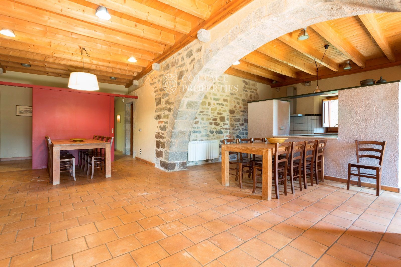 La Masia Principal: Amb 600 m², es divideix en quatre apartaments independents, cadascun amb el seu propi encant rústic i modern. La posició elevada de la masia assegura sol tot el dia i magnífiques vistes a l'entorn.