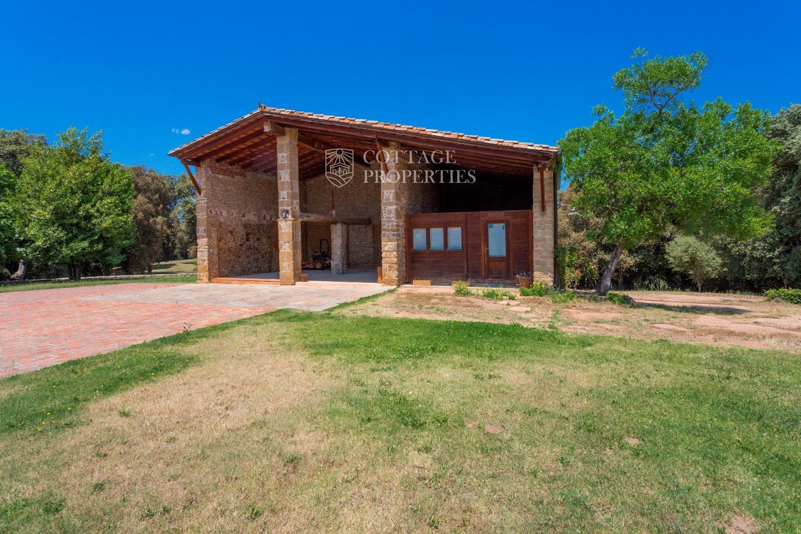 Espais Exteriors: La finca compta amb un jardí ben cuidat, una piscina, terrasses i un porxo que alberga una oficina ideal per treballar en un entorn serè. L'entorn natural inclou boscos i camps, oferint un oasi de pau i privacitat.