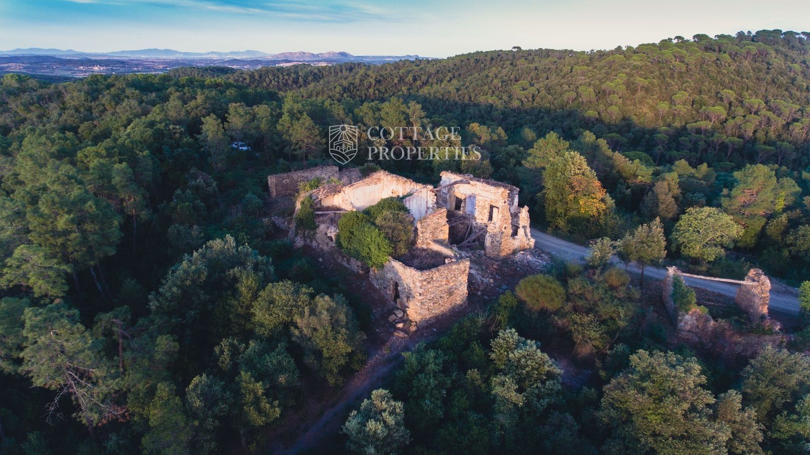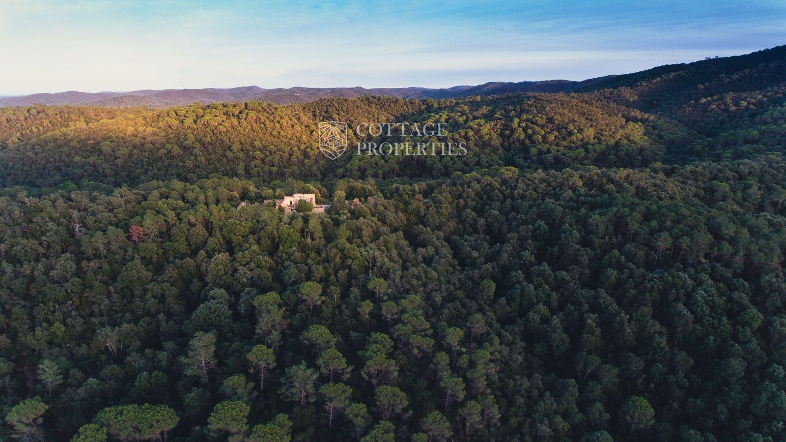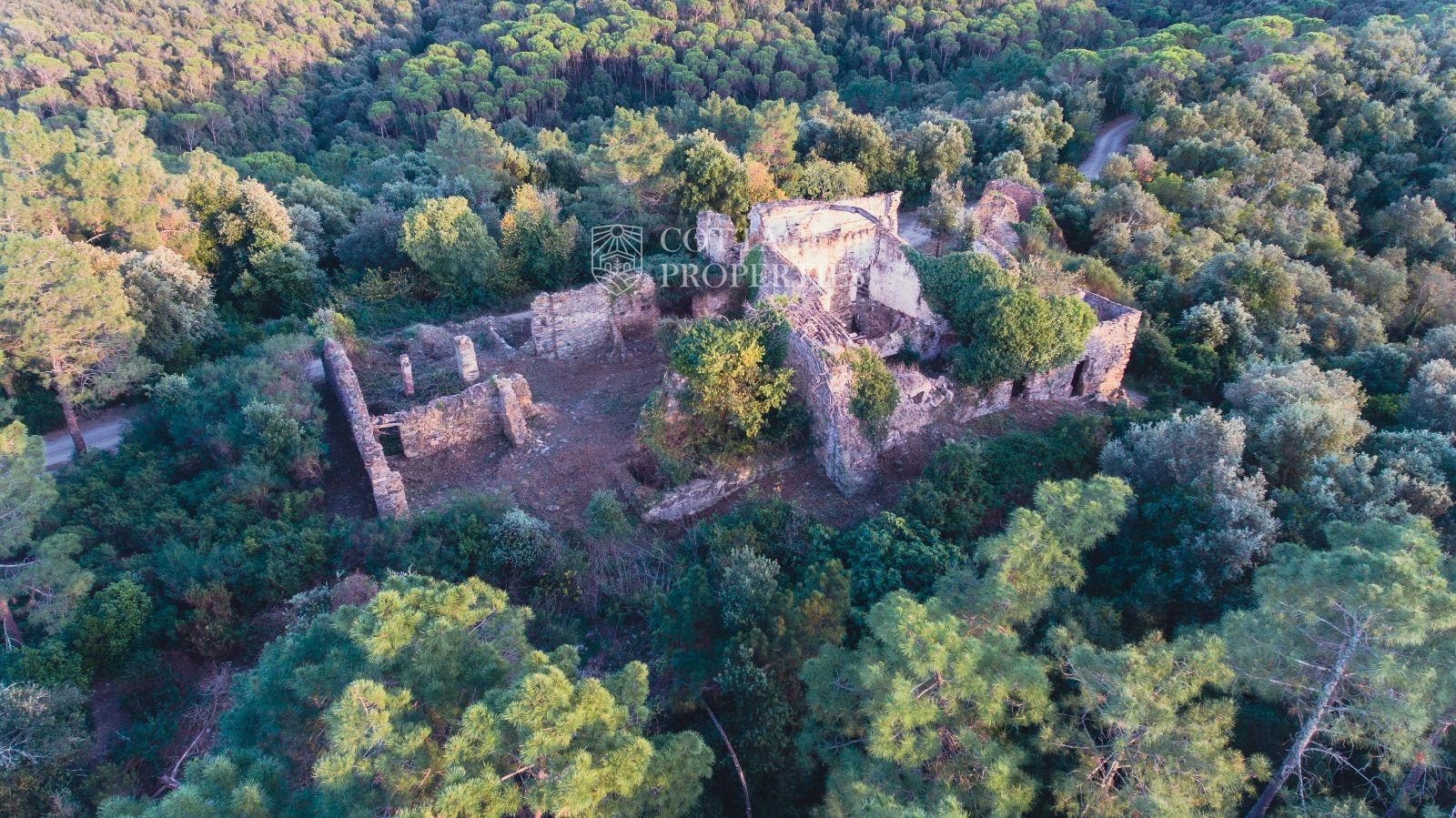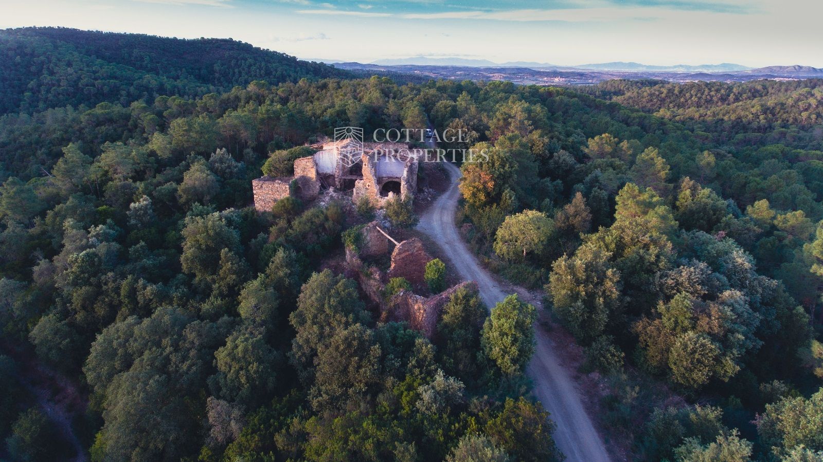 La propietat es troba a 2 km per un camí forestal des de la carretera asfaltada, a 8 km de La Bisbal d'Empordà i a 10 km de les millors platges i camps de golf de la província de Girona. La ubicació en una colina proporciona unes vistes panoràmiques excepcionals, tant al mar com a les muntanyes circumdants.