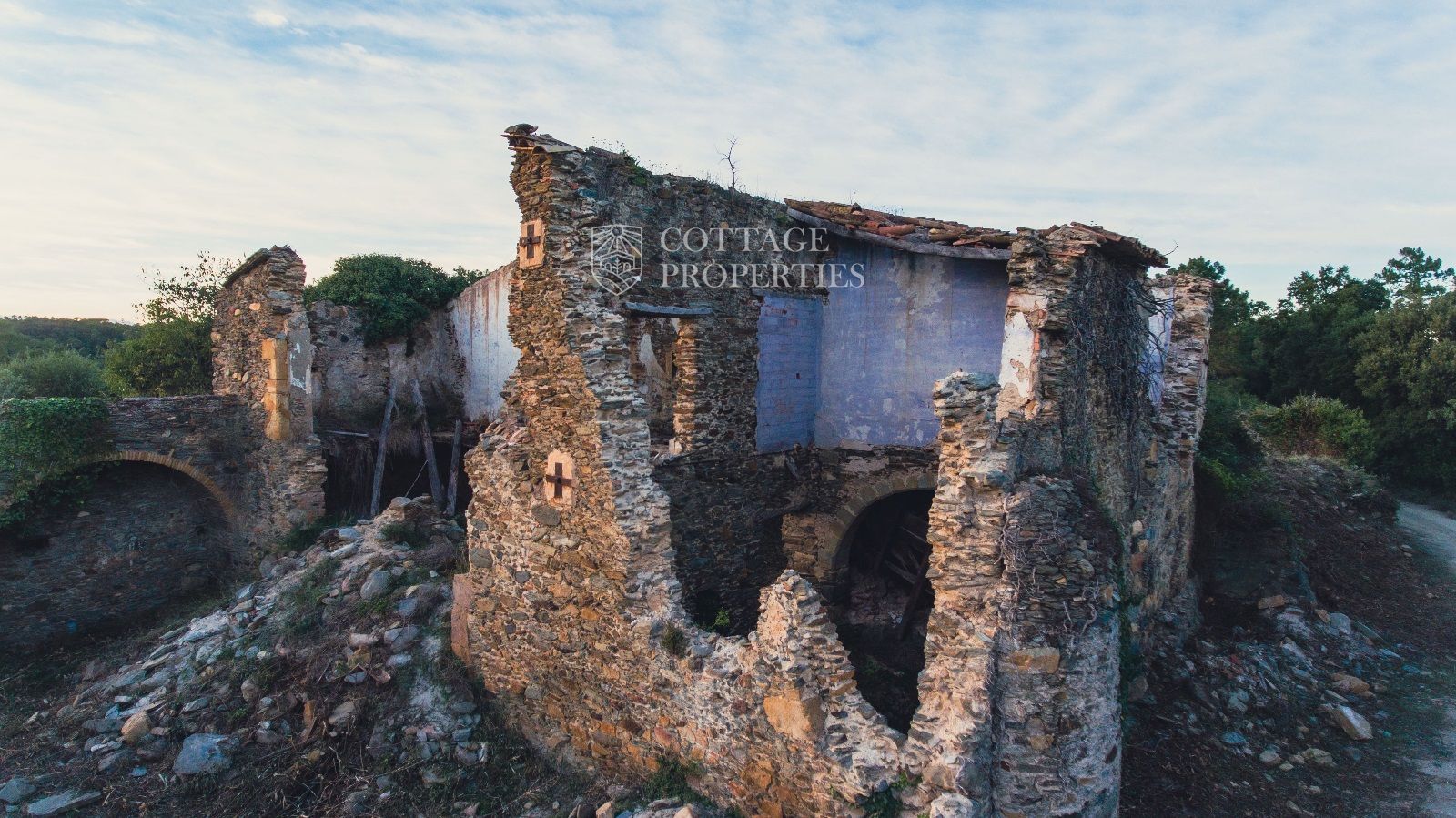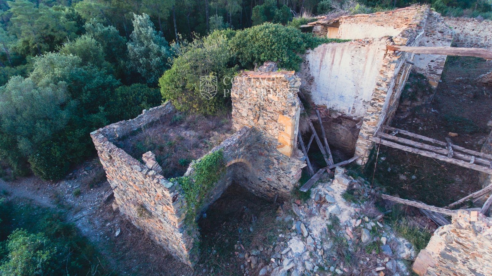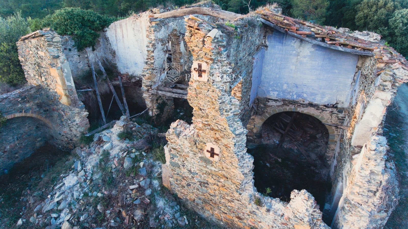 Us presentem aquesta fascinant masia del segle XVI situada a les afores de Crüïlles, un dels pobles medievals més bonics del Baix Empordà. Aquesta propietat ofereix una oportunitat única per restaurar un immoble històric en un entorn idíl·lic, amb espectaculars vistes al mar i les muntanyes des de la seva ubicació en una colina. Amb un entorn natural impressionant i un terreny de 25 hectàrees de bosc, aquesta masia és ideal per a aquells que busquen un projecte de rehabilitació amb gran potencial.
