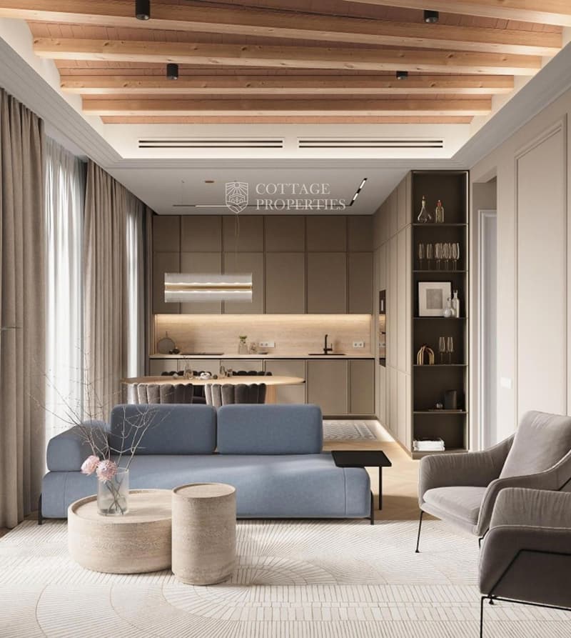 Distribució: Saló-menjador ampli amb cuina oberta, molt lluminós i amb accés a balcons exteriors. 3 habitacions, incloent: Suite principal amb vestidor i zona d'escriptori, ideal per al teletreball. Dos dormitoris addicionals, amb armaris encastats i gran entrada de llum natural. 2 banys complets, acabats en porcellànic i amb dutxes àmplies de disseny modern.