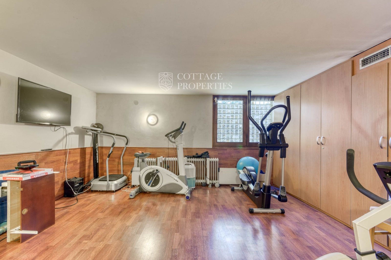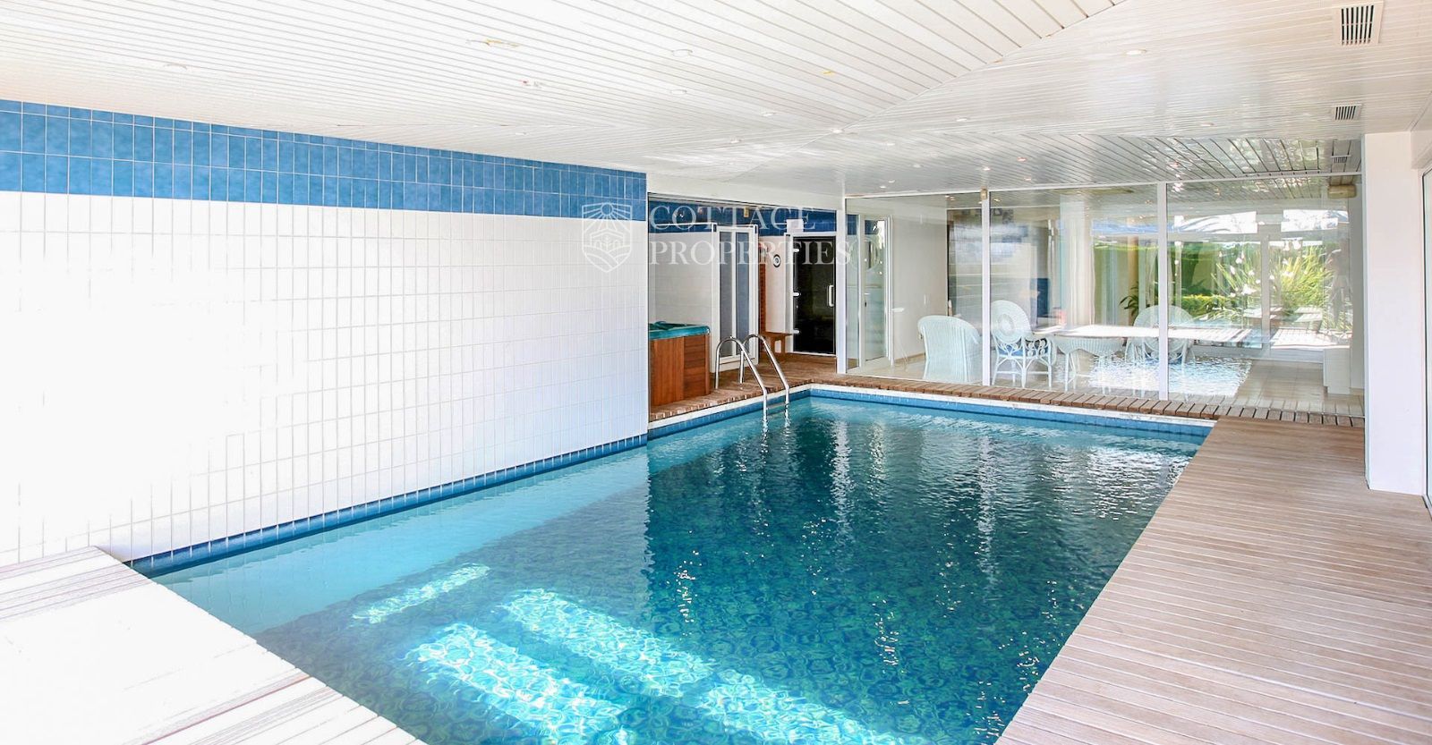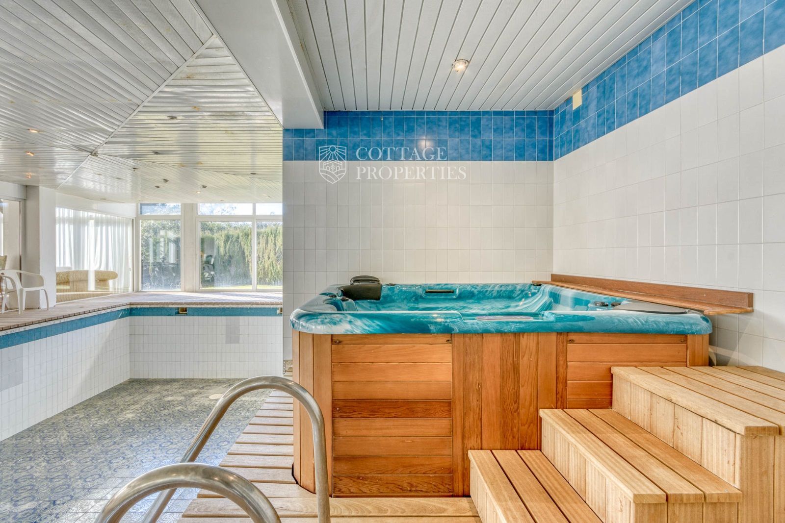 Accesible directament des del jardí, aquesta planta alberga una àmplia zona d'oci amb piscina coberta climatitzada, sauna, jacuzzi i un menjador amb finestrals de terra a sostre. També es troba una cuina auxiliar o d'estiu. La planta inferior inclou 3 habitacions en suite, una habitació polivalent que es fa servir com a gimnàs, i una zona de servei amb celler, bugaderia, quart de maletes, quart de màquines, traster, dos lavabos i un dormitori en suite per al personal de servei. El garatge per a dos cotxes també està ubicat en aquesta planta.