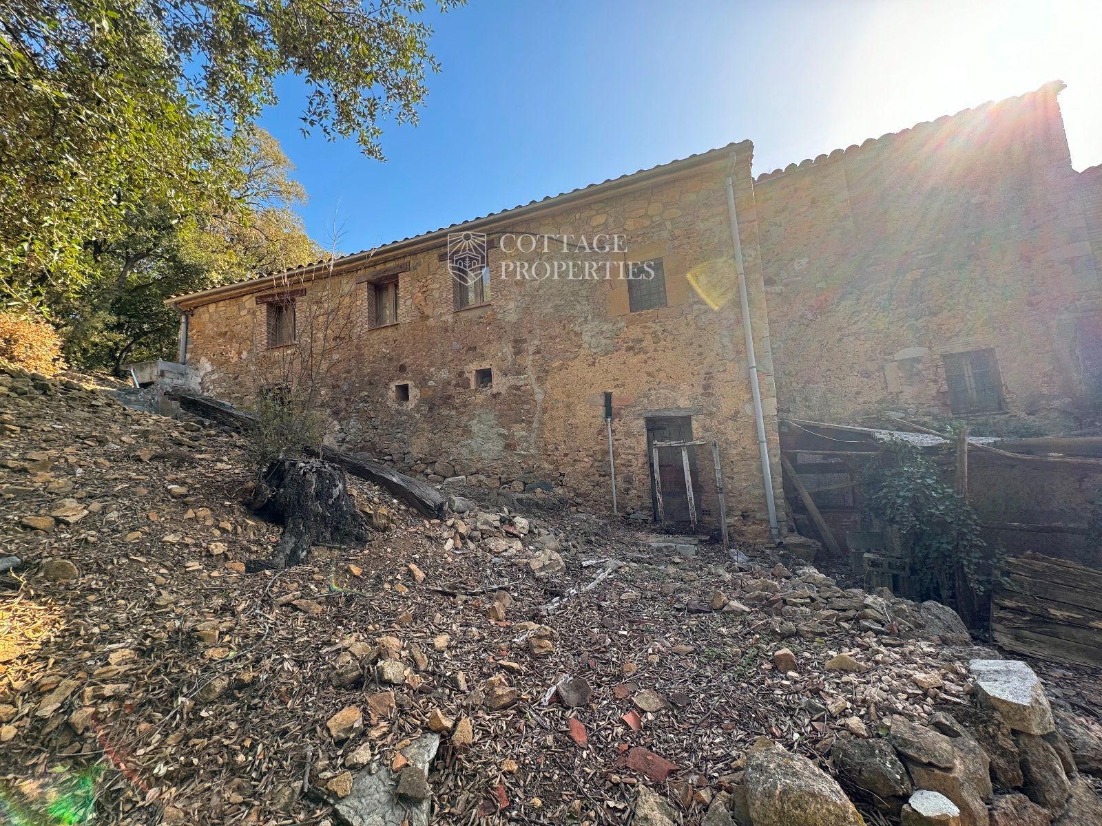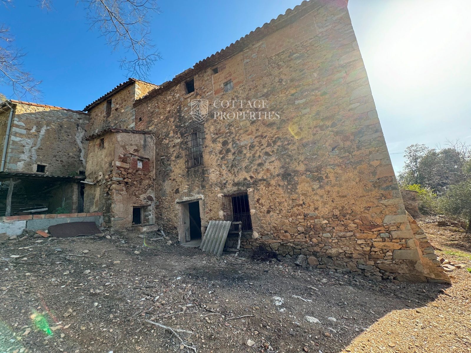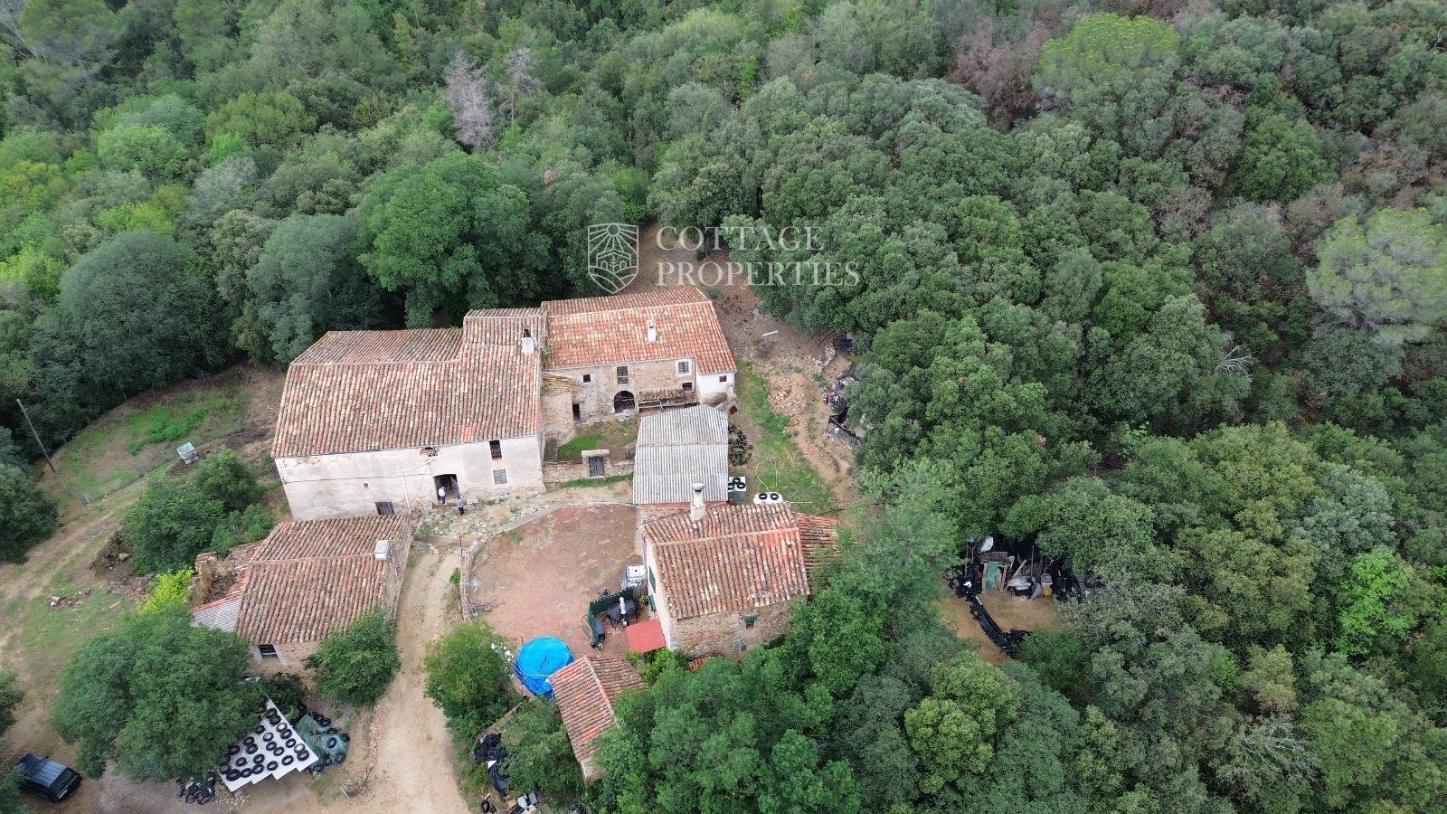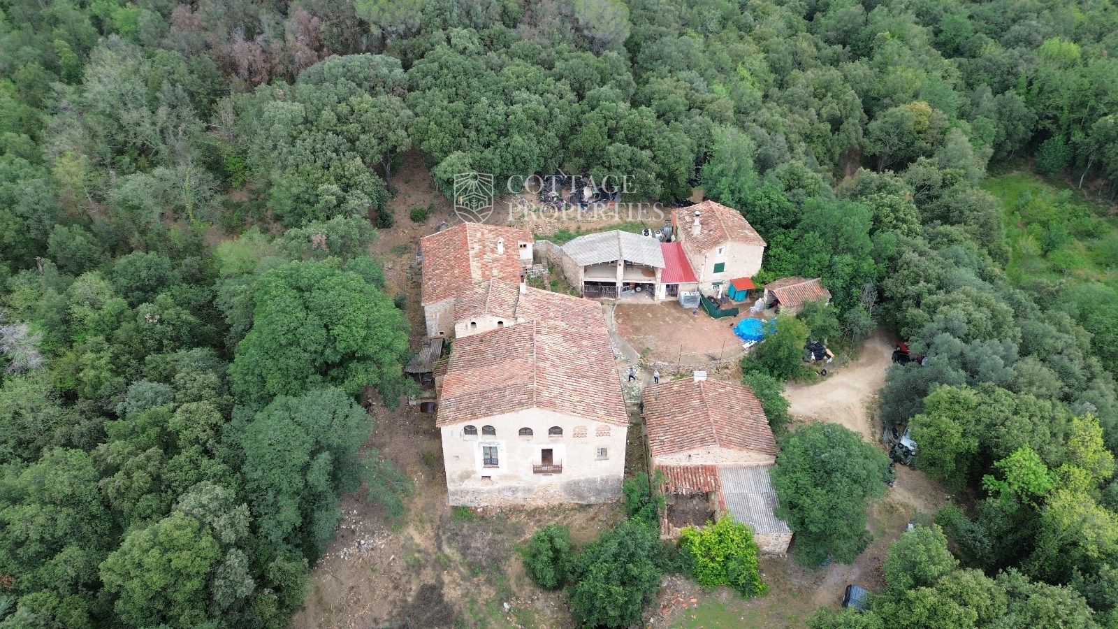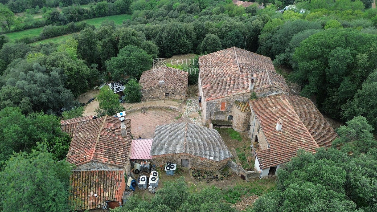 Detalls generals: La finca inclou diversos edificis, entre ells la masia principal, dues granges i una masoveria. La propietat es troba en una excel·lent ubicació, oferint privacitat i tranquil·litat, alhora que està convenientment a prop de les comunicacions de Girona.