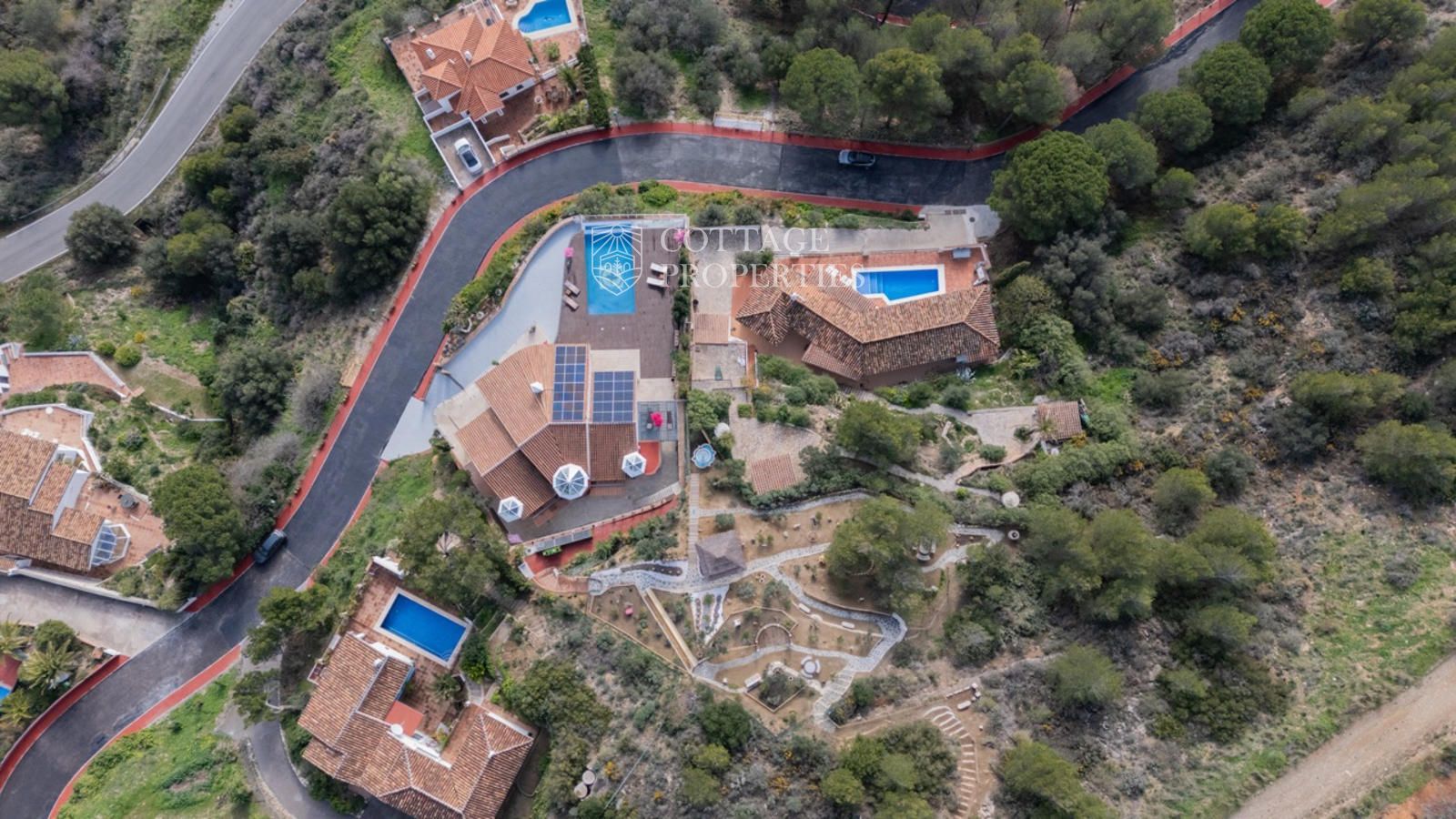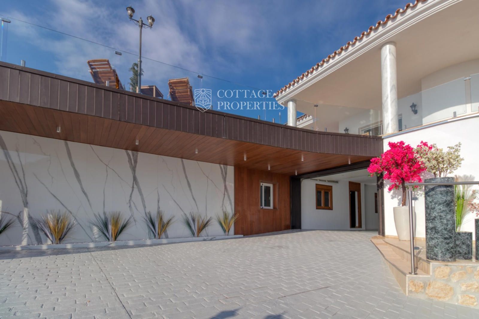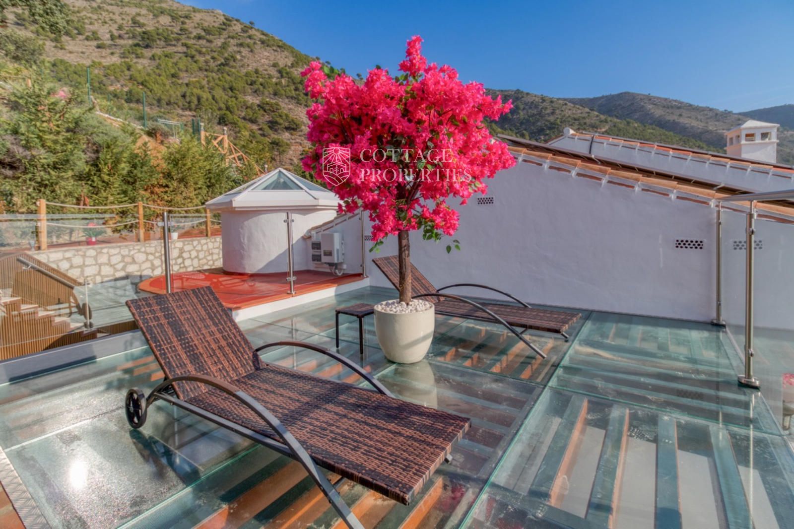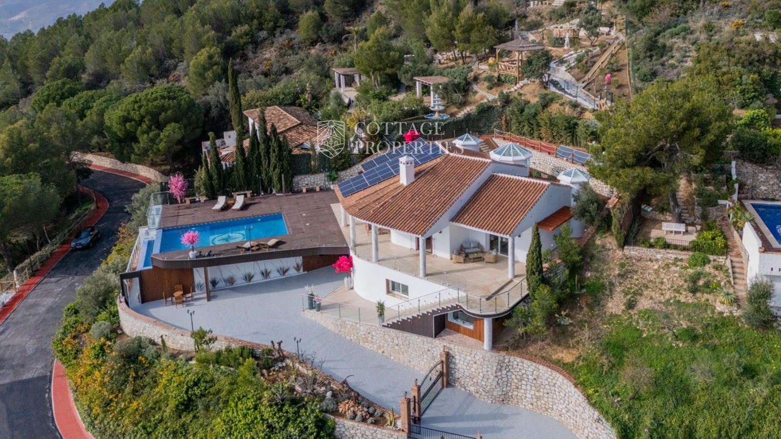 L'entorn exterior és un veritable paradís, amb jardins luxosament dissenyats que inclouen fonts ornamentals, estàtues, un tobogan i un cenador de fusta de 20 m², on es pot gaudir d'un sopar a l'aire lliure. També hi ha una barbacoa de carbó i dues zones àmplies equipades amb mobiliari de jardí, ideals per compartir moments inoblidables. Des del mirador de fusta, és possible contemplar vistes panoràmiques que s'estenen des del mar fins a les muntanyes. La propietat té accés directe a un dels camins més impressionants de la regió, oferint una connexió única amb la natura.