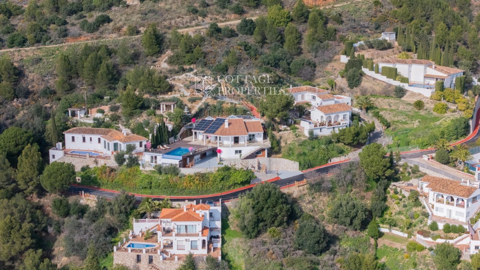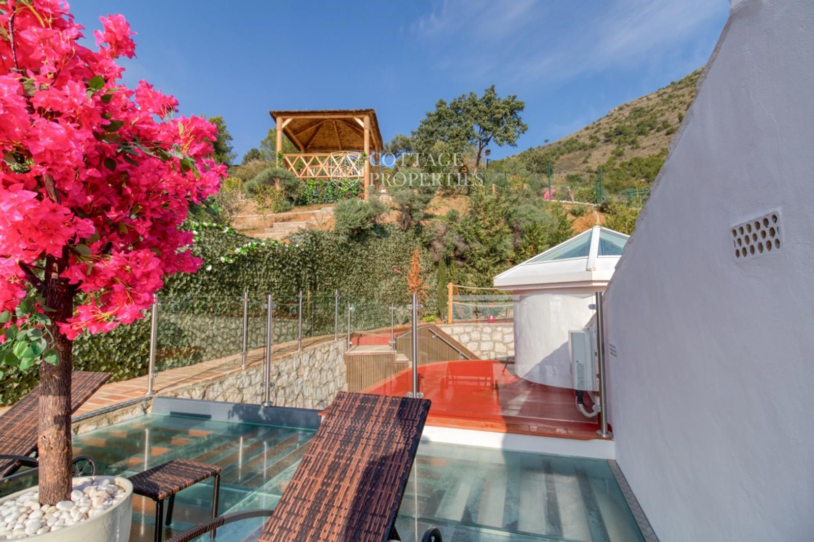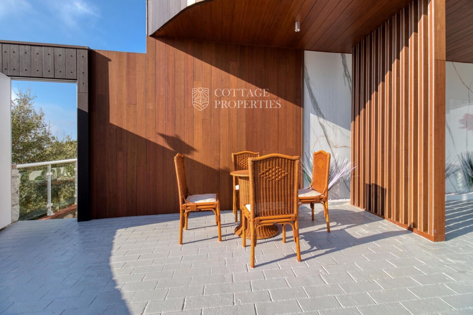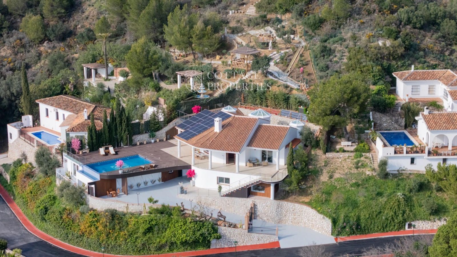 L'entorn exterior és un veritable paradís, amb jardins luxosament dissenyats que inclouen fonts ornamentals, estàtues, un tobogan i un cenador de fusta de 20 m², on es pot gaudir d'un sopar a l'aire lliure. També hi ha una barbacoa de carbó i dues zones àmplies equipades amb mobiliari de jardí, ideals per compartir moments inoblidables. Des del mirador de fusta, és possible contemplar vistes panoràmiques que s'estenen des del mar fins a les muntanyes. La propietat té accés directe a un dels camins més impressionants de la regió, oferint una connexió única amb la natura.