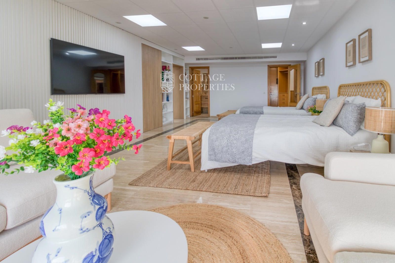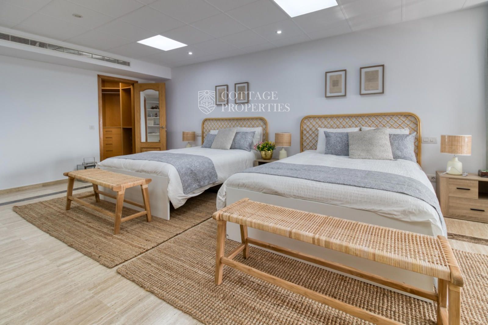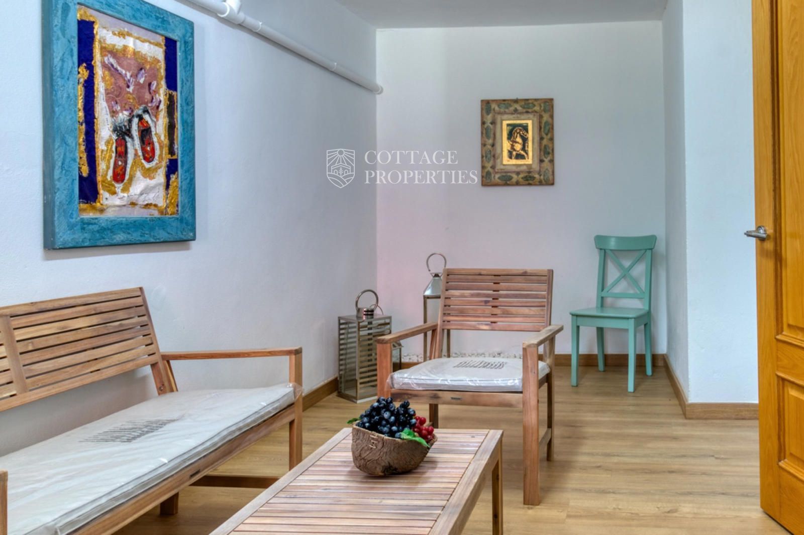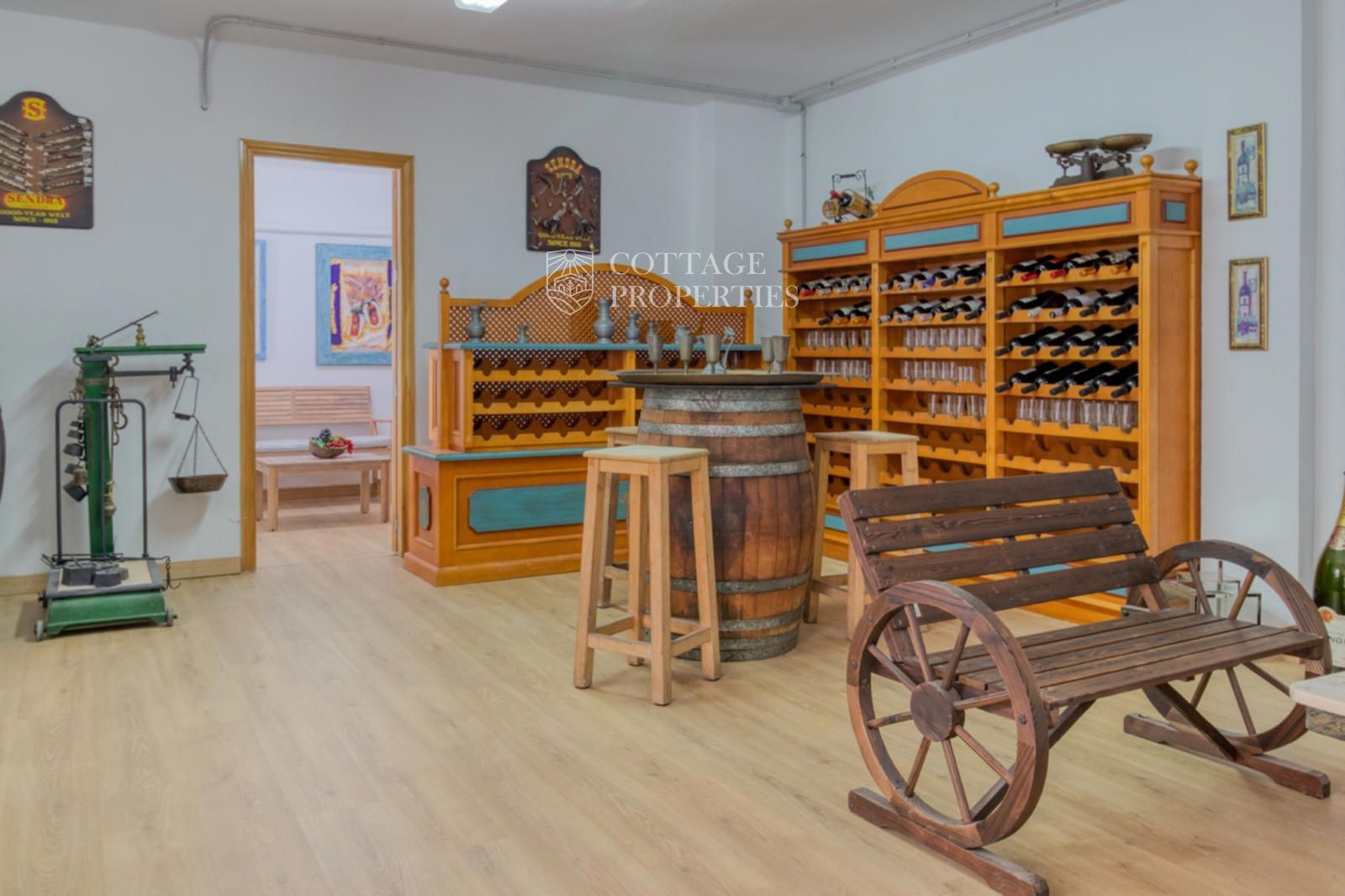 A la planta baixa hi ha tres dormitoris addicionals, tots amb vestidor i bany privat, oferint espais acollidors i funcionals per a la família o convidats. Aquesta planta també alberga un apartament independent amb dos dormitoris, un saló-menjador i un bany complet, ideal per al personal de servei, familiars o amics que visitin la vila. A més, inclou un garatge amb capacitat per a diversos vehicles, un espectacular celler dissenyat com un petit museu, una sala d'emmagatzematge i un quart d'instal·lacions, tot dissenyat amb els estàndards més alts de qualitat.