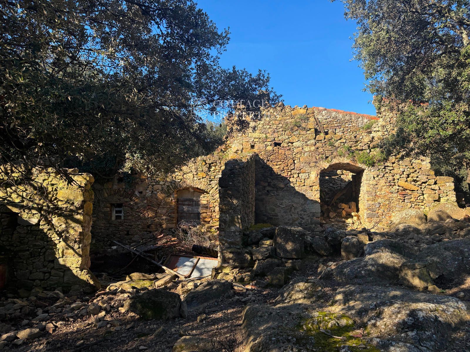 luxury estate in costa brava with 135 hectares, private hunting reserve, masía to renovate and 500 sqm house with sea views over the bay of roses. prime investment in girona, spain.
