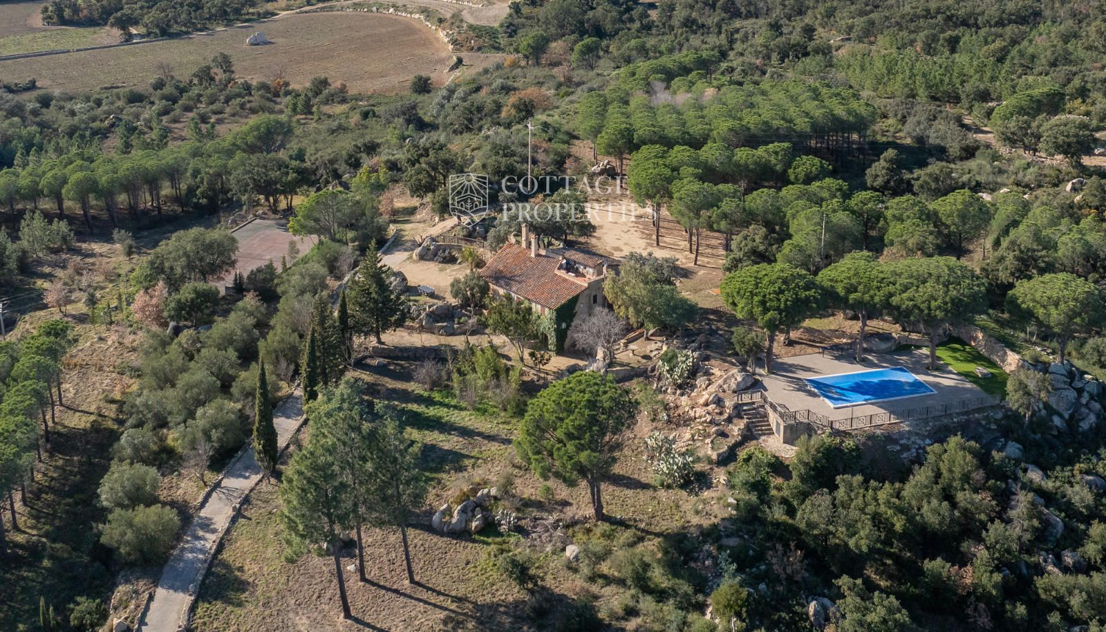 The estate has an area of 10.7 hectares, which used to be cultivated vineyards, now partly planted with pines and olive trees, and is an ideal opportunity for those looking for a home in a natural and tranquil environment, without straying too far from the comforts of the village,