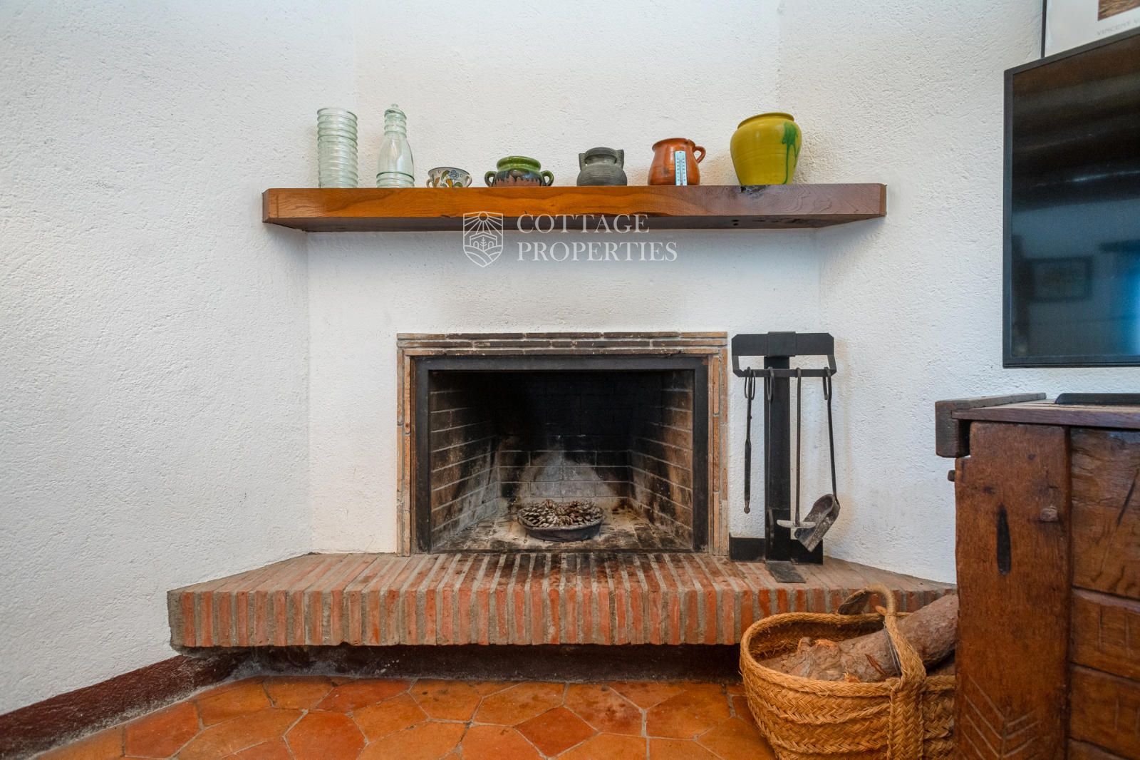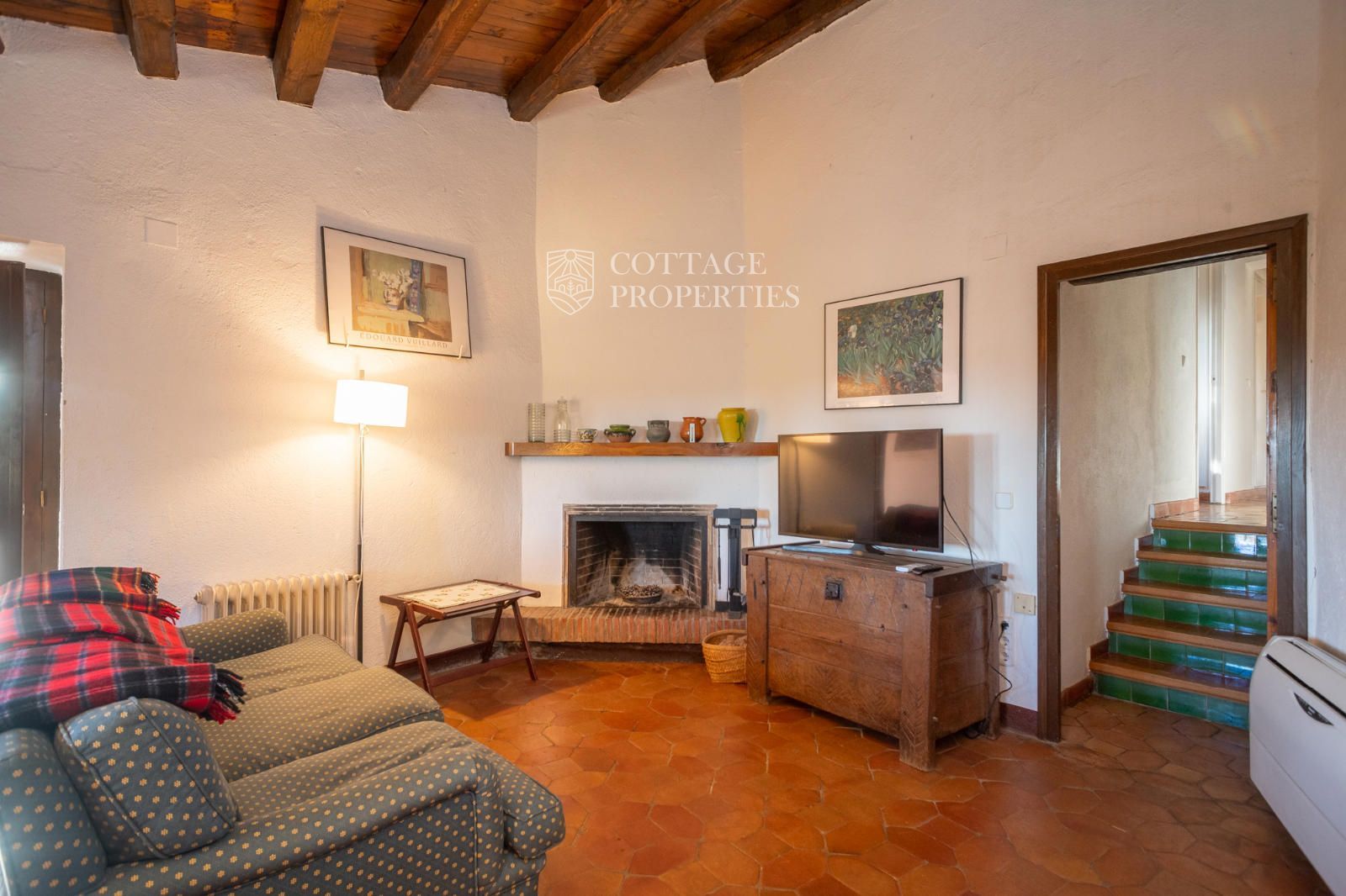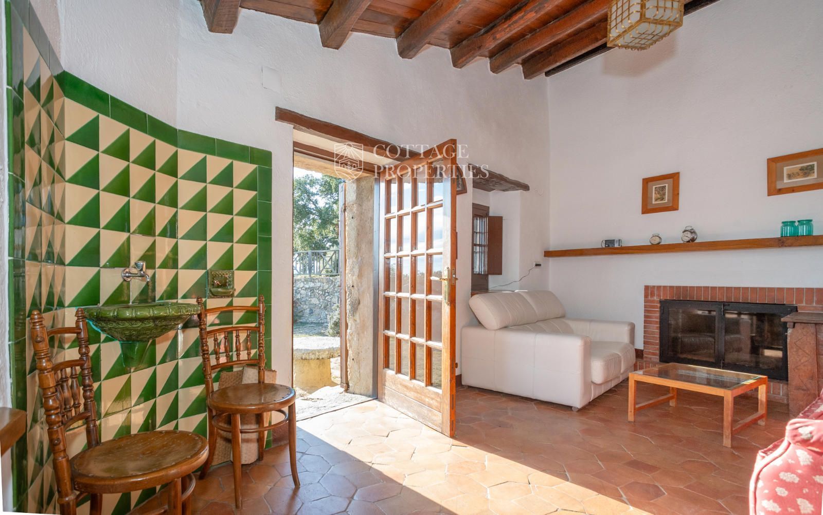 heating system with firewood, which is burned in the fireplace of the reception room. Additionally, the air conditioning provides cool air in summer and warm air in winter.
