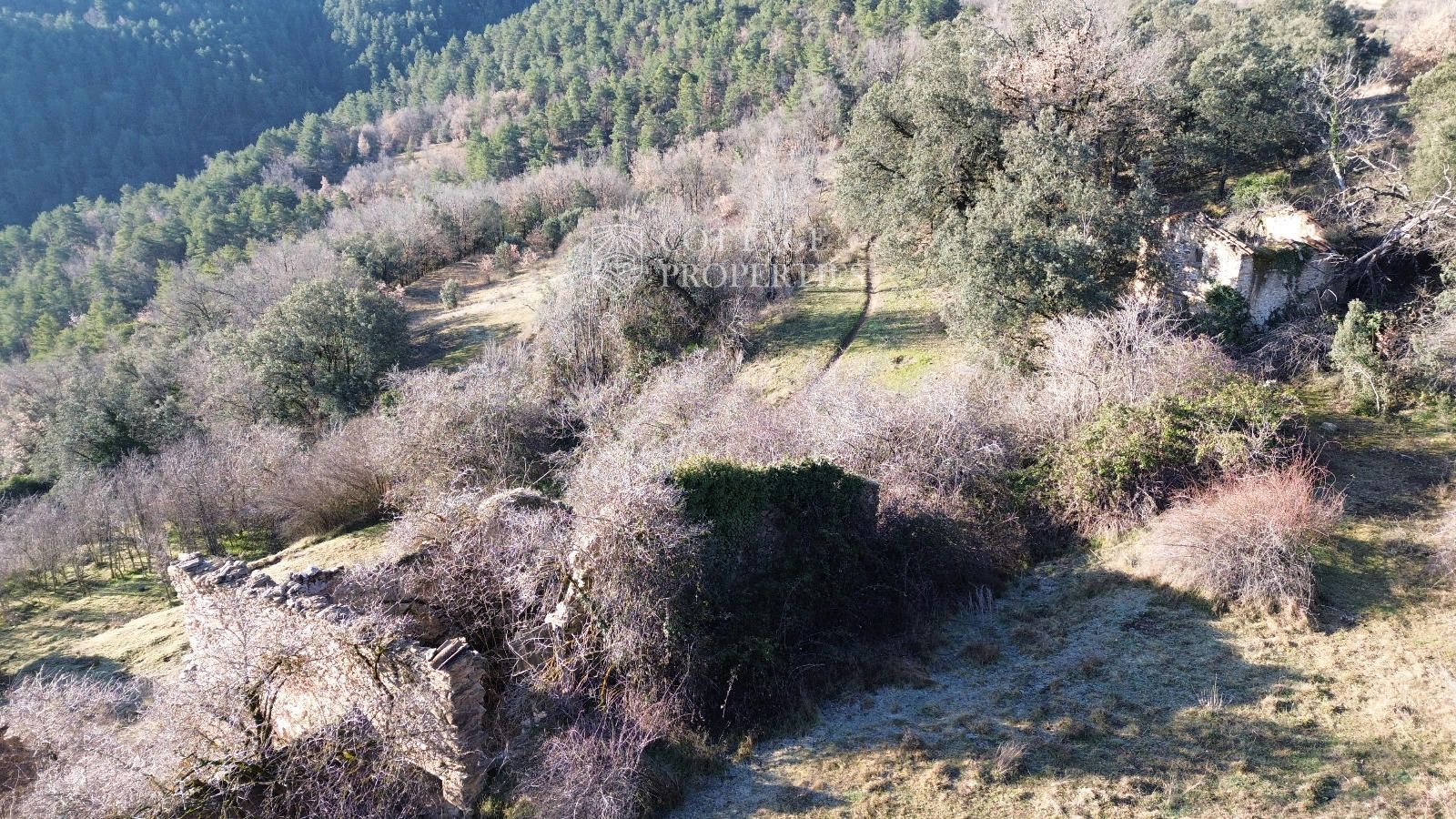 The 19 hectares of land include wooded areas, old agricultural terraces, and open spaces suitable for gardens, livestock, or simply preserved as protected landscape. The silence, the views, and proximity to essential services make this property a true gem — a refuge for those who love nature, conscious restoration, and life away from the urban rhythm.