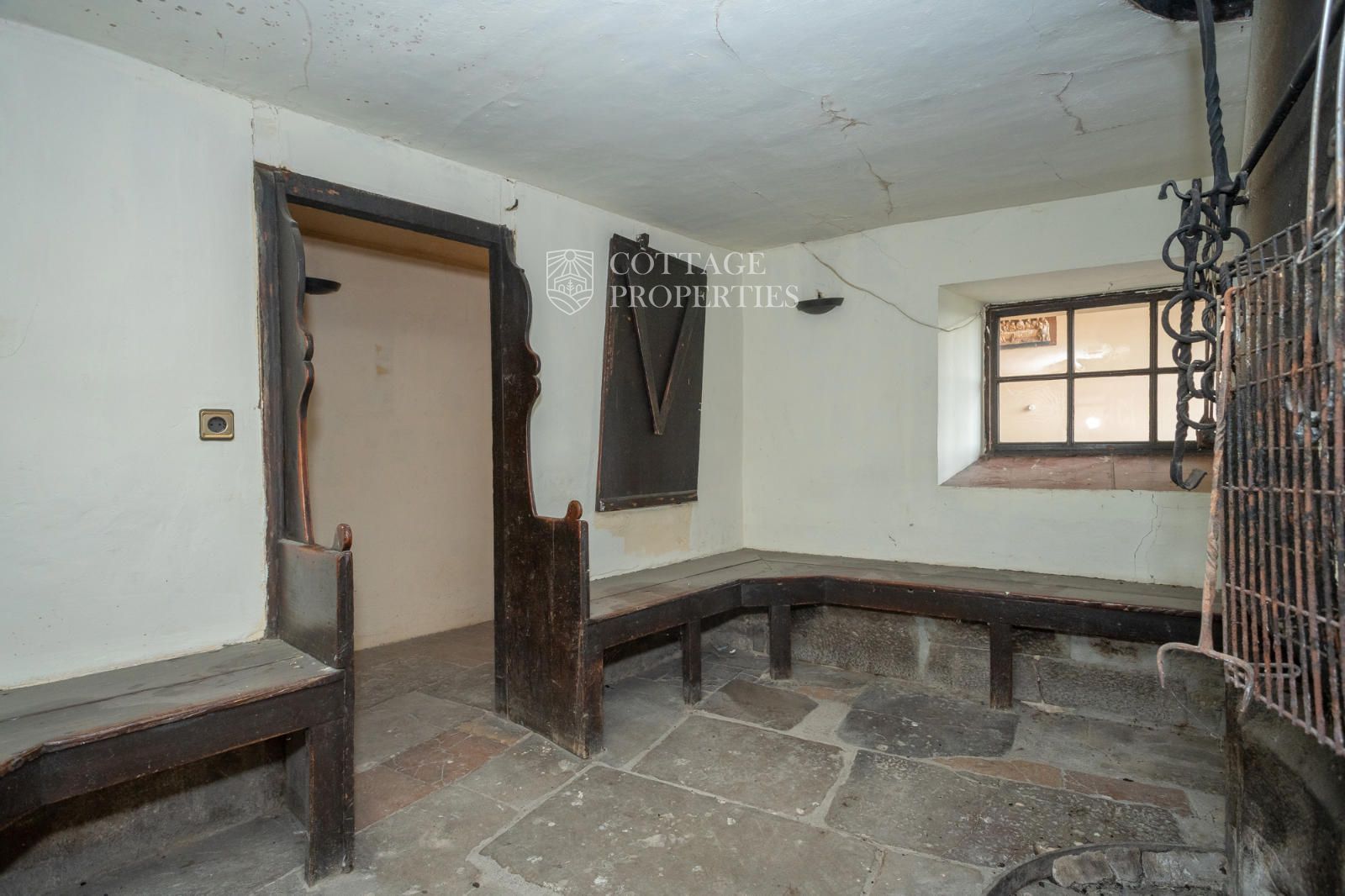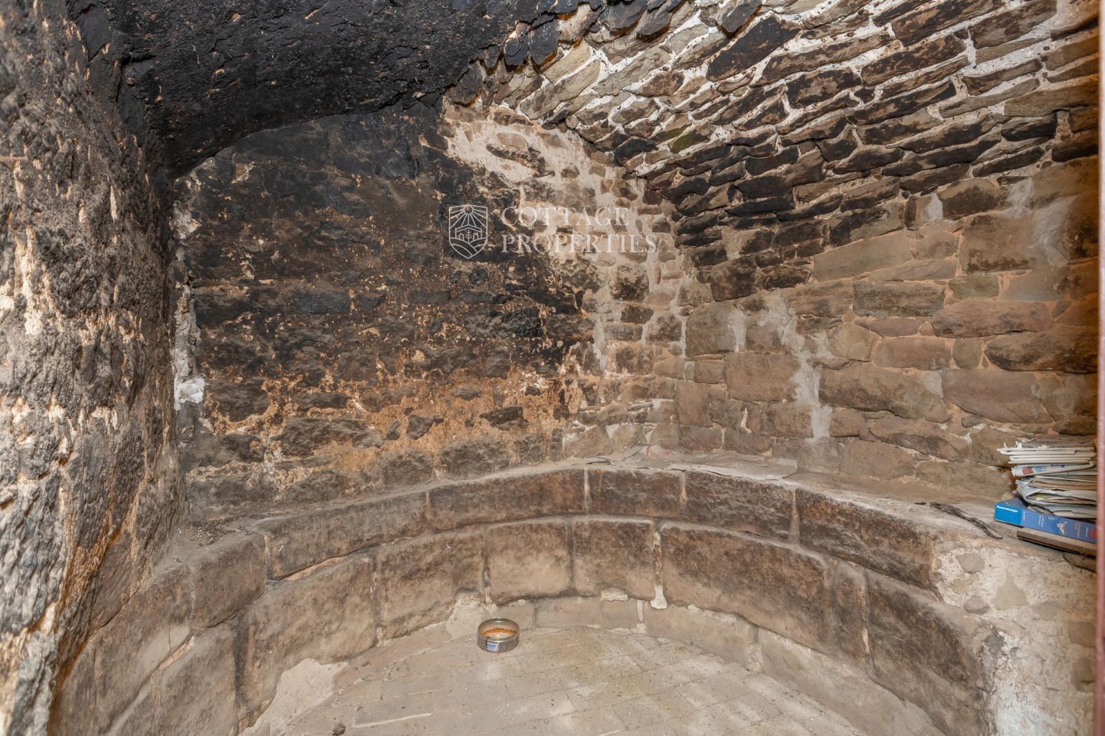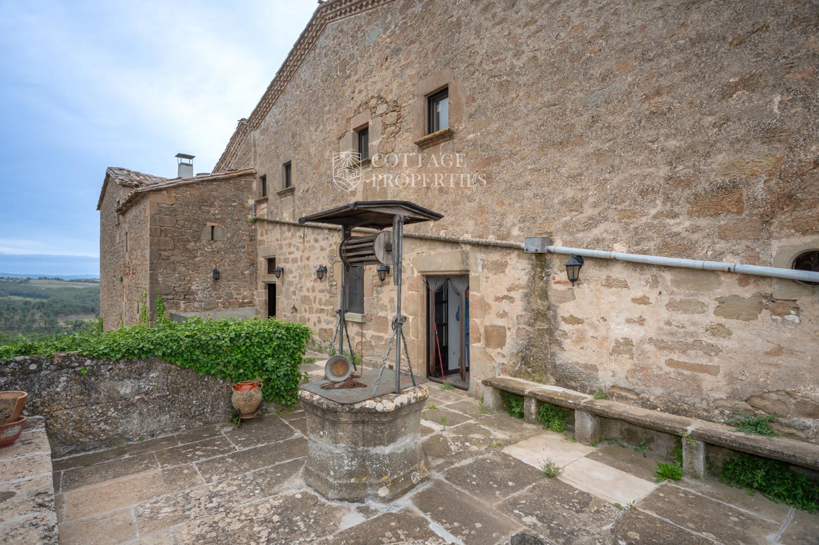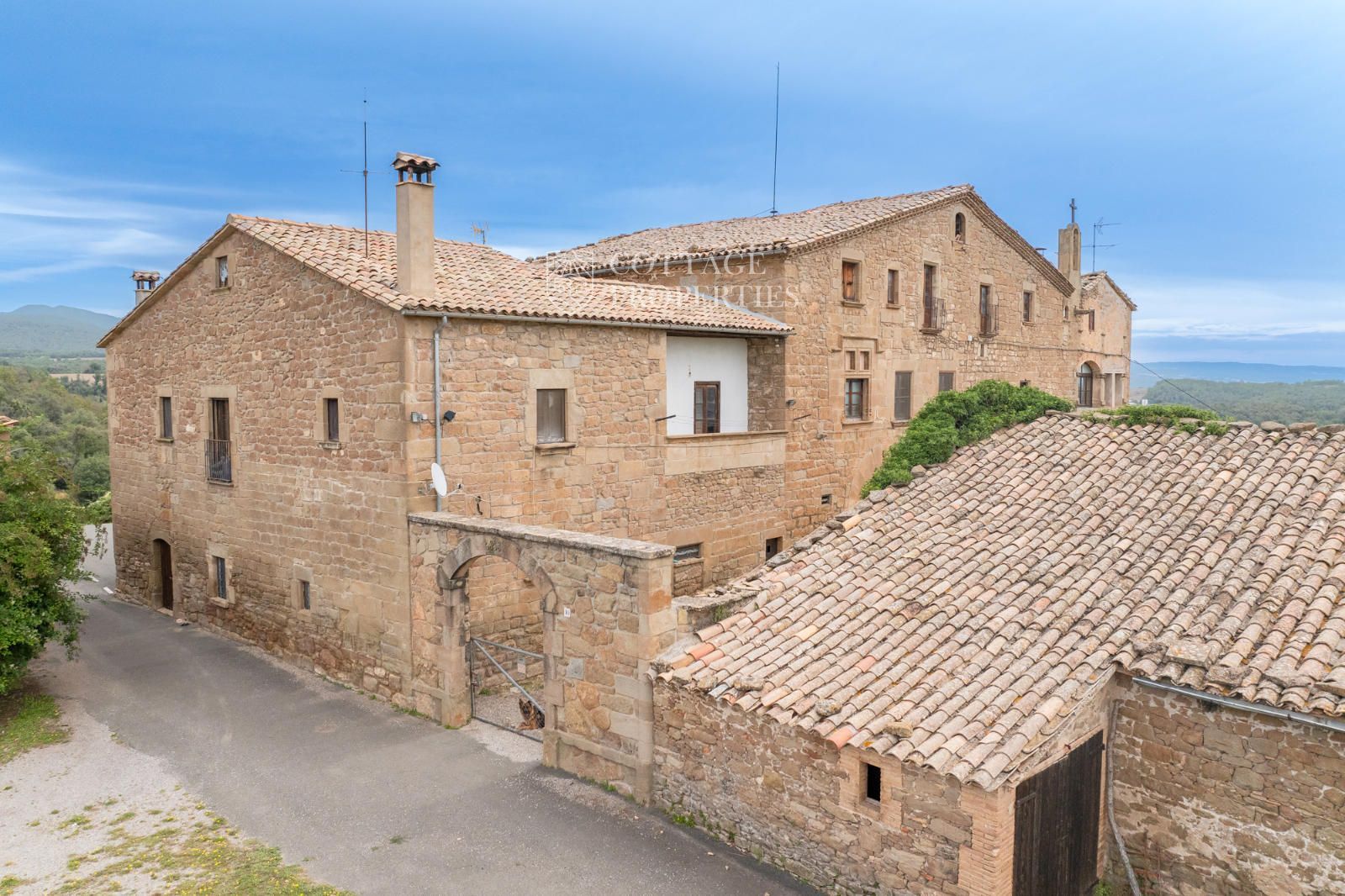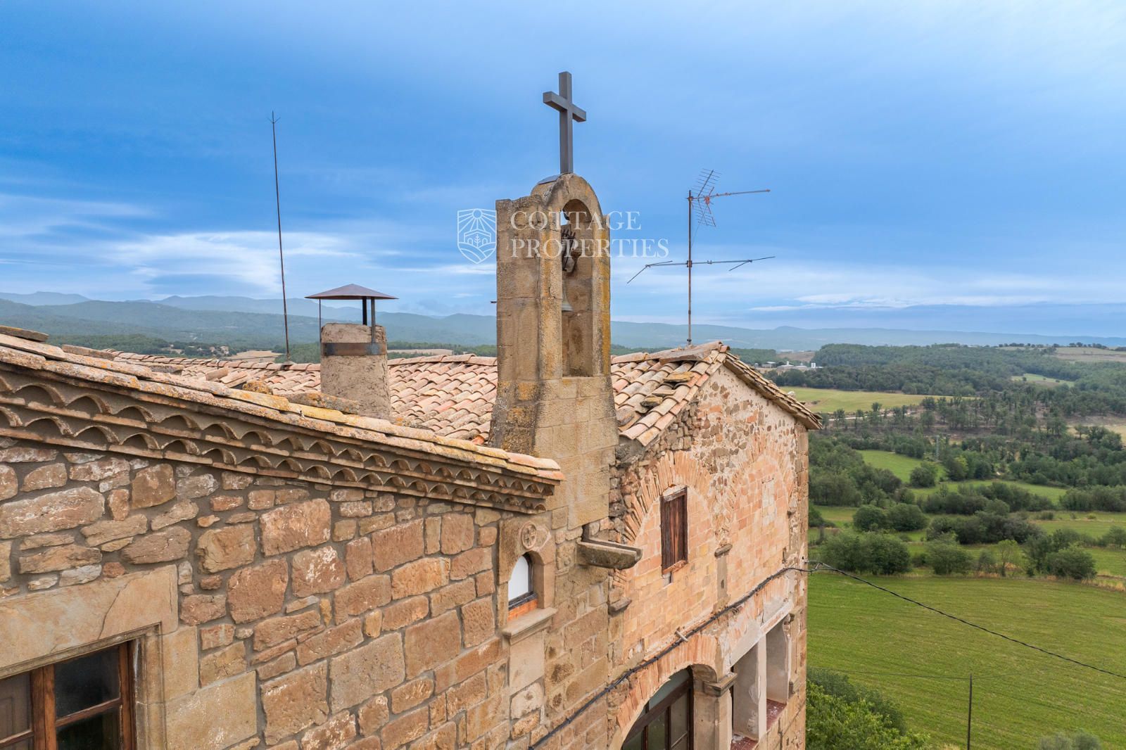 The farmhouse has a total of 17 rooms spread over two floors, offering great potential to become a rural business or hotel. The northern side of the house features a well, a distinctive characteristic. The doors with lintels and the main door with a vaulted semicircular arch add a unique character to the property. The chapel's bell tower stands out above the roof, providing a distinctive and charming touch.