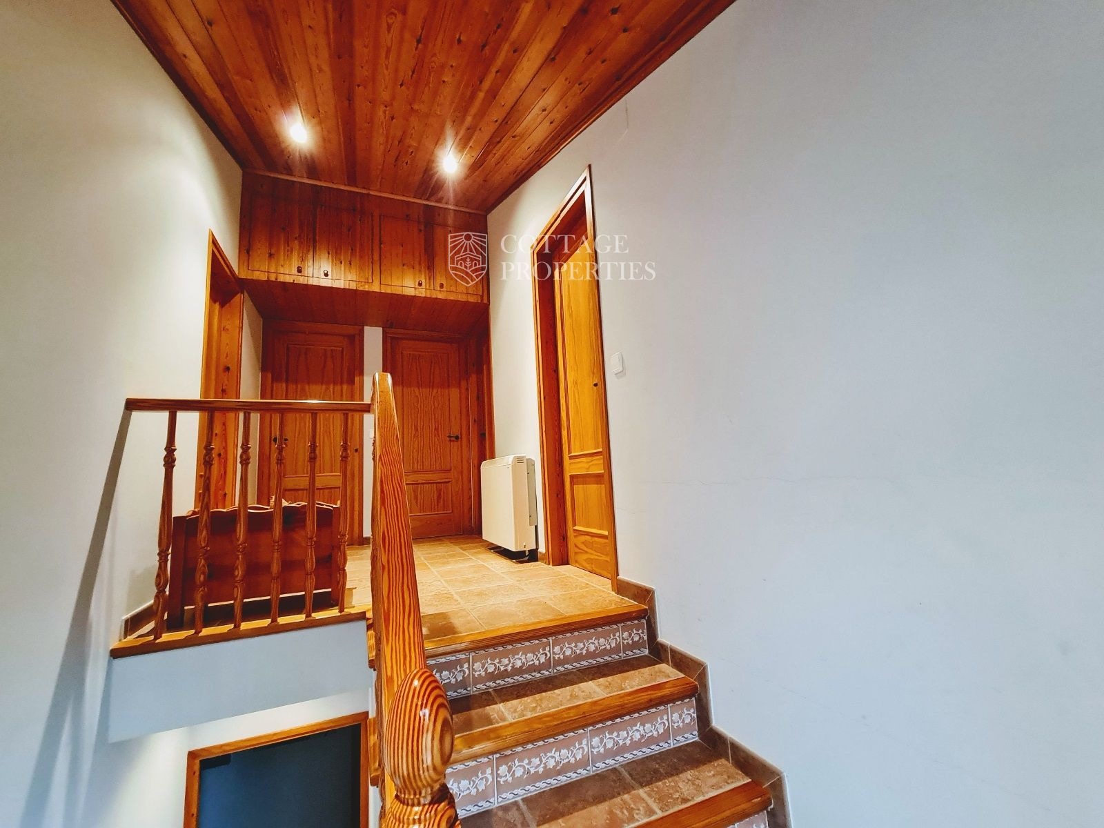 The masia is surrounded by a large walled garden with a pool, vegetable garden, and a water reservoir. The estate also has 3 wells and a water spring. The property is listed in the Inventory of Architectural Heritage of Catalonia and features a main facade with a dovetailed door, openings with stone voussoirs, and windows with wrought iron bars. The ground floor has balconies that provide access to a balcony along the facade, while the attic windows have stone lintels and semi-circular arches, with a gabled roof covered with tiles.