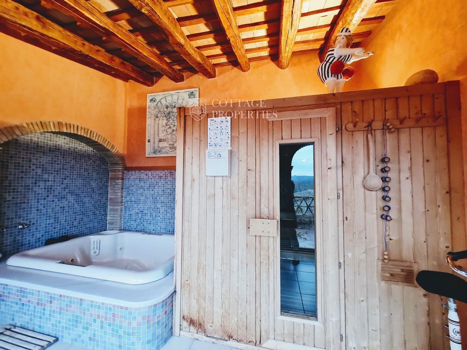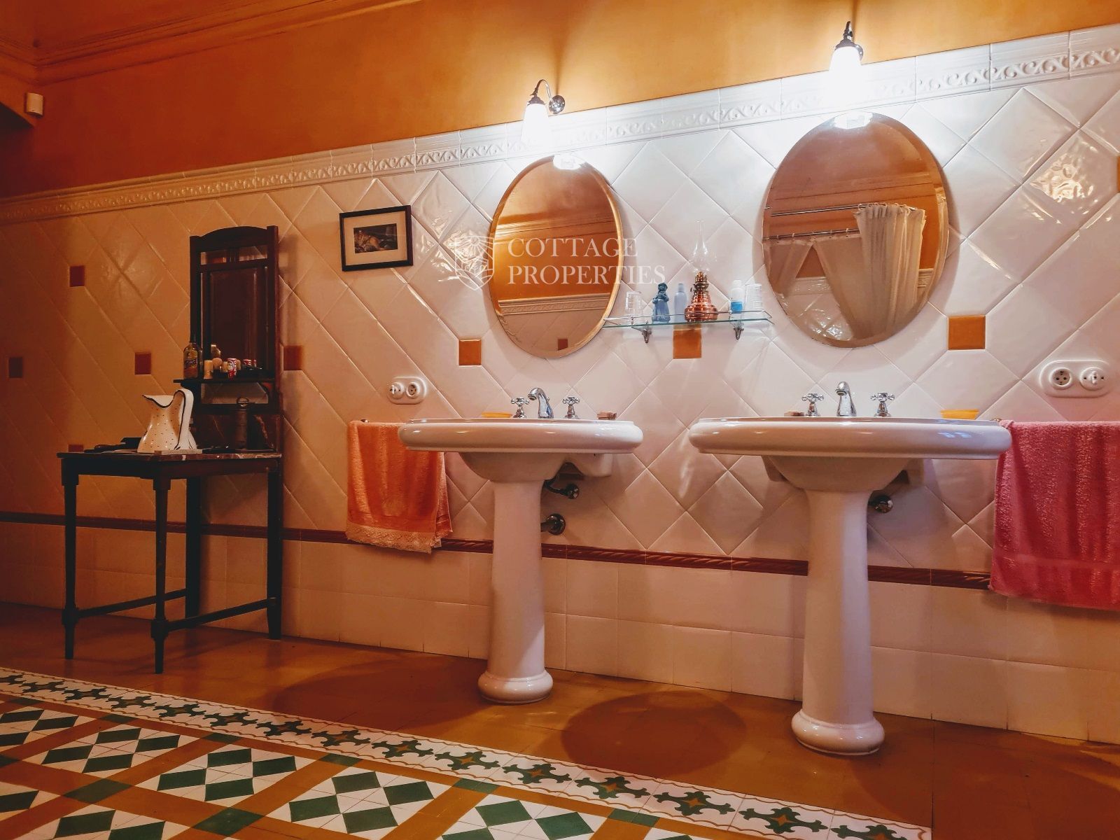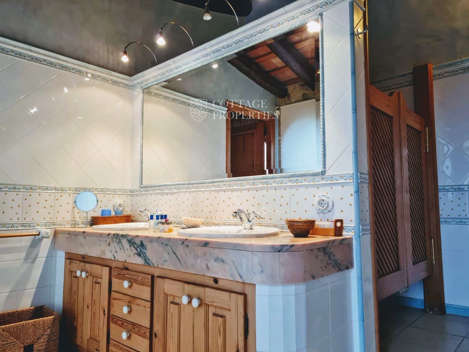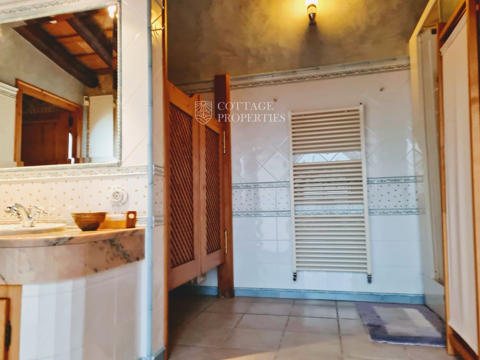 Composed of three floors. The ground floor includes a large entrance hall, a wine cellar, a utility room, two old kitchens, a dining room, and a multipurpose room, all around a large central courtyard. The first floor has 5 large rooms and a distributing room serving as a library. The third floor features a large suite bathroom with a spa, sauna, and hydro-massage bathtub.