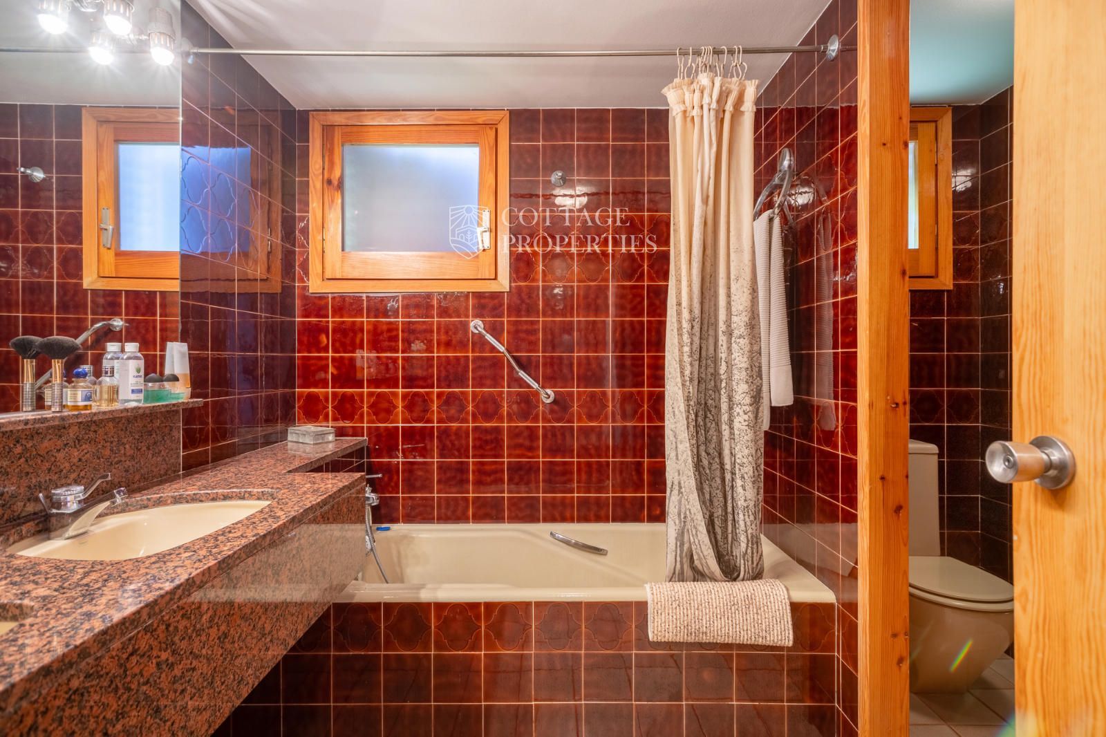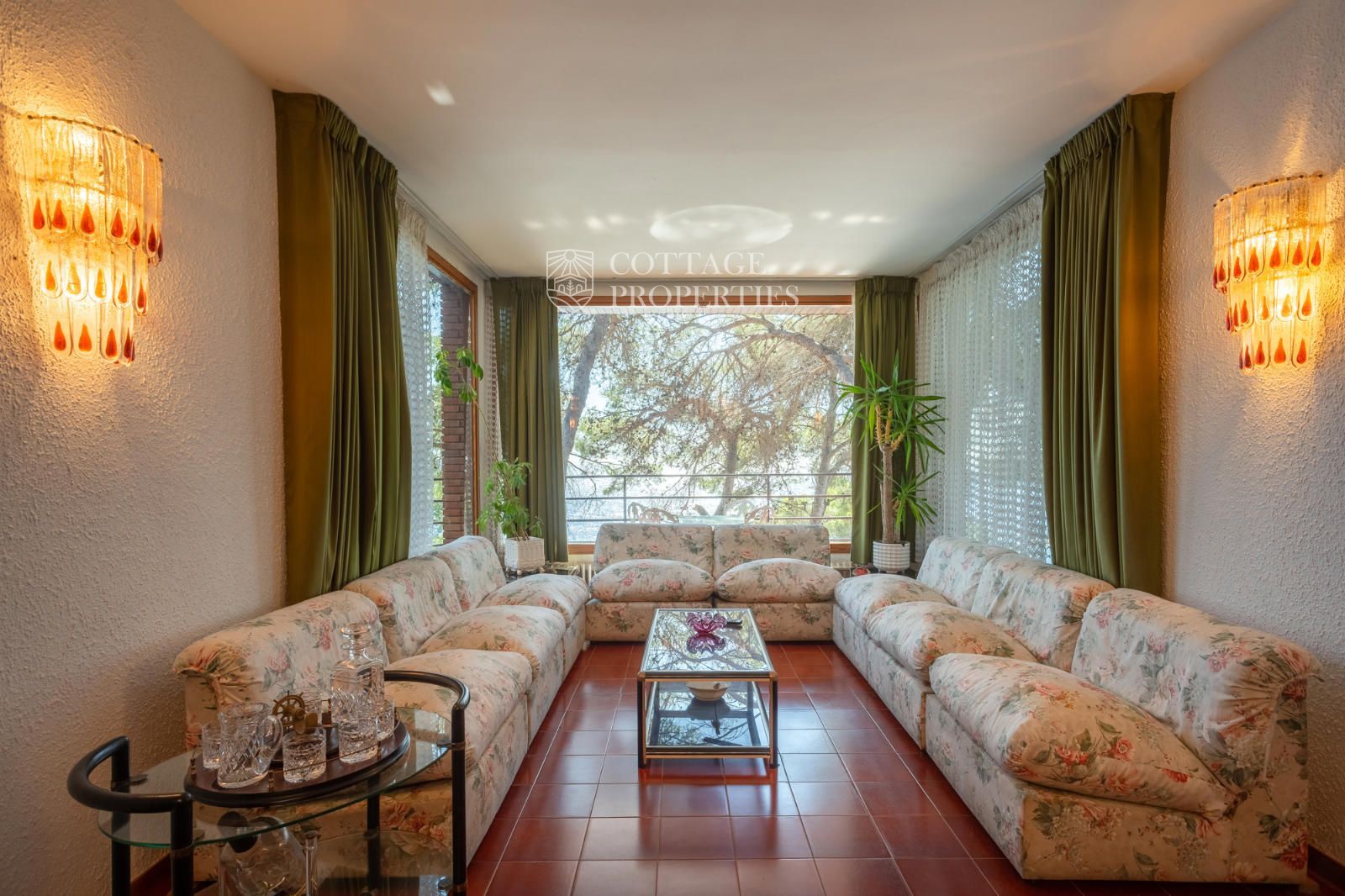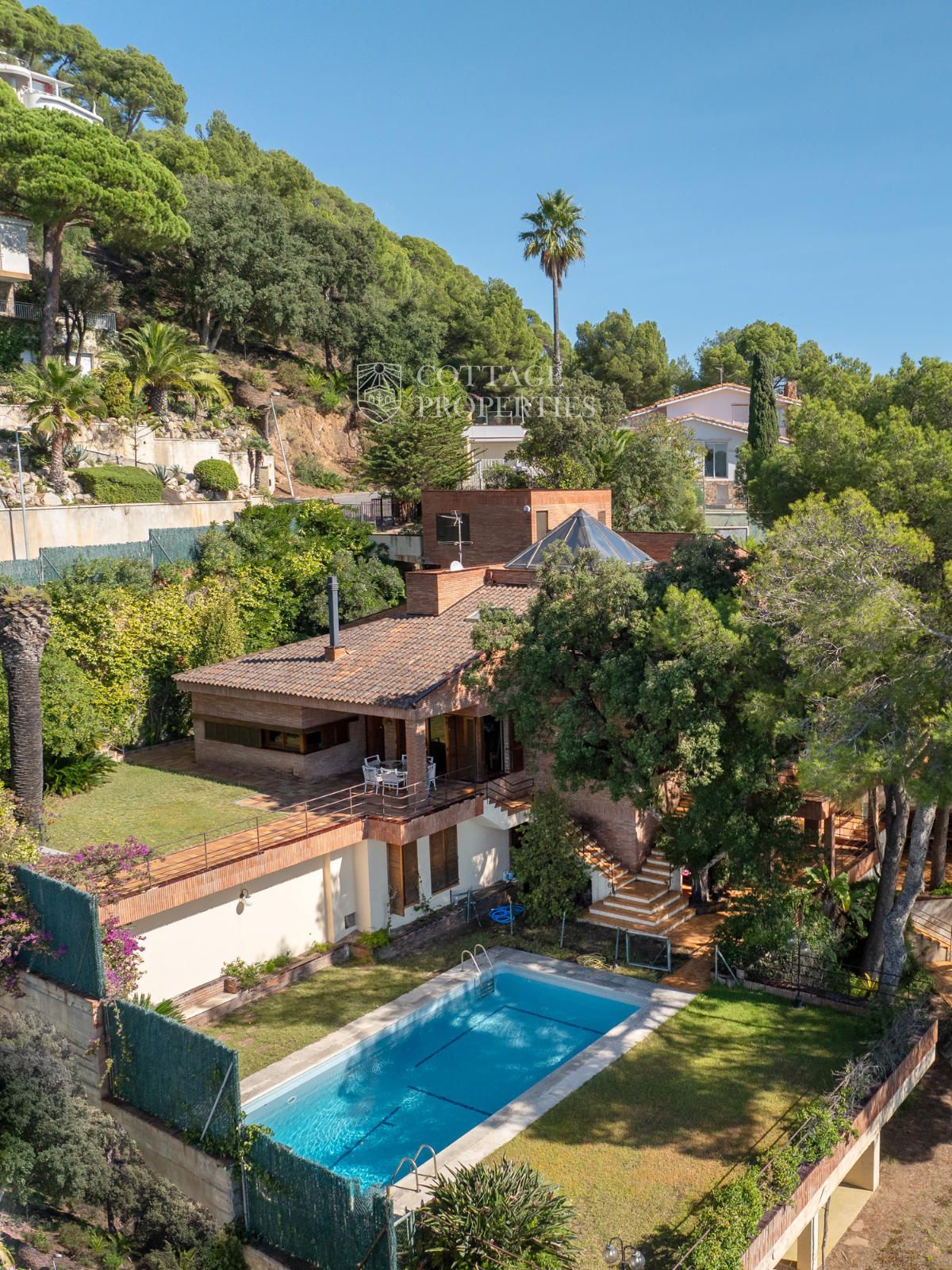 The 600 m2 house has a large living room, fireplace and exits to the porch, fully equipped independent kitchen, 6 bedrooms, 5 bathrooms, garage for 2 cars, cellar. With a plot of 2000 m2, swimming pool and beautiful garden and spectacular views of the sea since the house is located on a hill.
