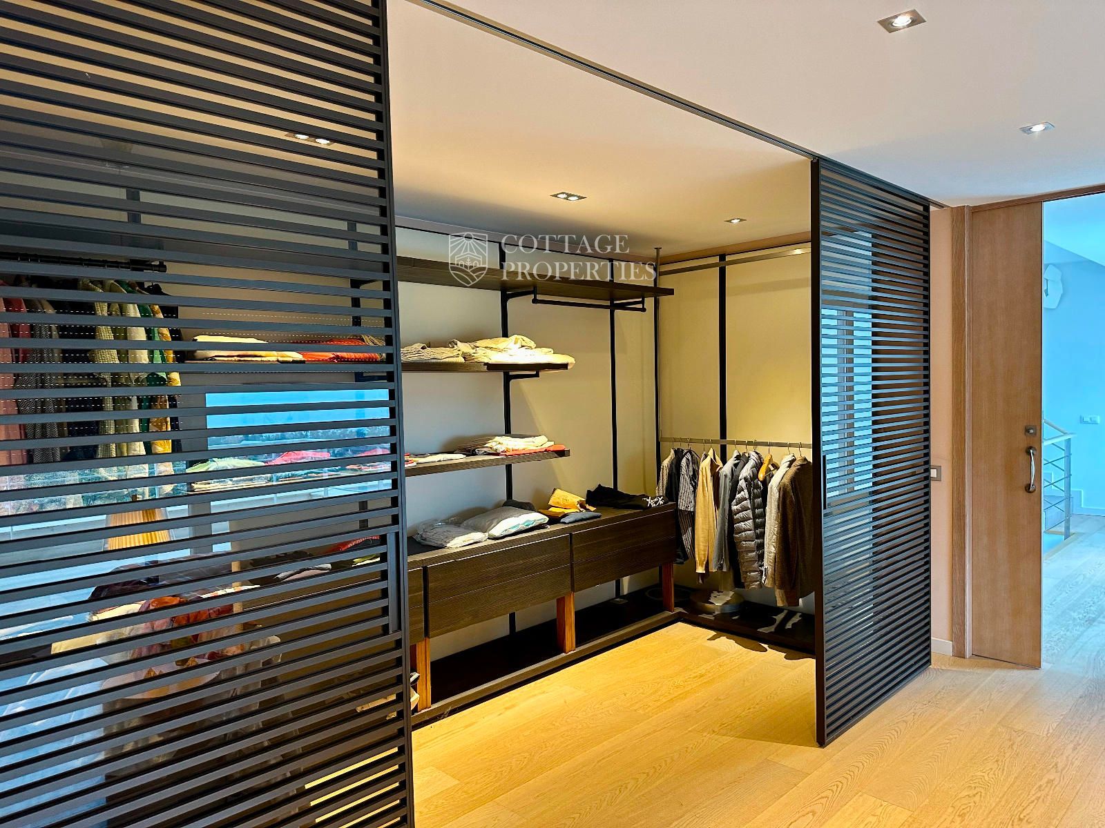 Main floor: At garden and pool level, you will find a spacious open-plan living-dining area with an integrated kitchen. A stylish avant-garde fireplace adds a warm and welcoming touch, perfect for family gatherings or entertaining friends. On this same floor, with direct access to the terrace, there is an additional living room, which can be used as a home cinema or music room, ideal for relaxing while enjoying the breathtaking sea views.