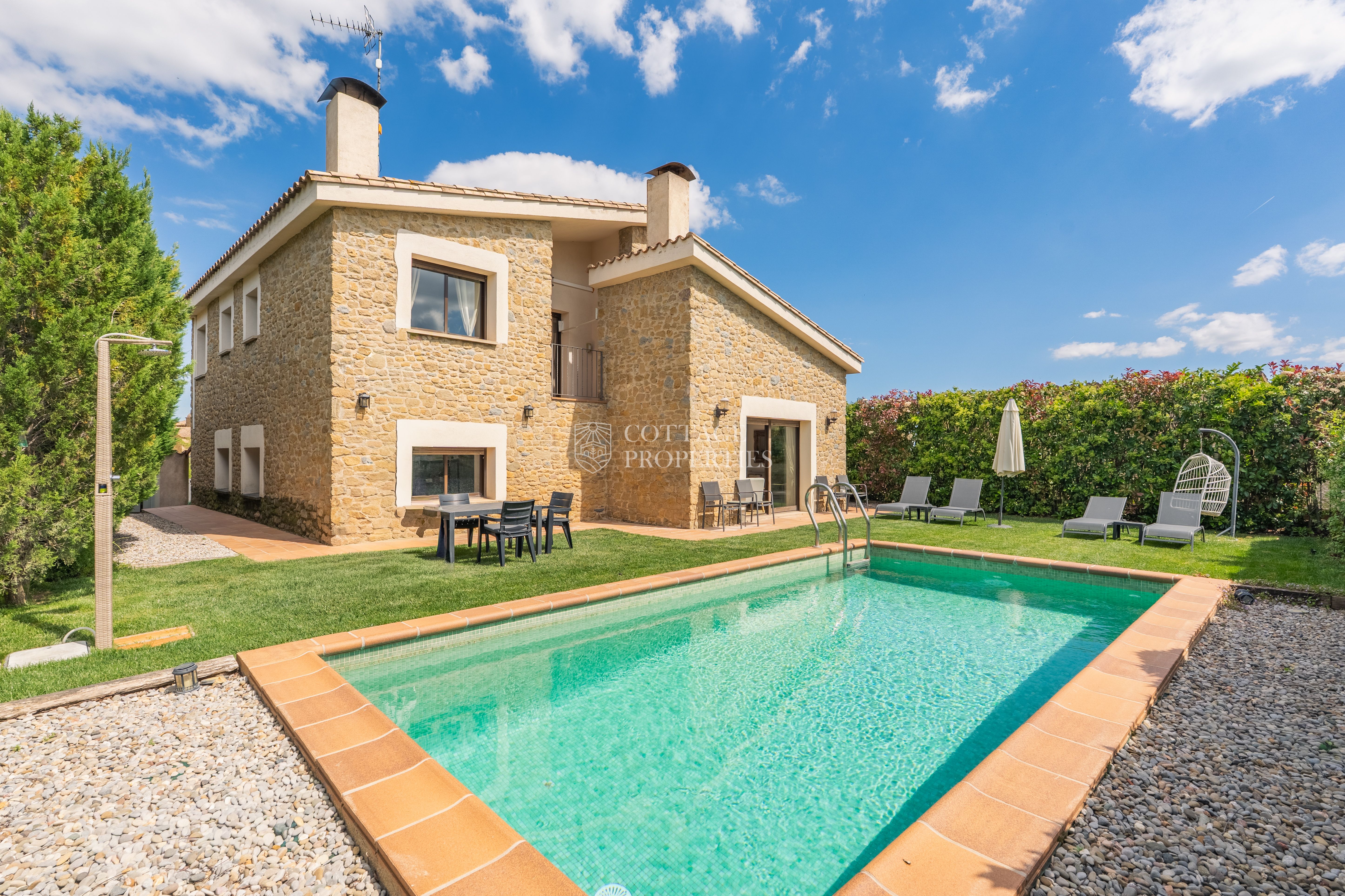 The exterior stands out with a 100 m² private garden featuring a swimming pool and seating area, ideal for summer afternoons or enjoying outdoor activities in complete privacy. Thoughtfully designed, the garden offers a tranquil oasis with views of the Baix Empordà countryside.