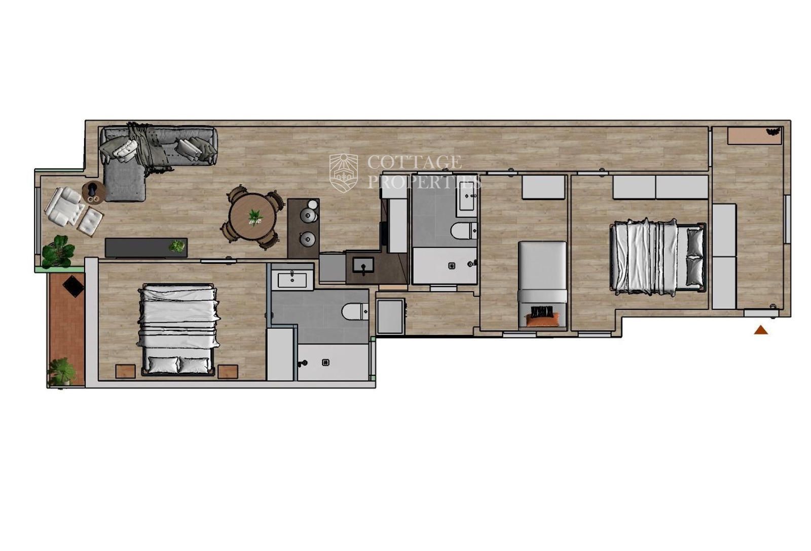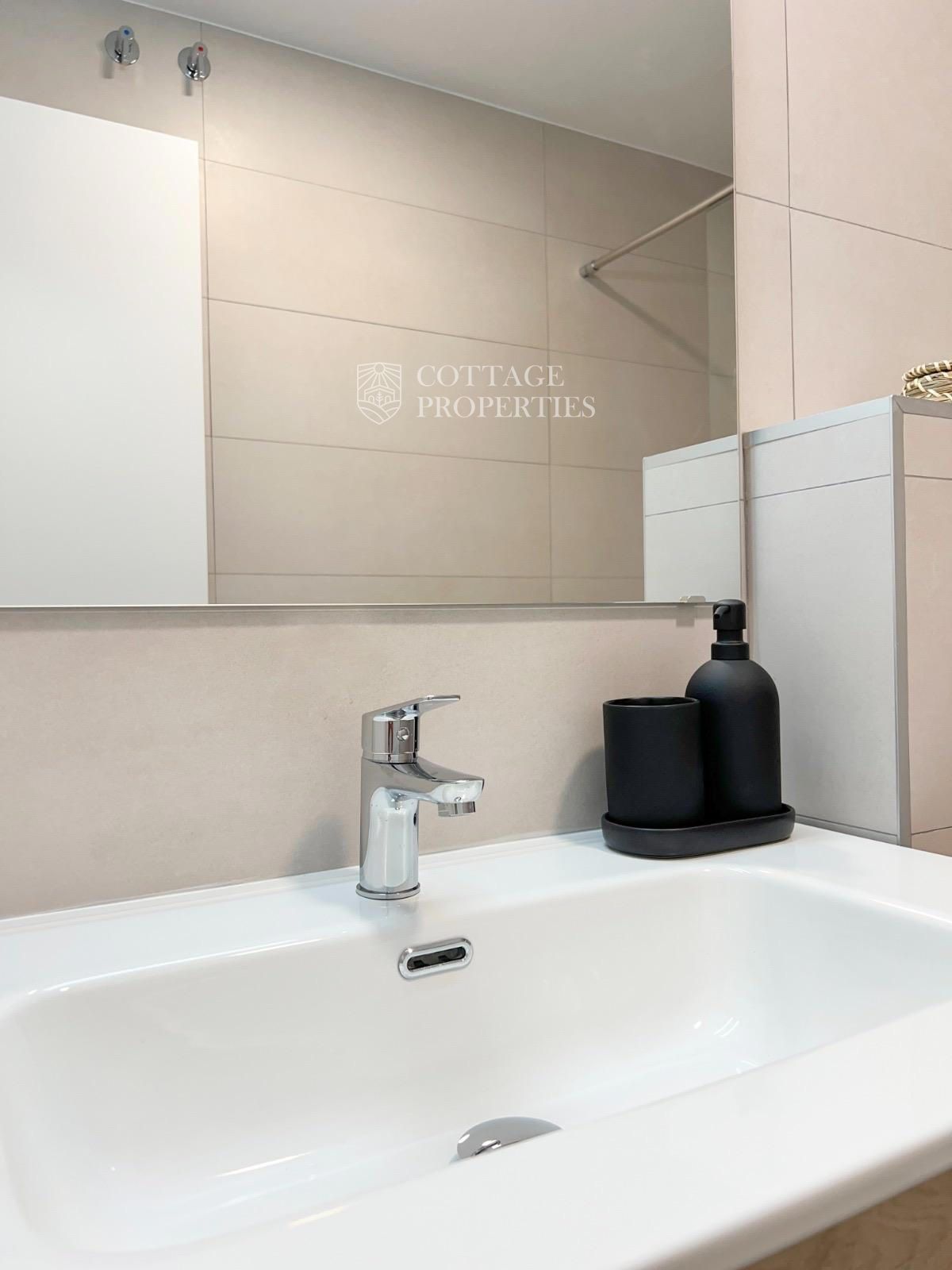 Upon entering the apartment, you will find a spacious and bright living-dining room with an open, fully equipped kitchen. The master bedroom features a balcony and an en-suite bathroom, while a practical gallery provides additional space for the washing machine. The modern and functional design of every space ensures comfort and style.