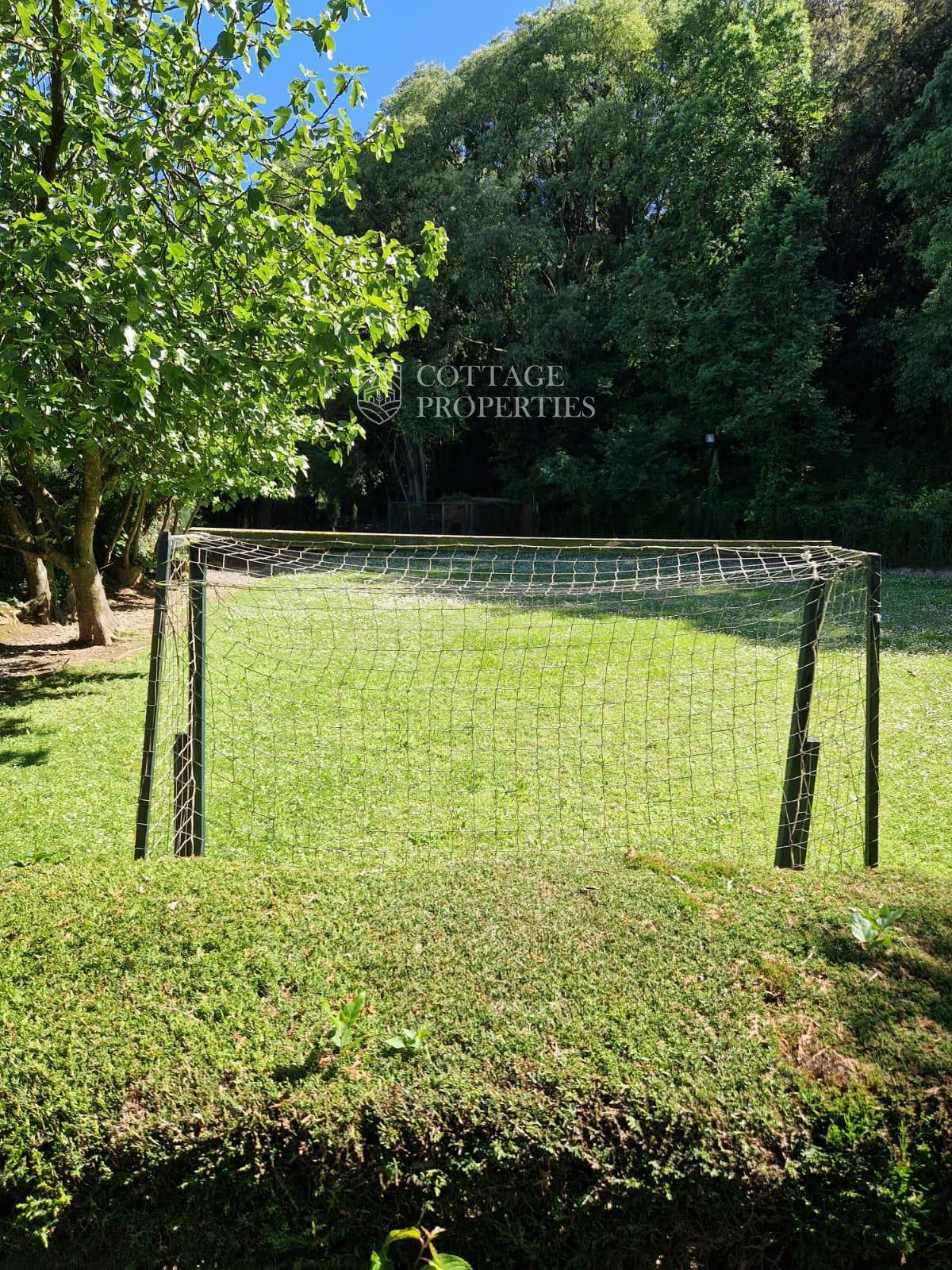 The estate offers a large garden area, a 10 x 5-meter swimming pool, an outdoor built-in shower, pool changing rooms, a futsal field, a wooden playhouse, a shed for gardening tools, a mini-cultivation area, and a well. The property is secured with an automatic main and side access door with manual entry code, and a recording access system via TV.
